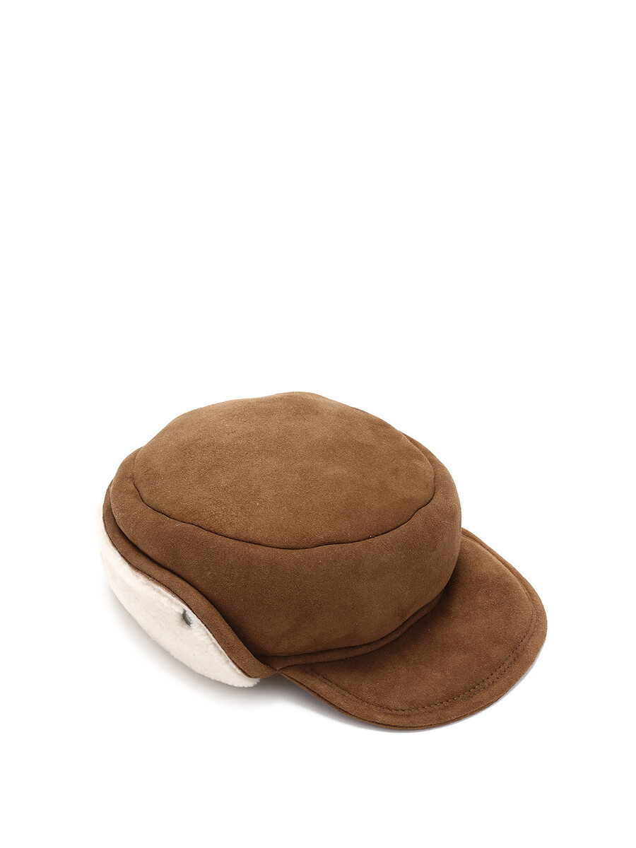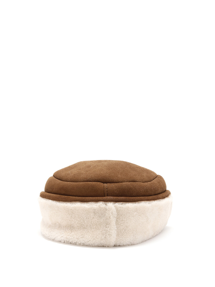 Chapeau en peau de mouton beige. Conçu pour un ajustement chaud et confortable.