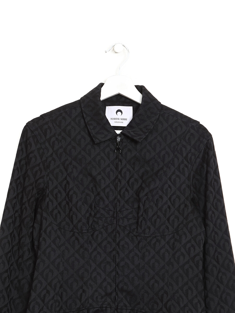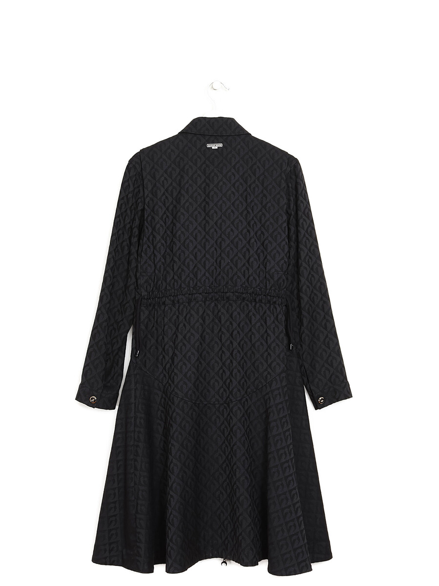 Chemise à manches longues en noir avec motif monogramme ton sur ton.