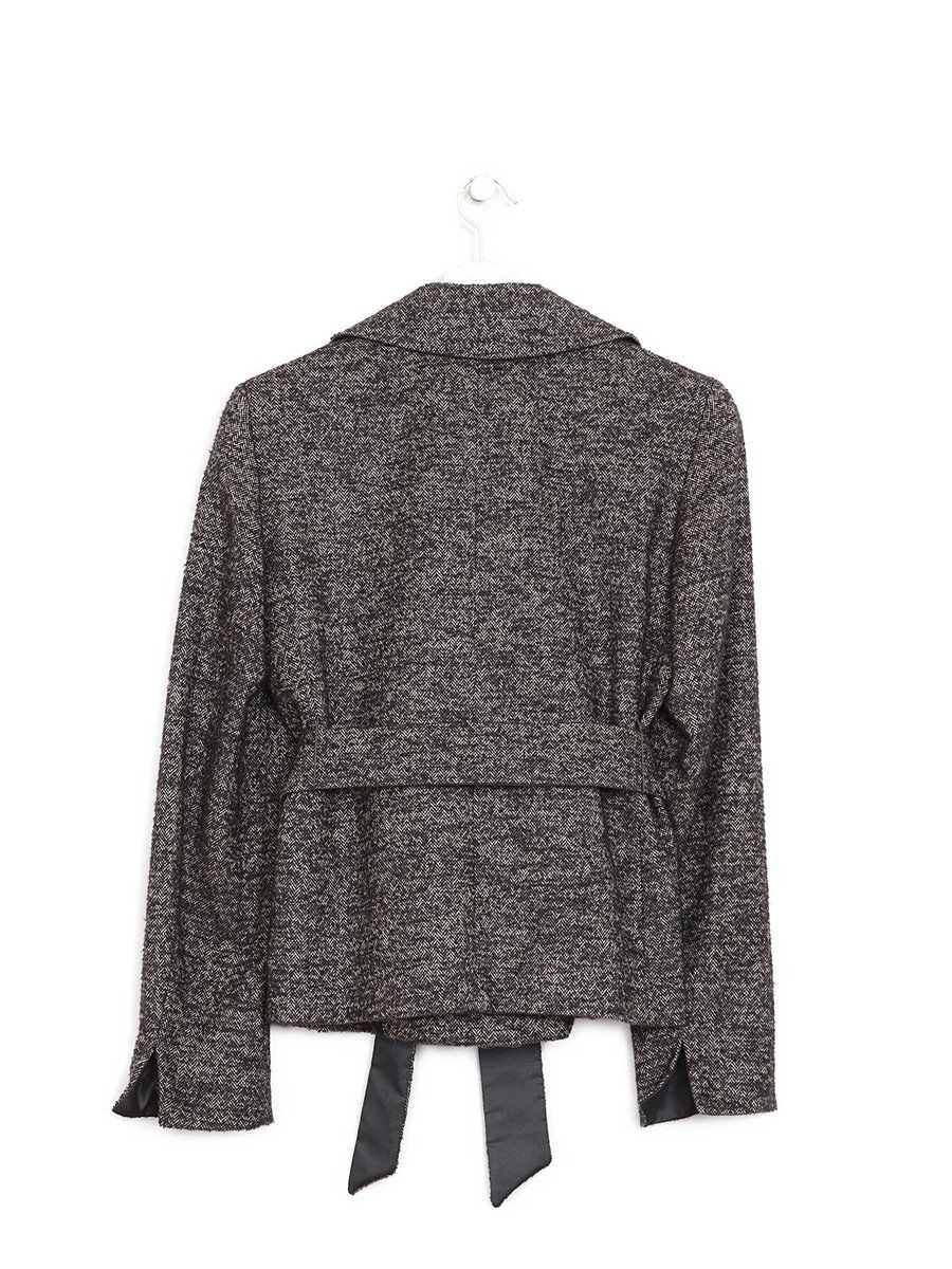 Blazer à manches longues dans des tons de gris. Fermeture à bouton. Col à revers cranté. Ceinture ajustable à la taille.