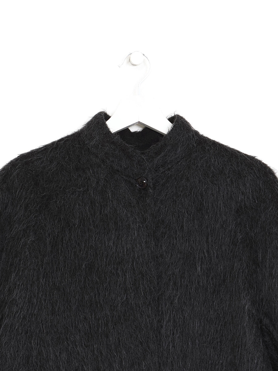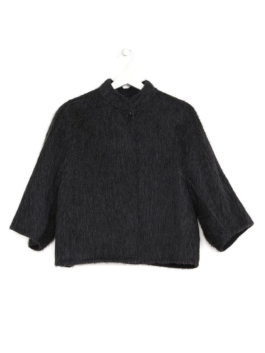 Manteau court en mélange de laine gris. Fermeture à un bouton. Coupe ajustée.