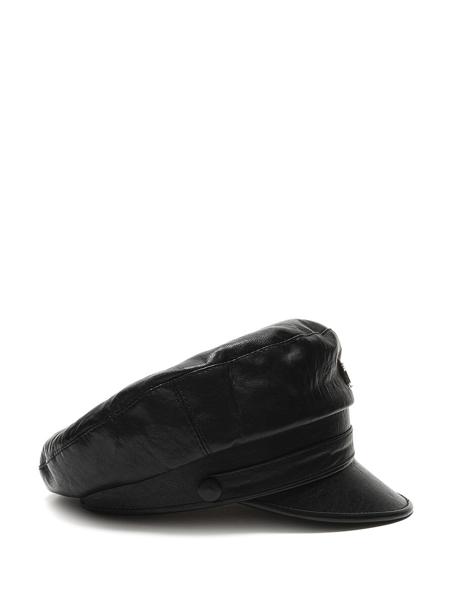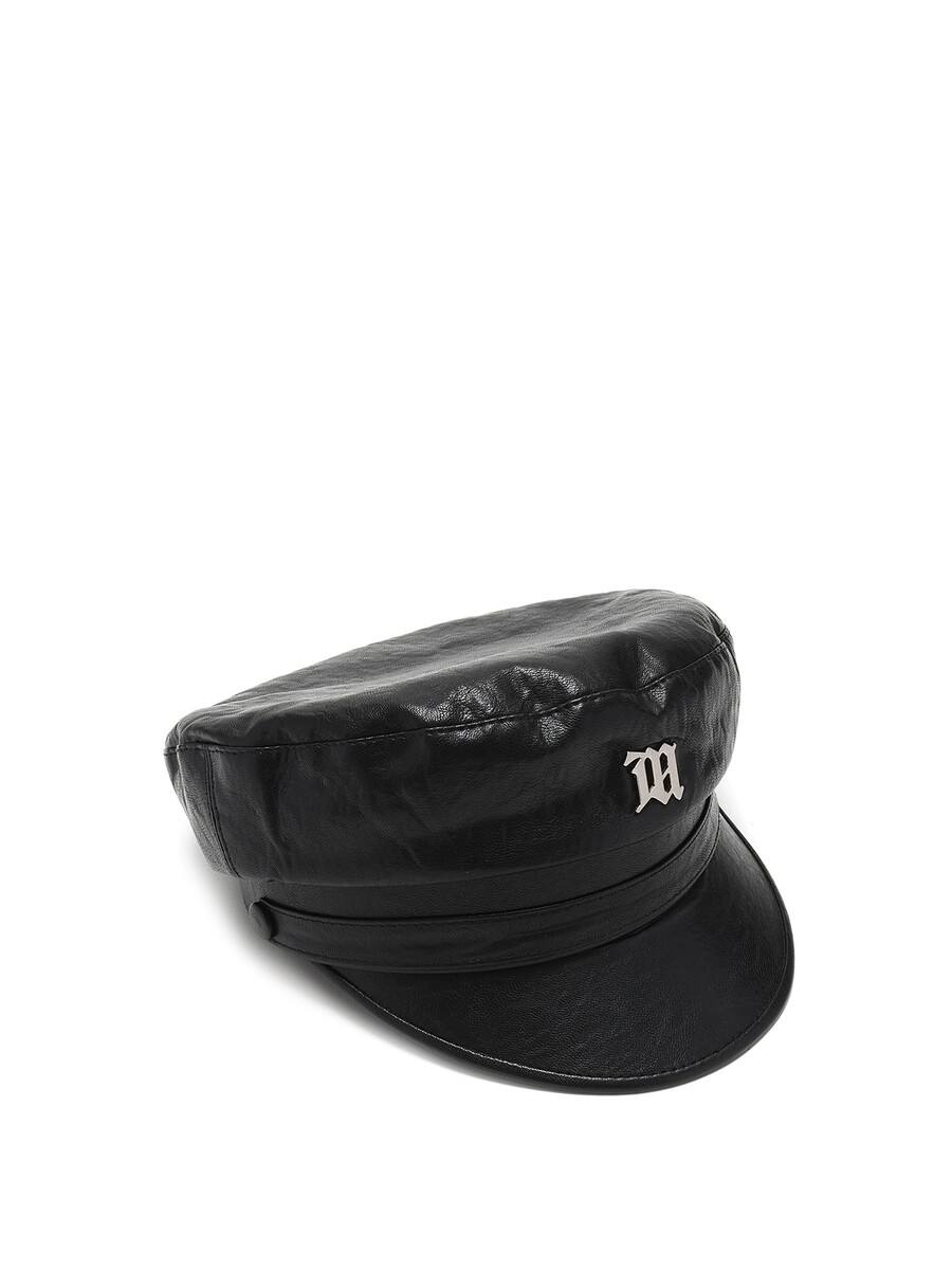 Model: Black Vegan Leather Monogram Gavroche Cap