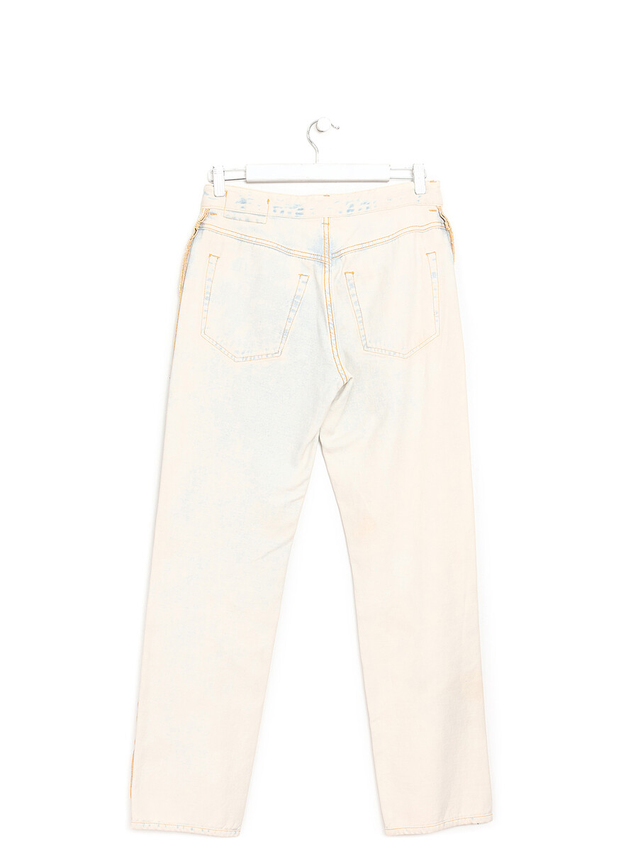 Jeans en denim bleu clair effet usé et apparenté à l’intérieur-extérieur. Fermeture à boutons sur le devant, taille mi-haute. Grandes poches avant.