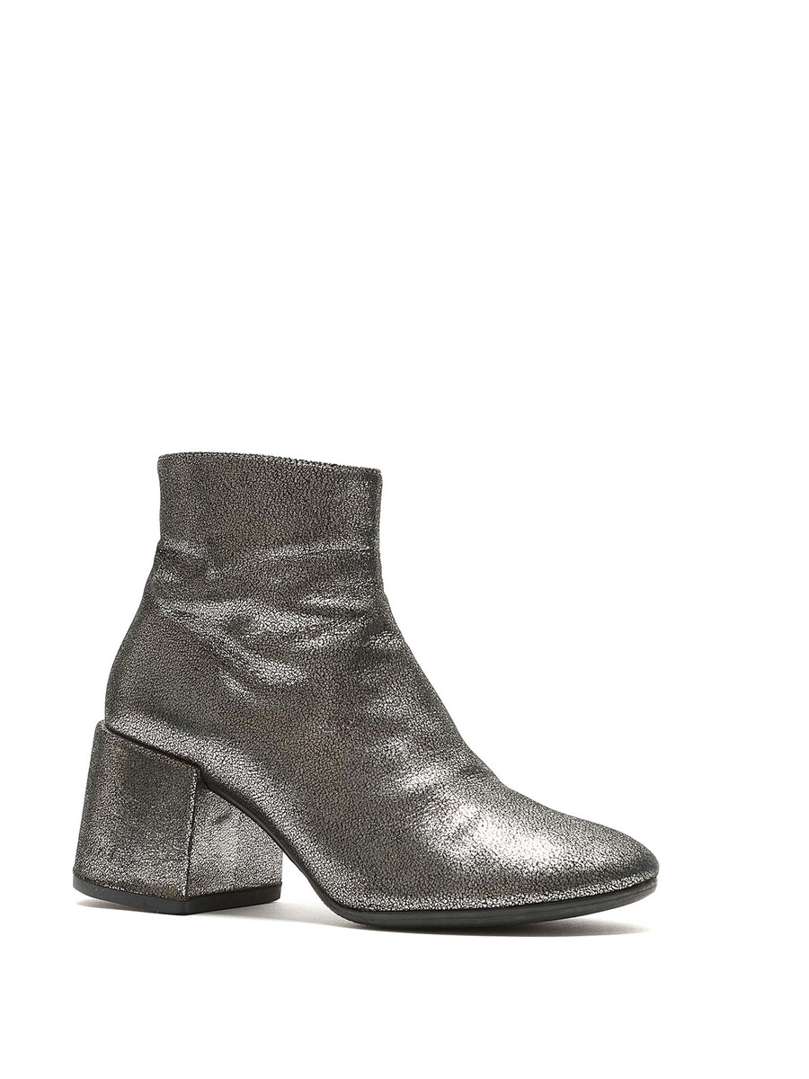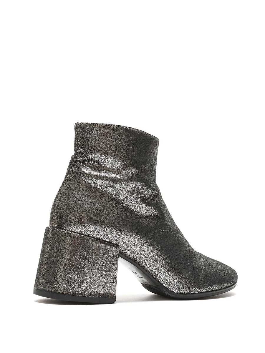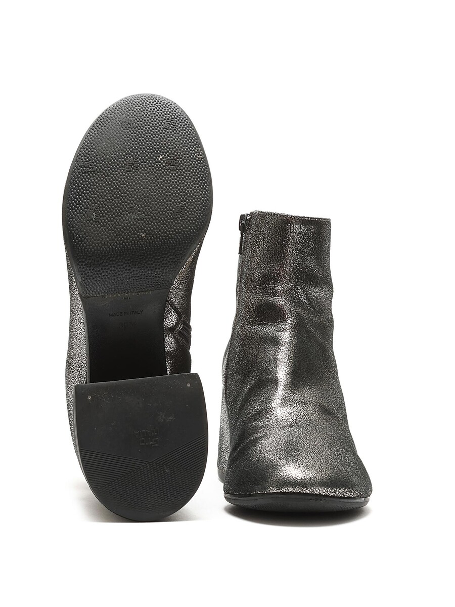 Bottes en cuir métallisé avec fermeture à glissière latérale. Bout rond. Semelle en caoutchouc. Livrées avec une pochette de protection.