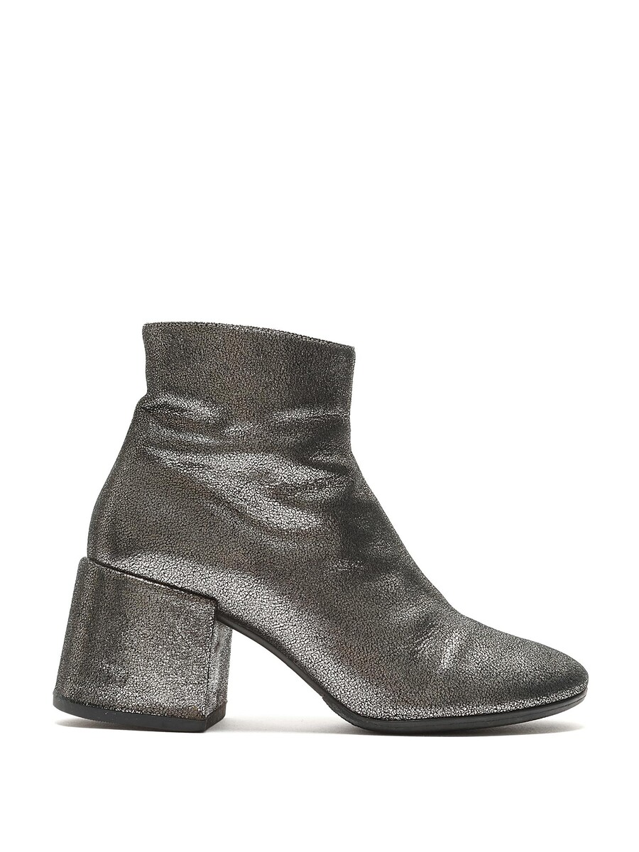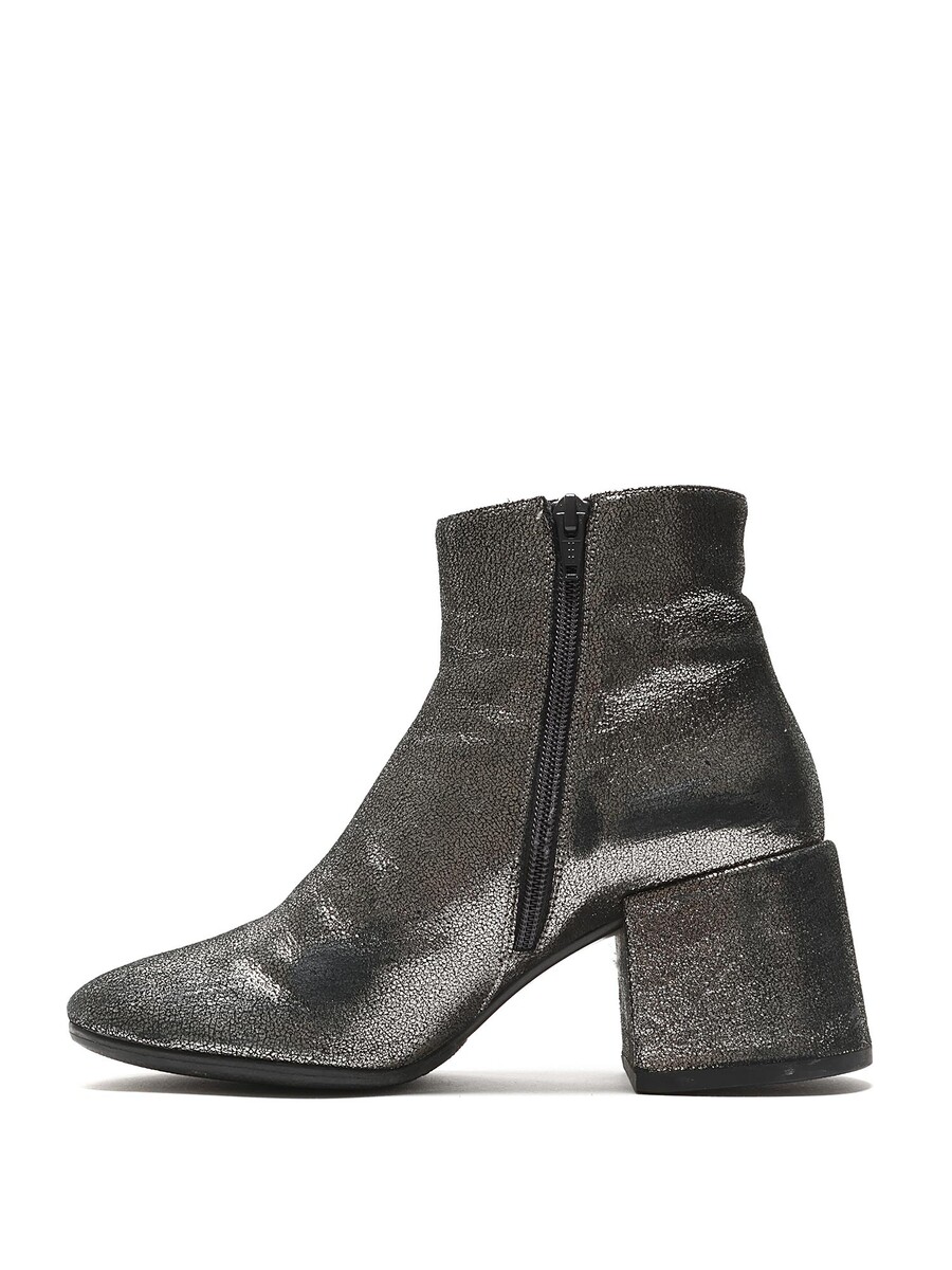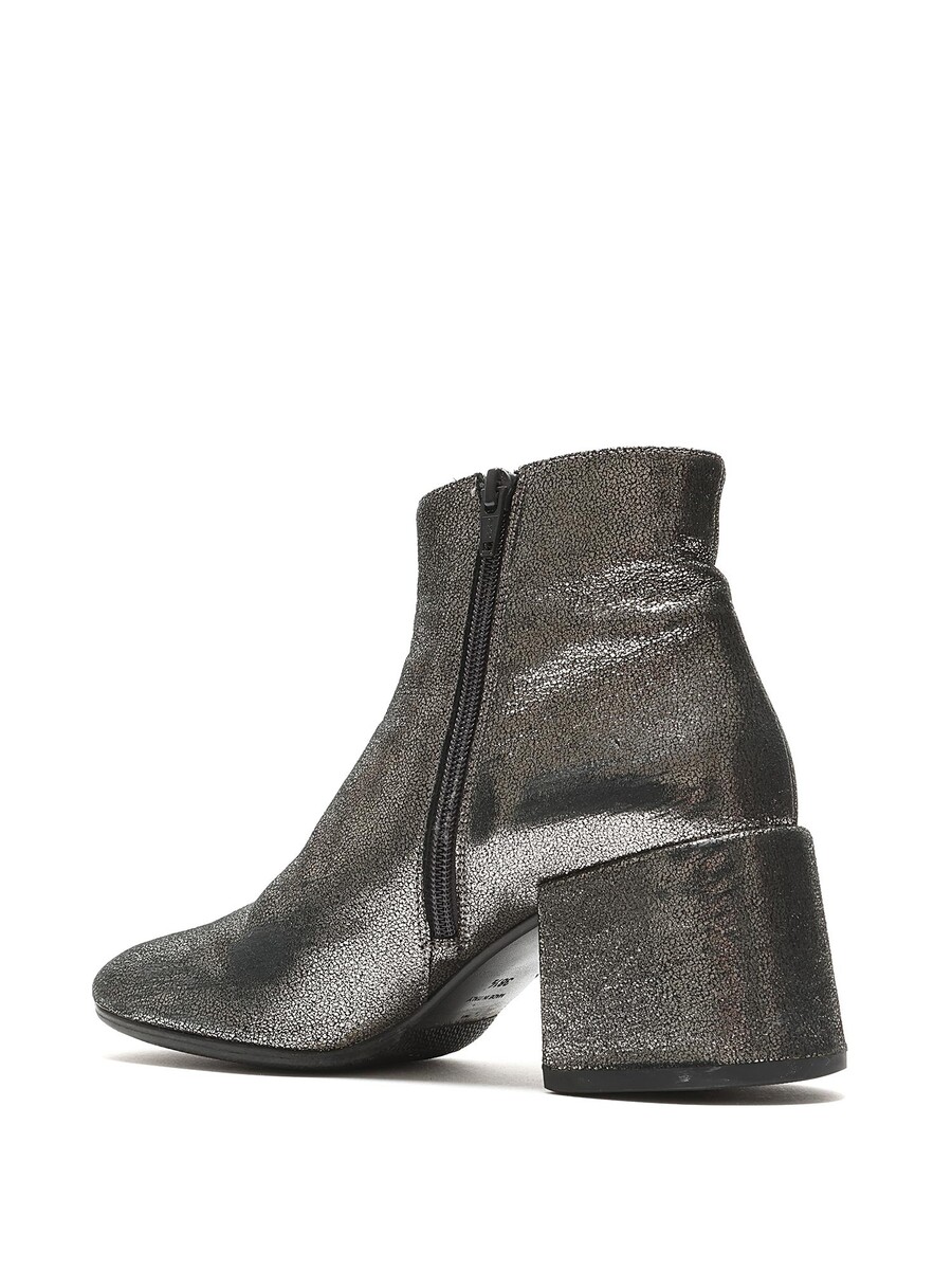 Bottes en cuir métallisé avec fermeture à glissière latérale. Bout rond. Semelle en caoutchouc. Livrées avec une pochette de protection.