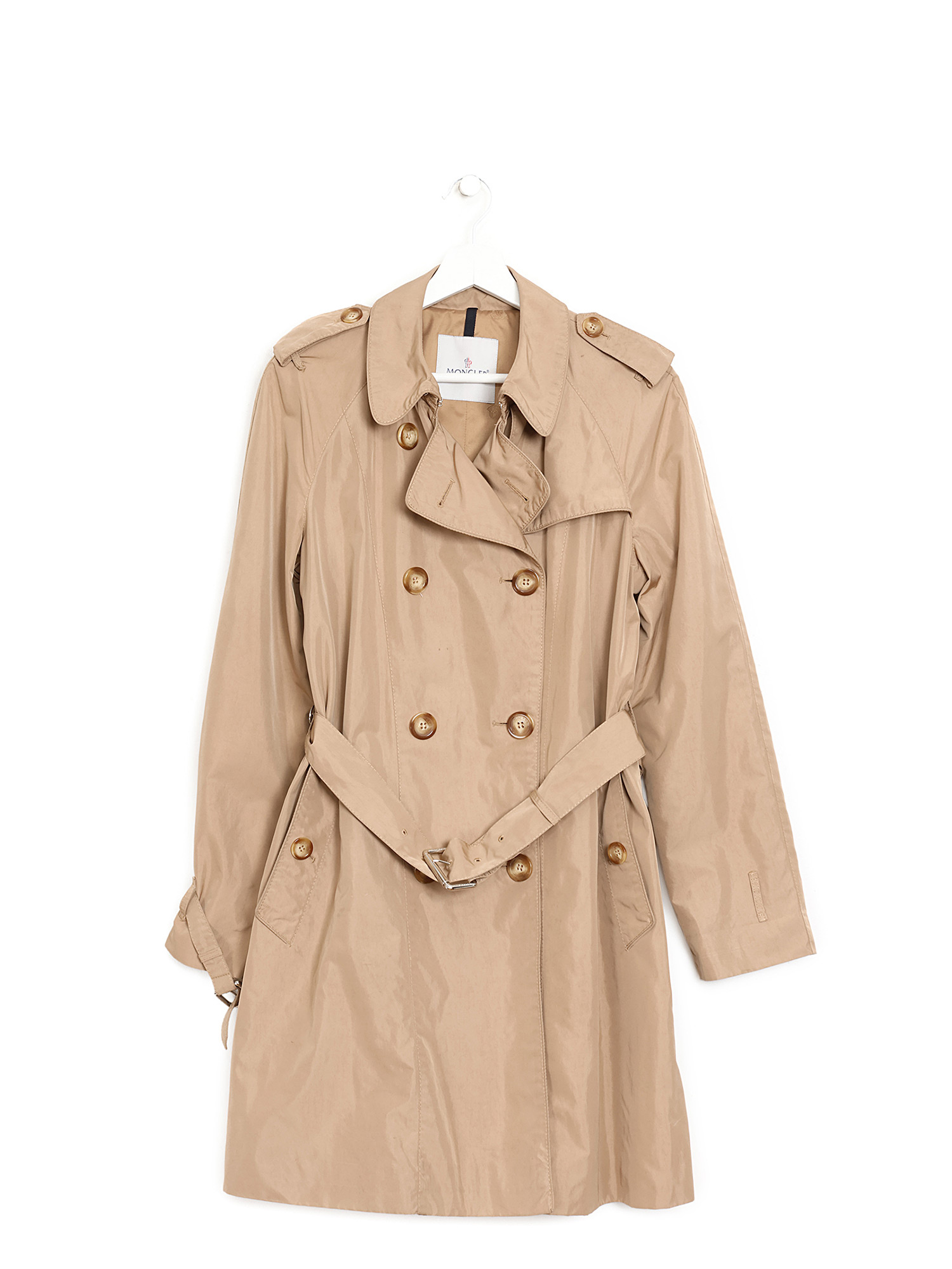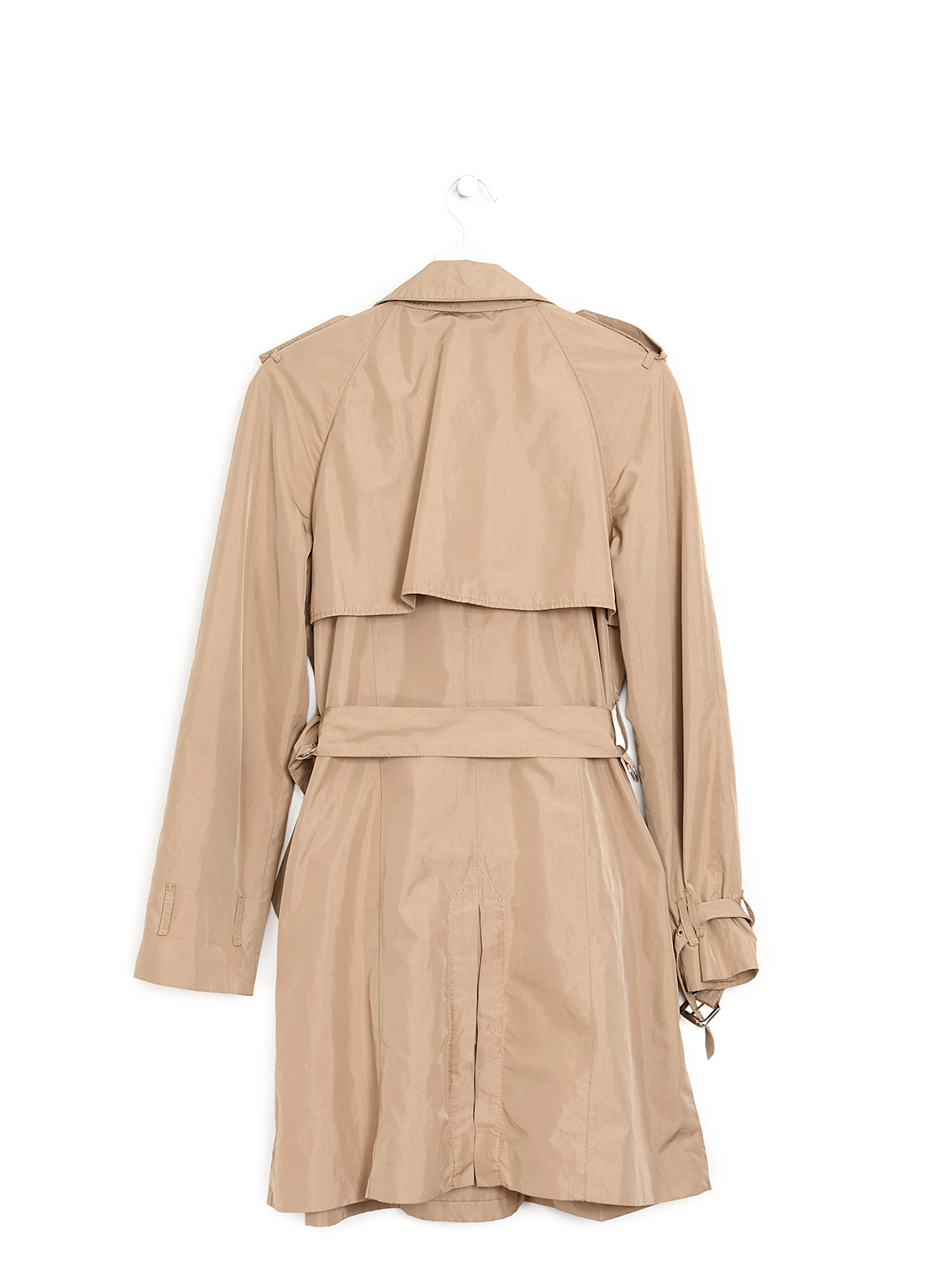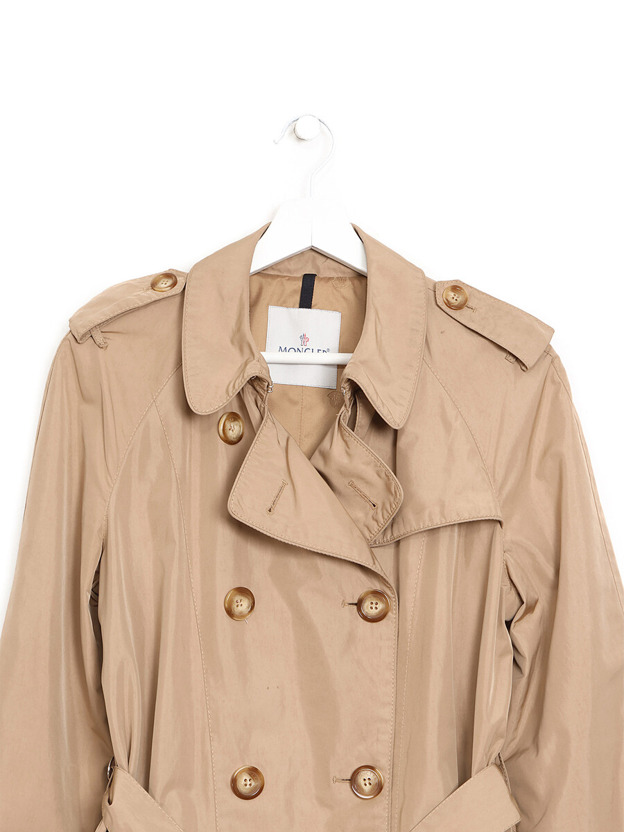 Manteau trench à manches longues beige avec fermeture à boutons sur le devant. Col chemise. Poches à rabat sur le devant.