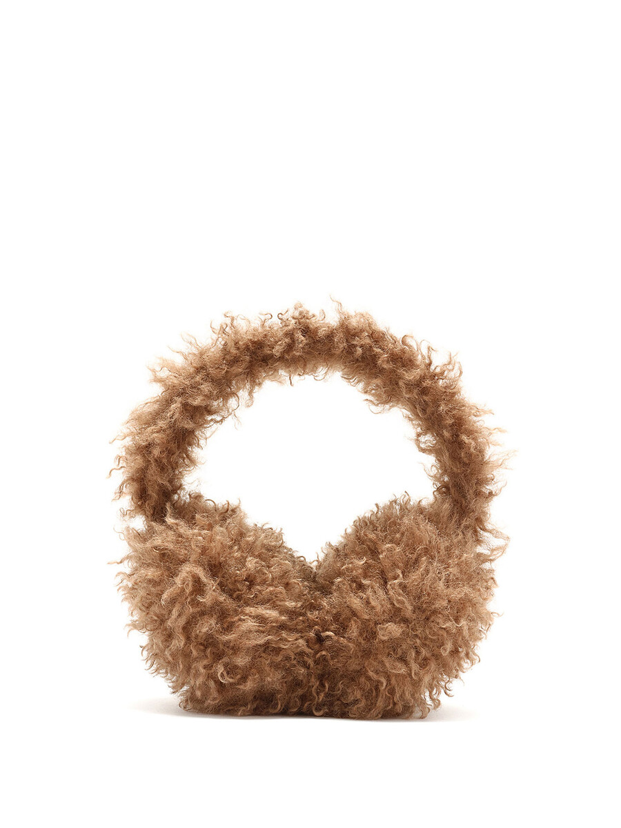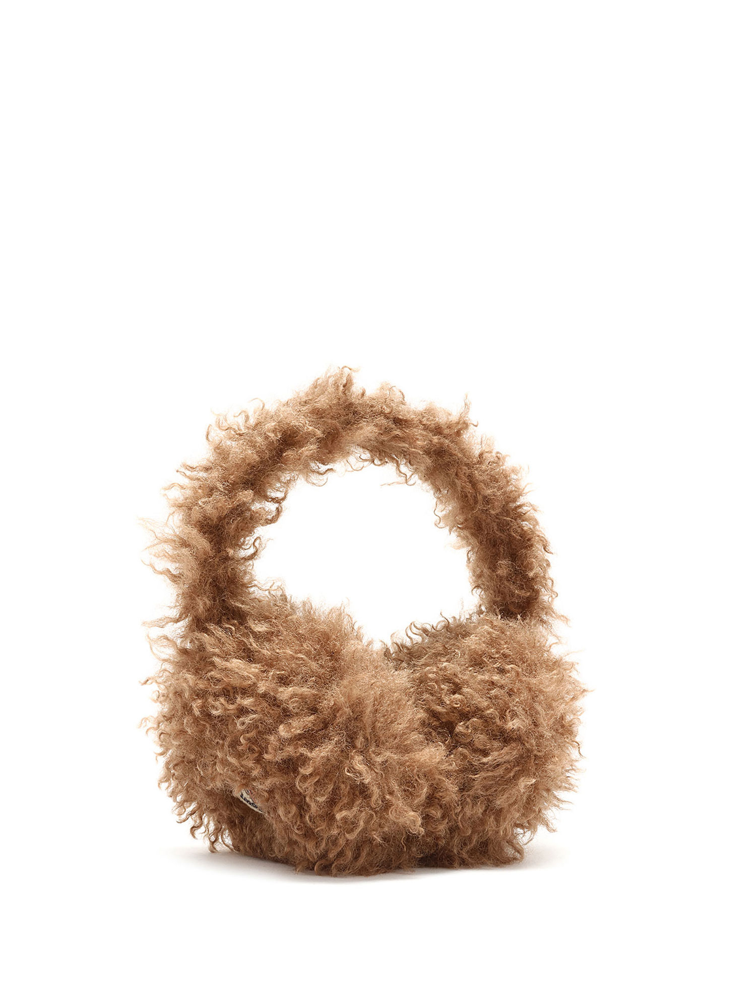 Cache-oreilles en molleton brun avec un écusson logo tricolore feutré sur le côté.