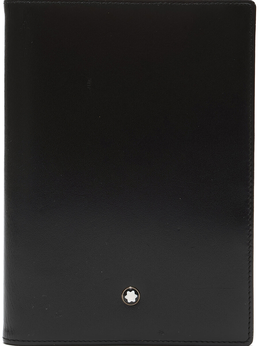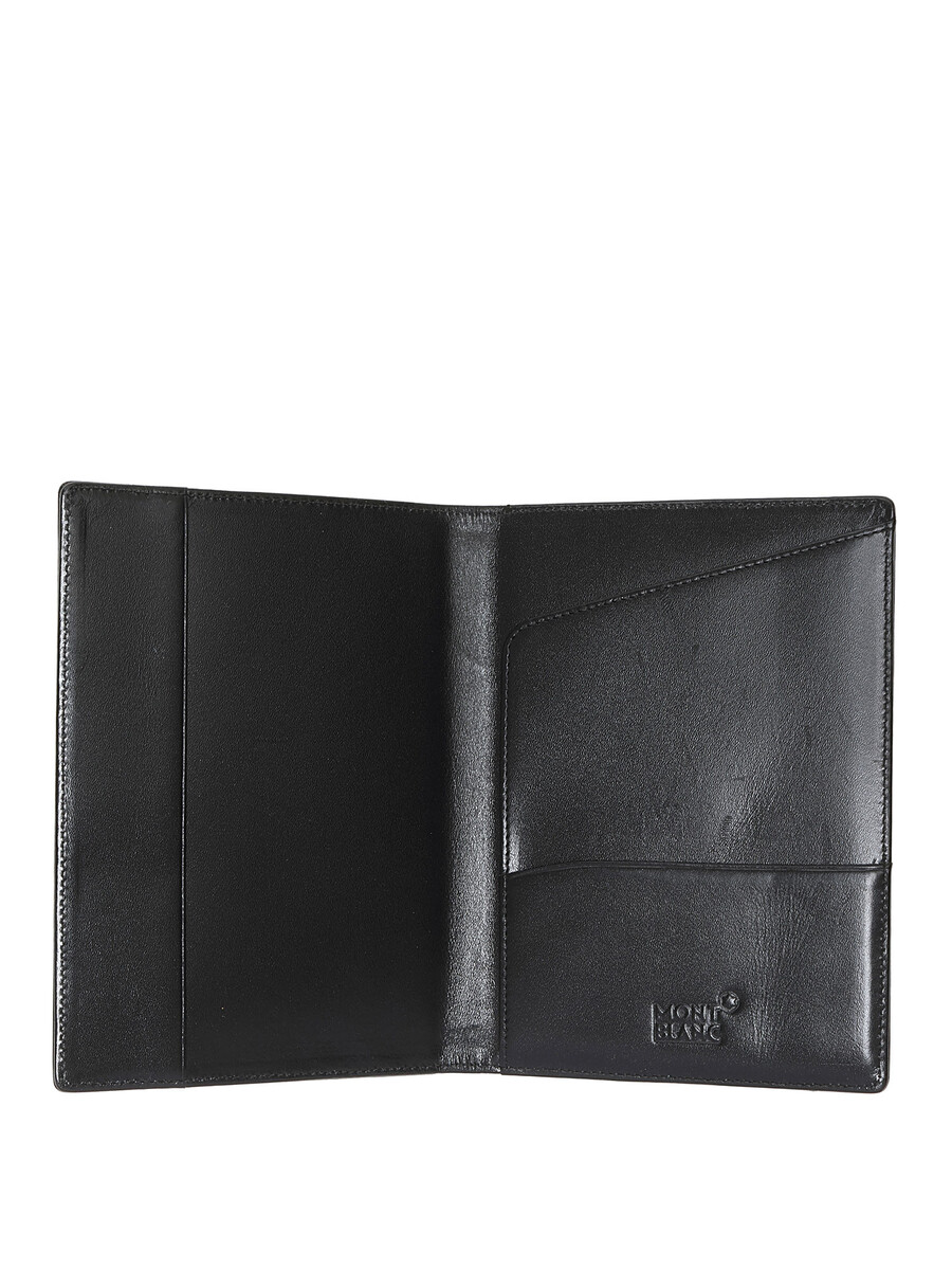 Portefeuille en cuir pleine fleur noir profond. Orné d'un emblème en métal poli et de coutures ton sur ton. Intérieur avec plusieurs fentes pour cartes et logo embossé.