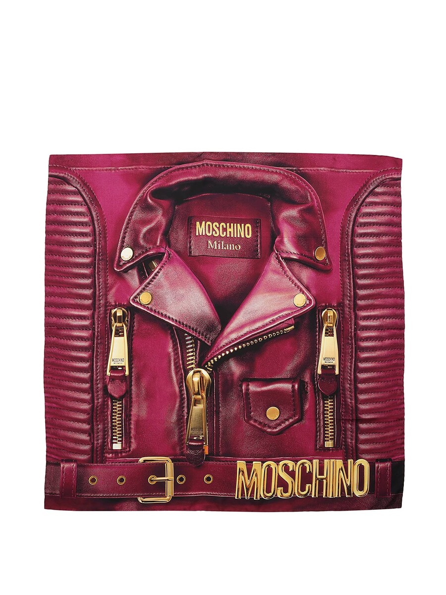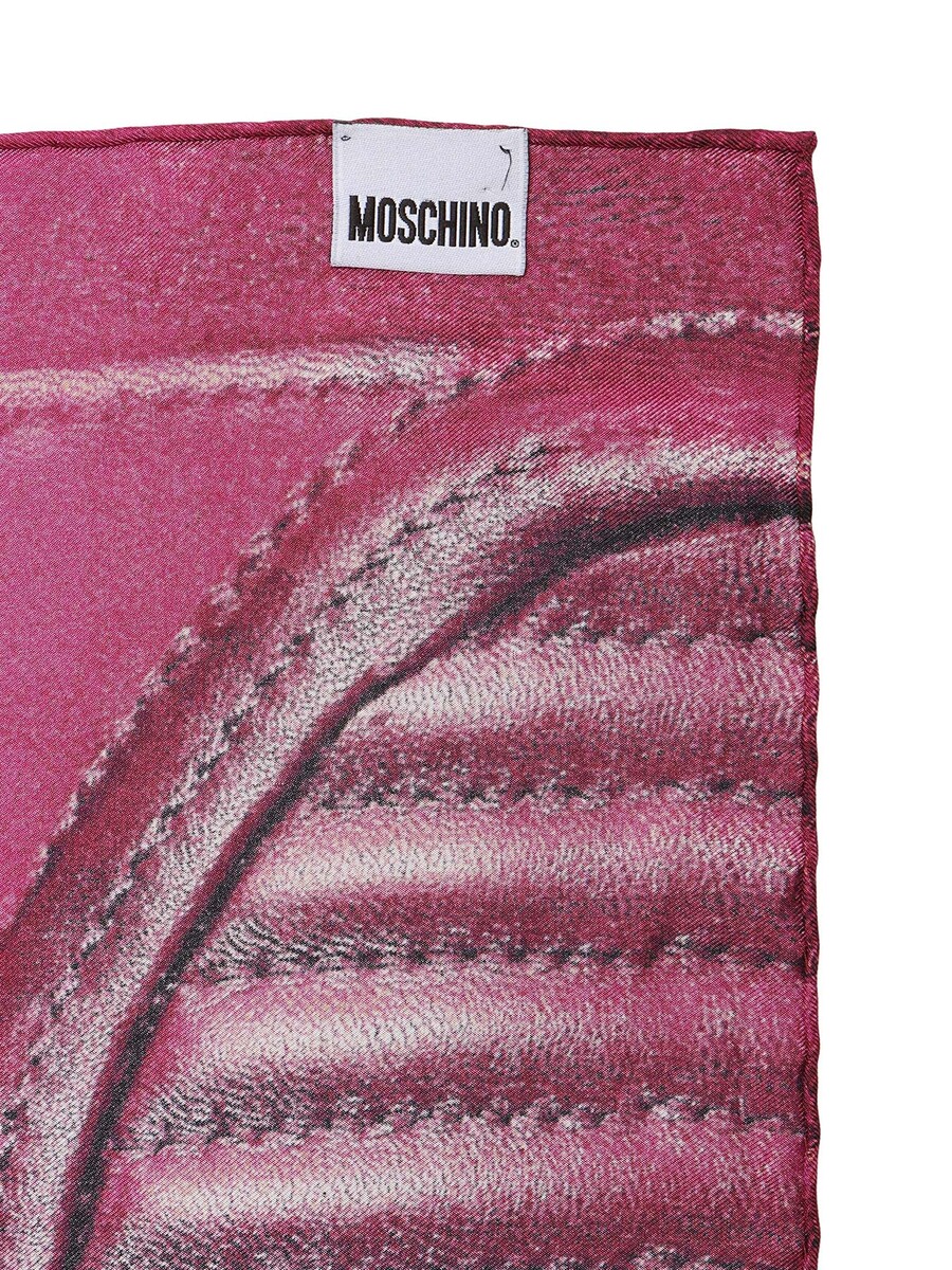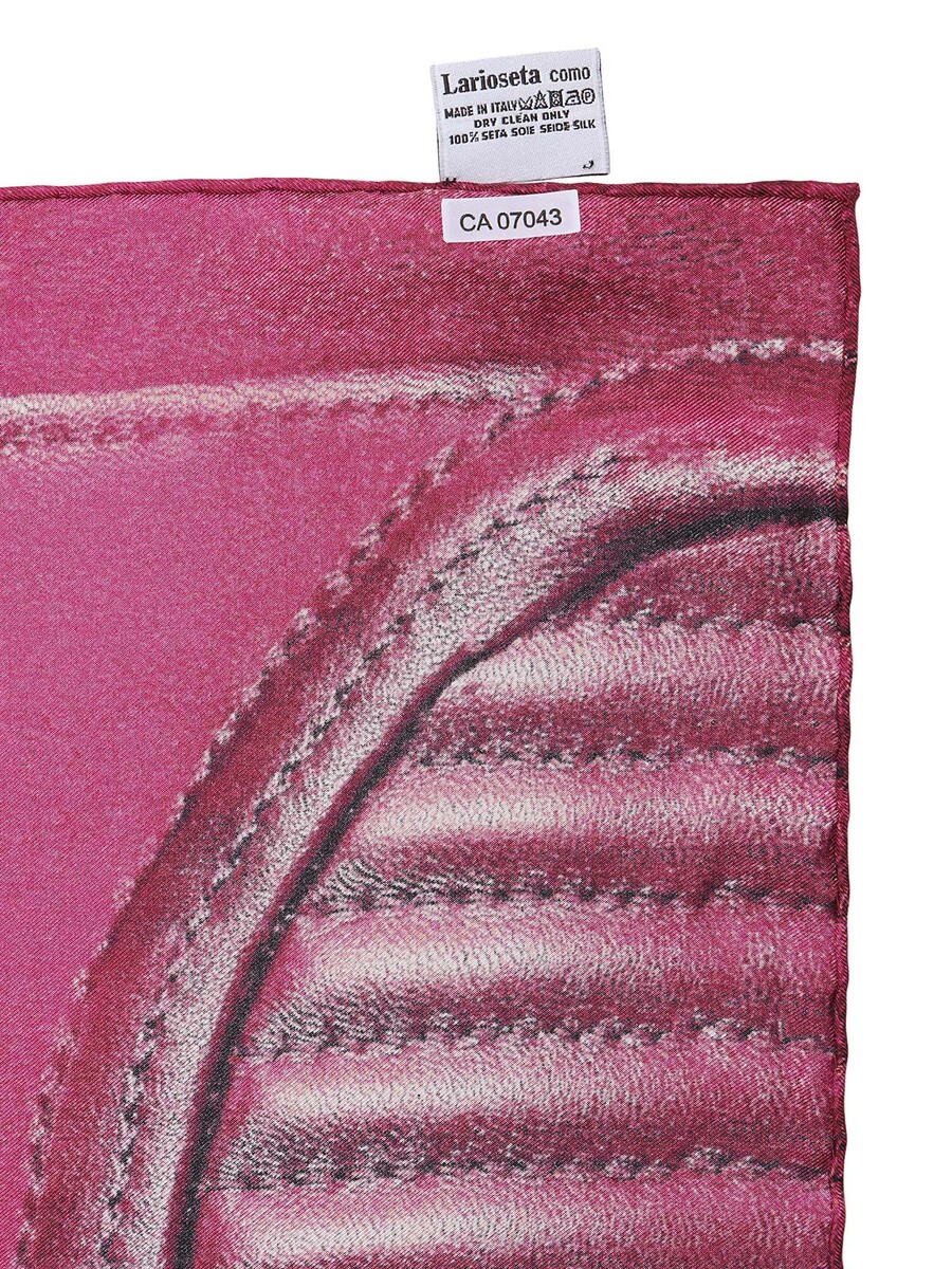 Foulard en soie avec un imprimé "trompe l'oeil" de veston en magenta et jaune vif.