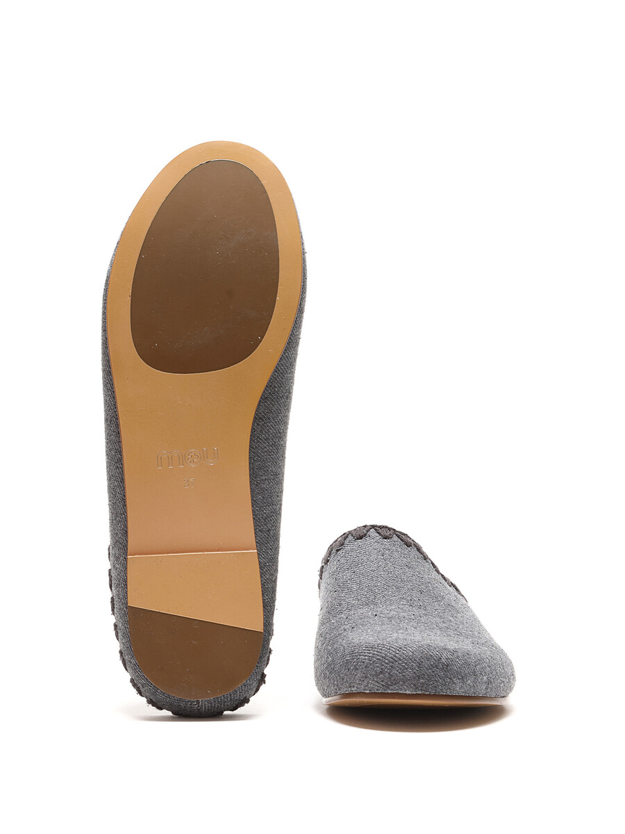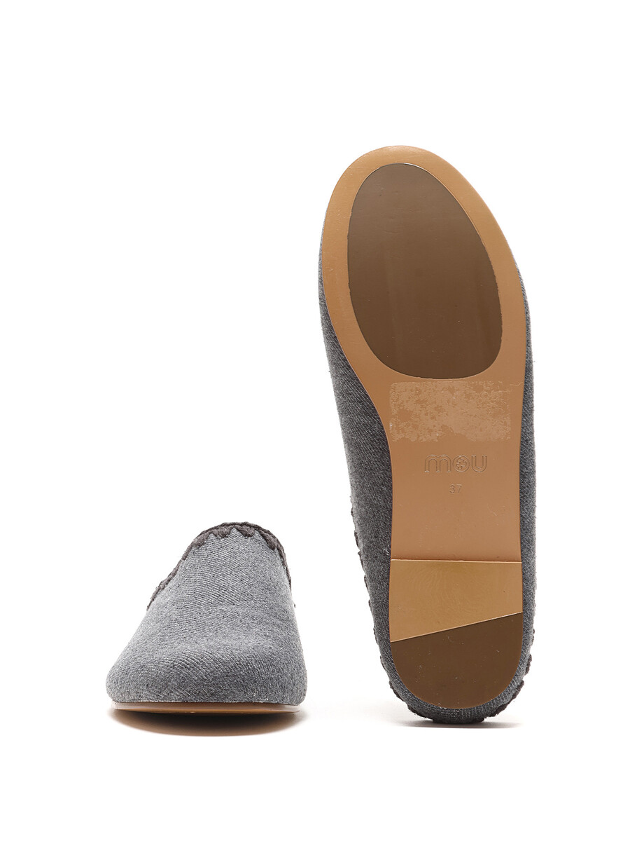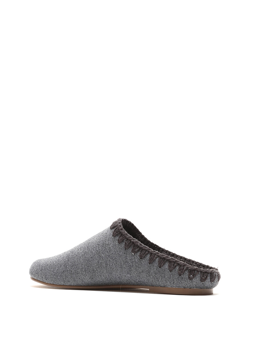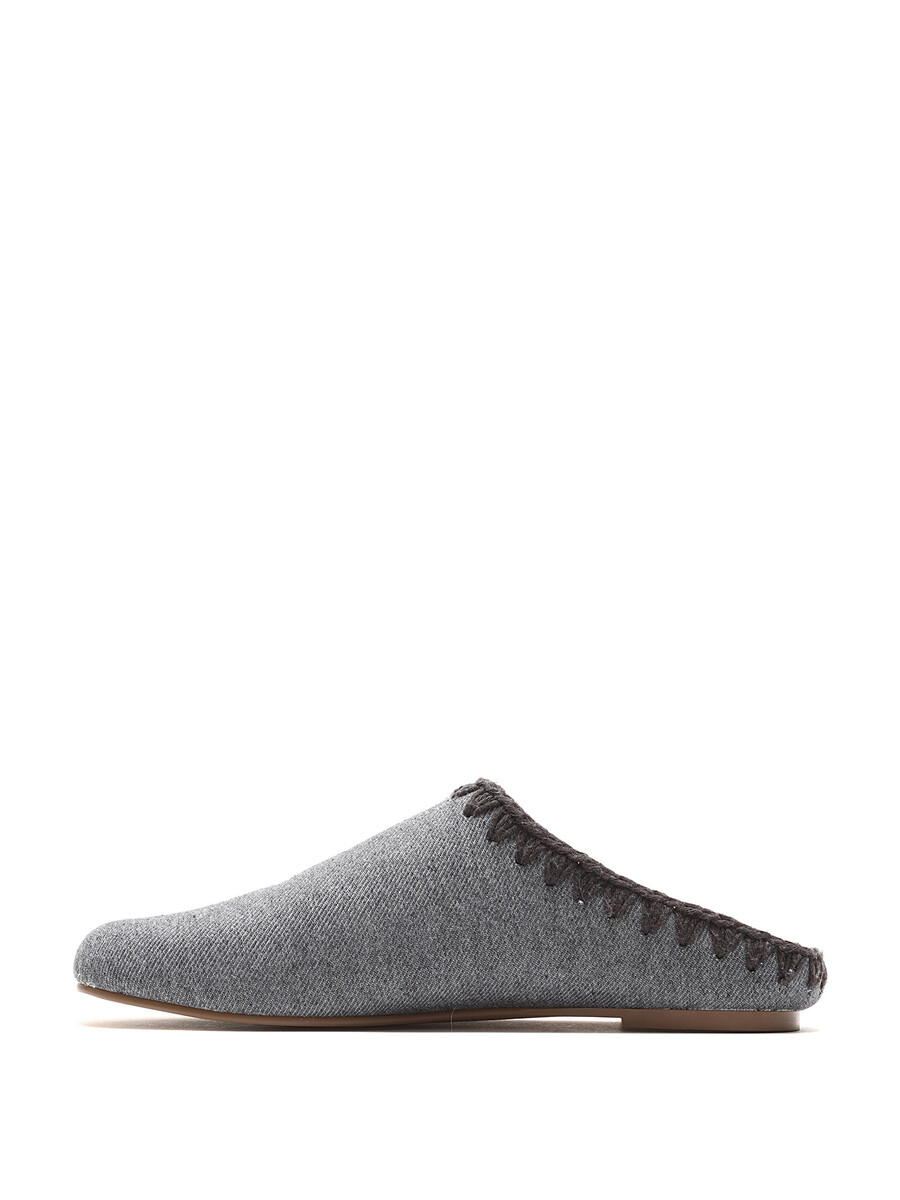 Mules en feutre gris à enfiler avec bout rond fermé et semelle en cuir.