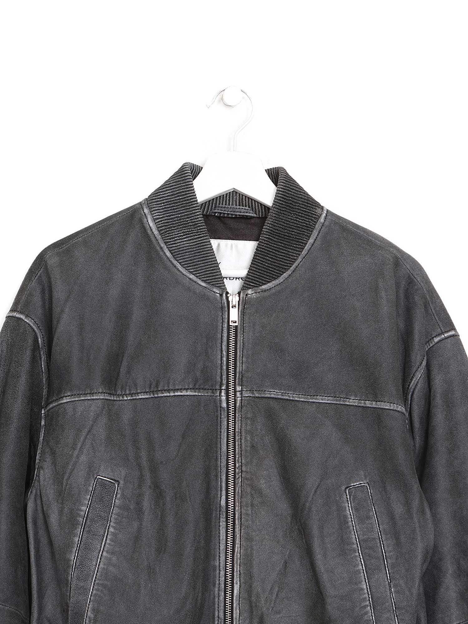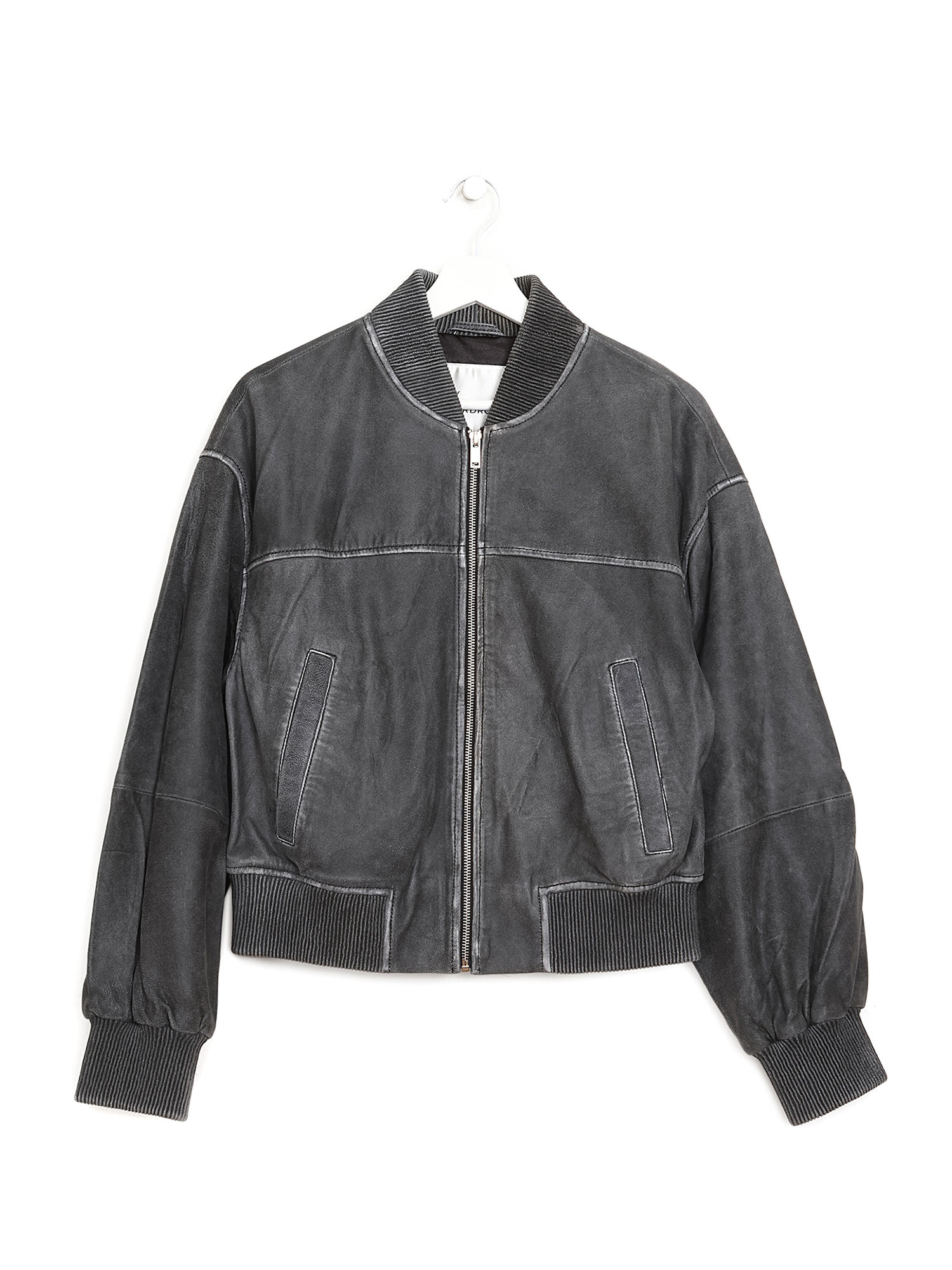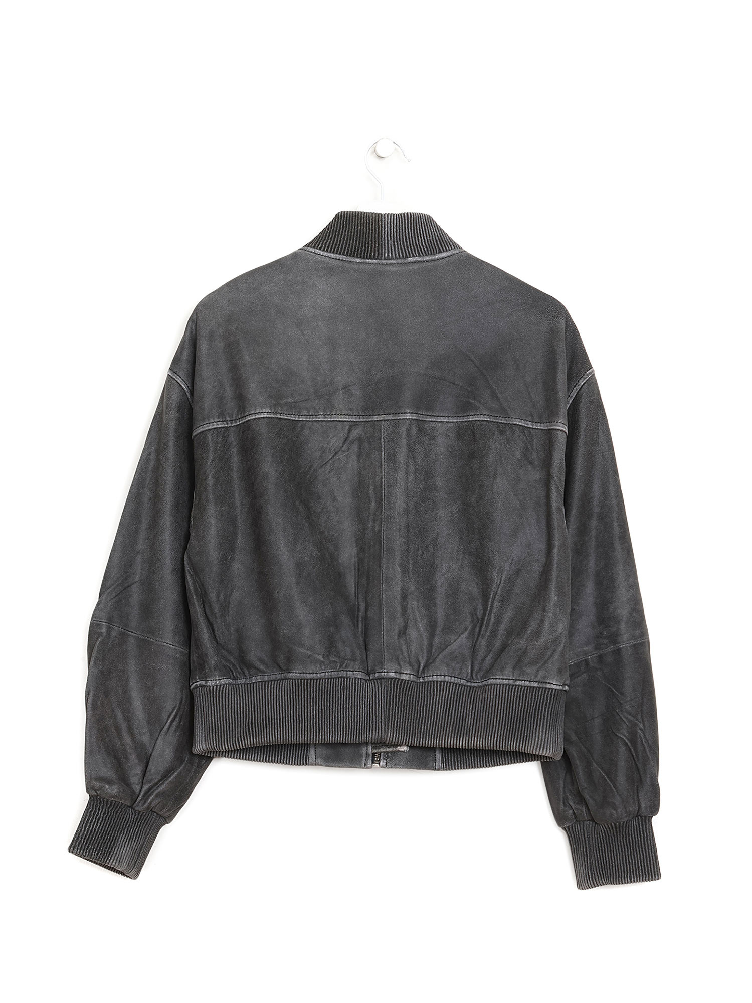 Bomber en cuir d'agneau avec fermeture éclair. Manches longues et poches latérales à rabat.