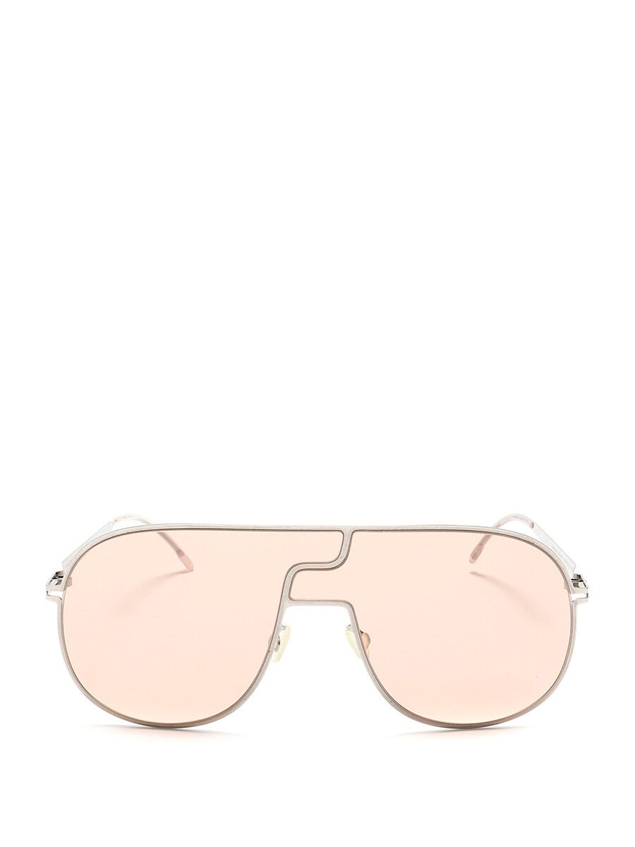 Lunettes de soleil de style aviateur avec monture en métal poli argenté. Verres teintés marron. Détails argentés. Livrées avec étui.