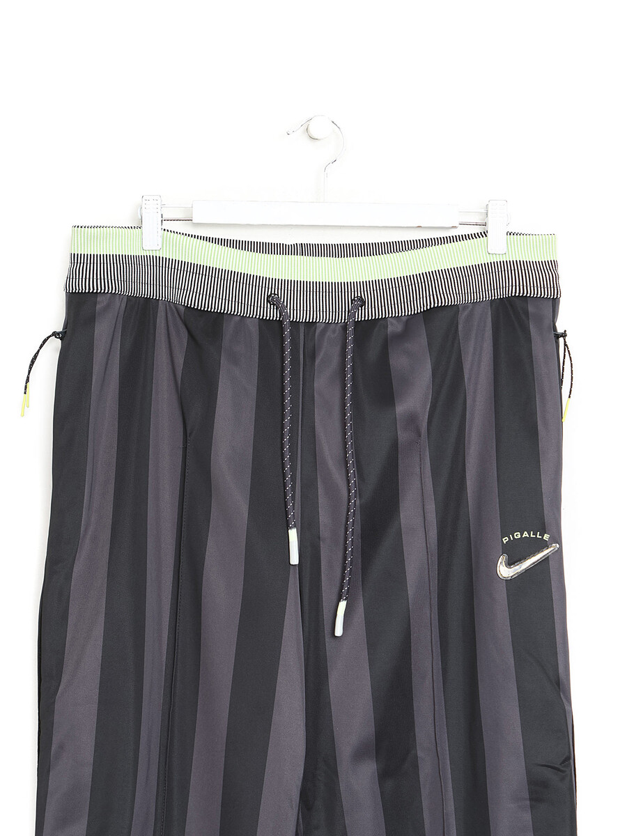 Pantalon de survêtement à rayures grises et noires avec cordon réglable à la taille. Conçu pour une coupe décontractée.