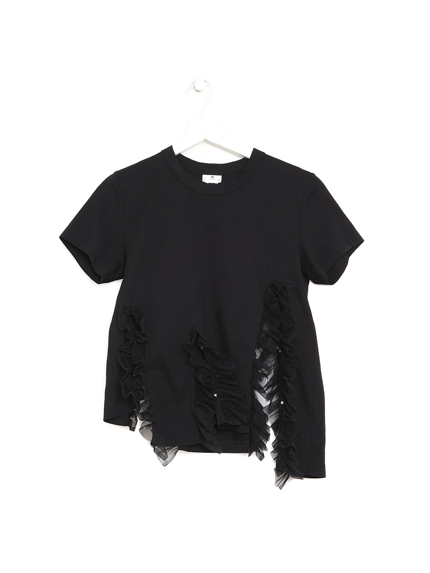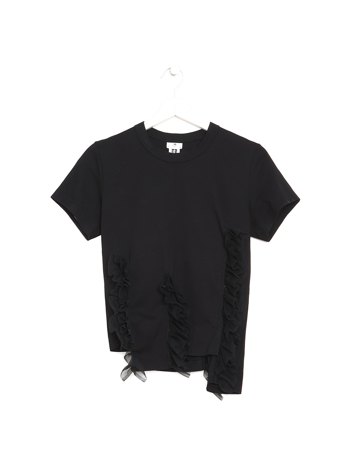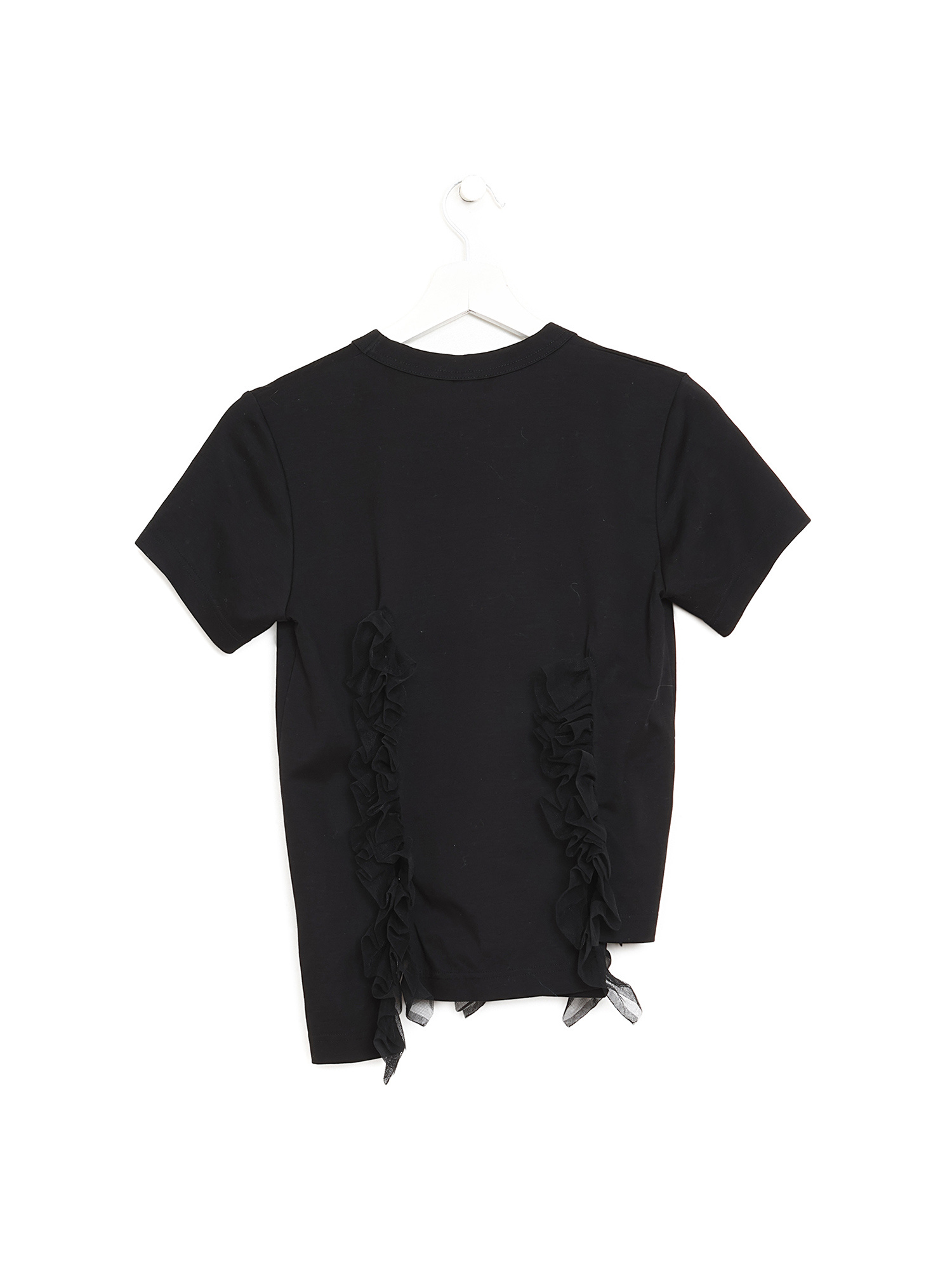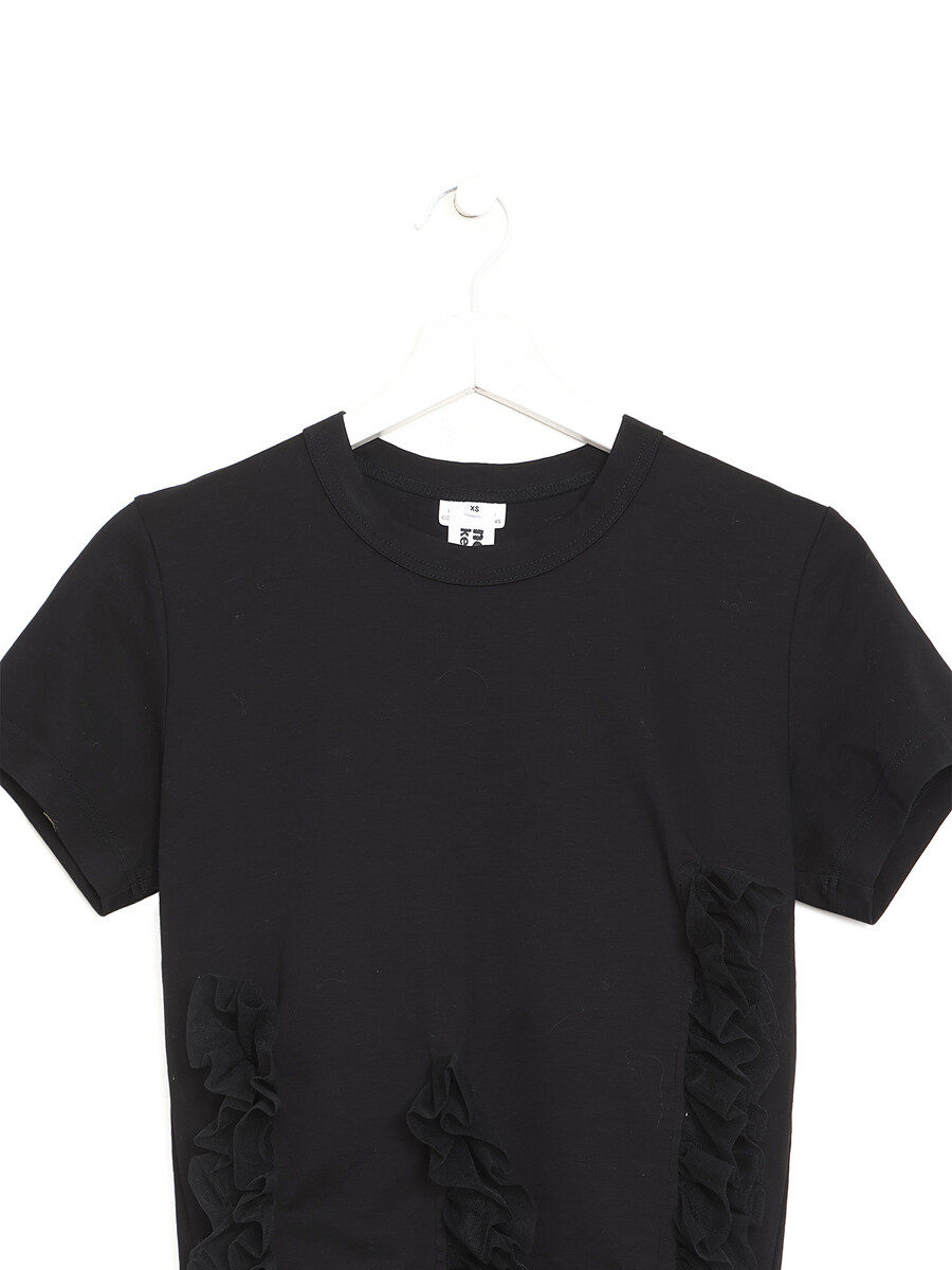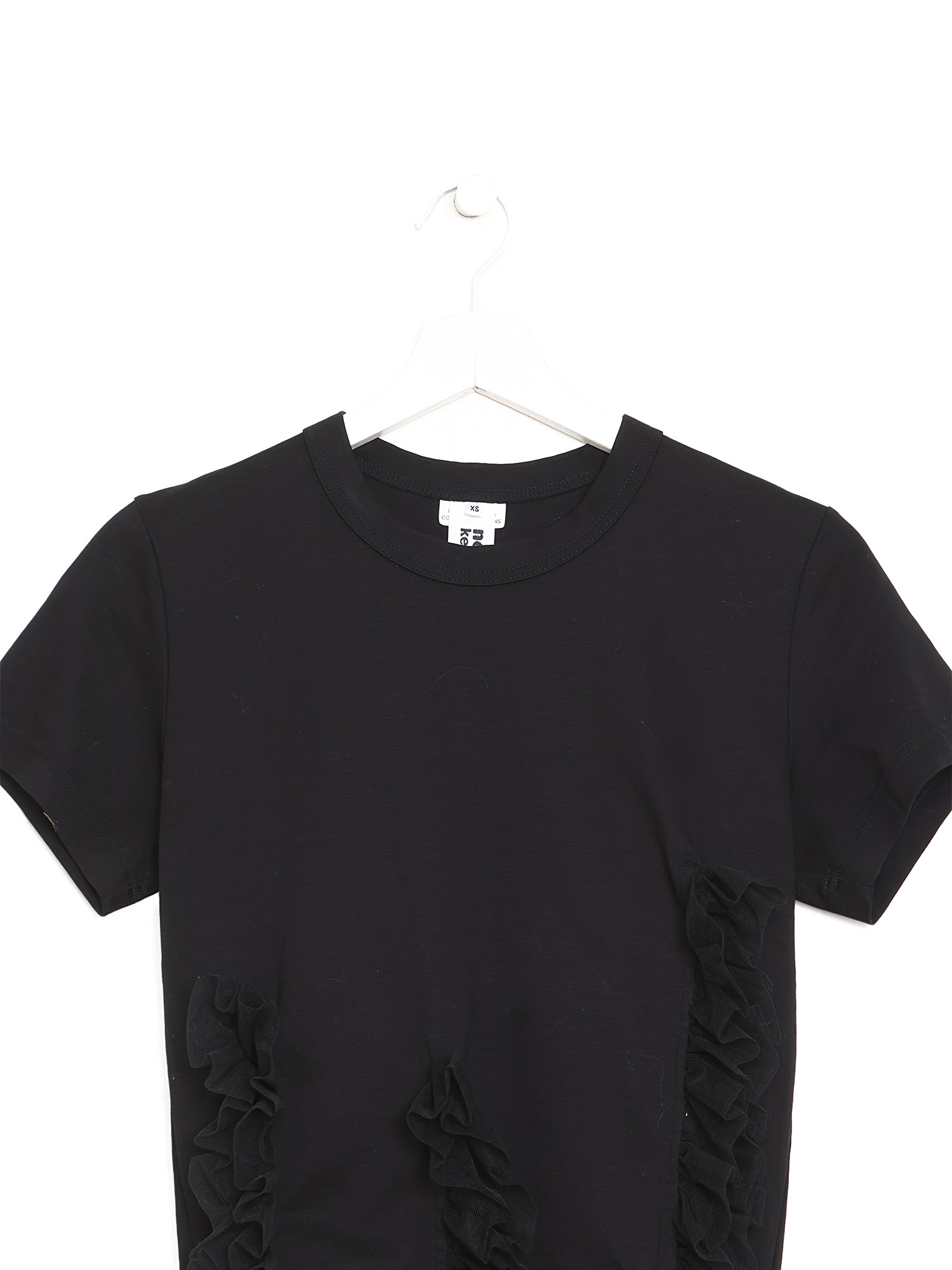 T-shirt à manches courtes avec détails de volants et patte de boutonnage sur le devant.