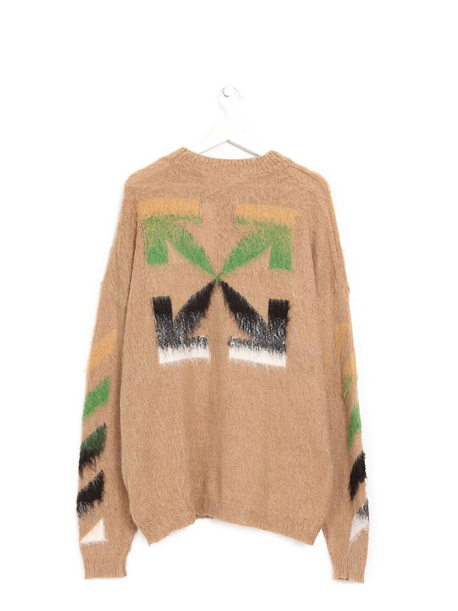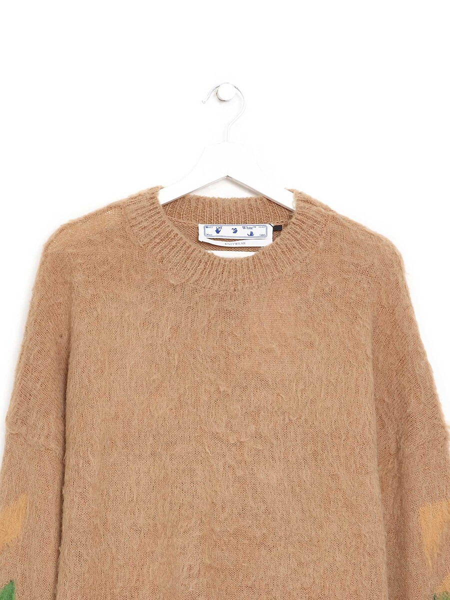 Pull à manches longues en mohair beige avec motif à logo. Encolure ronde. Texture douce. Finitions côtelées aux poignets et à l'ourlet.