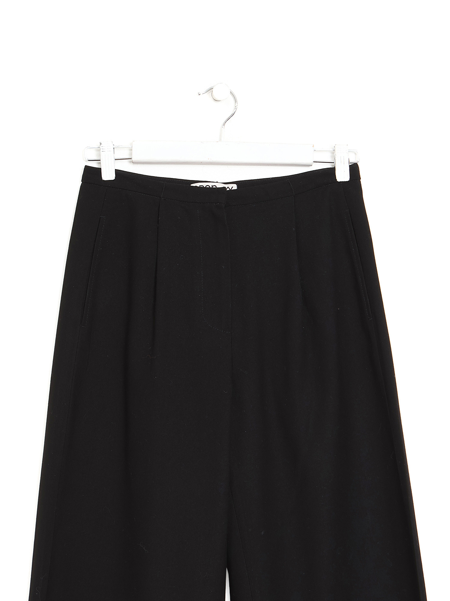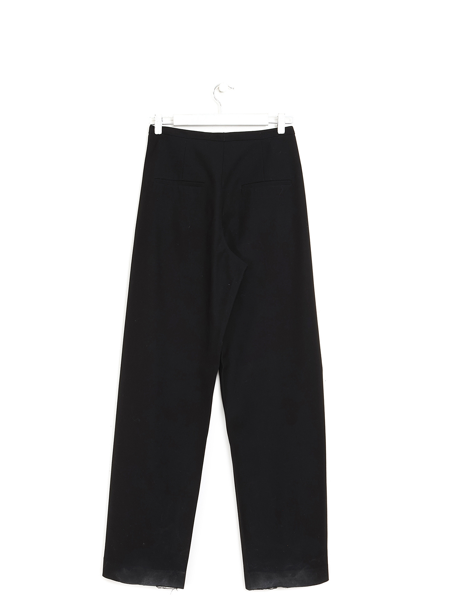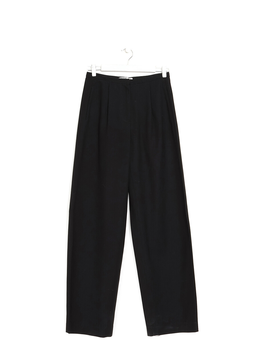 Pantalon droit en noir. Fermeture éclair et crochet.