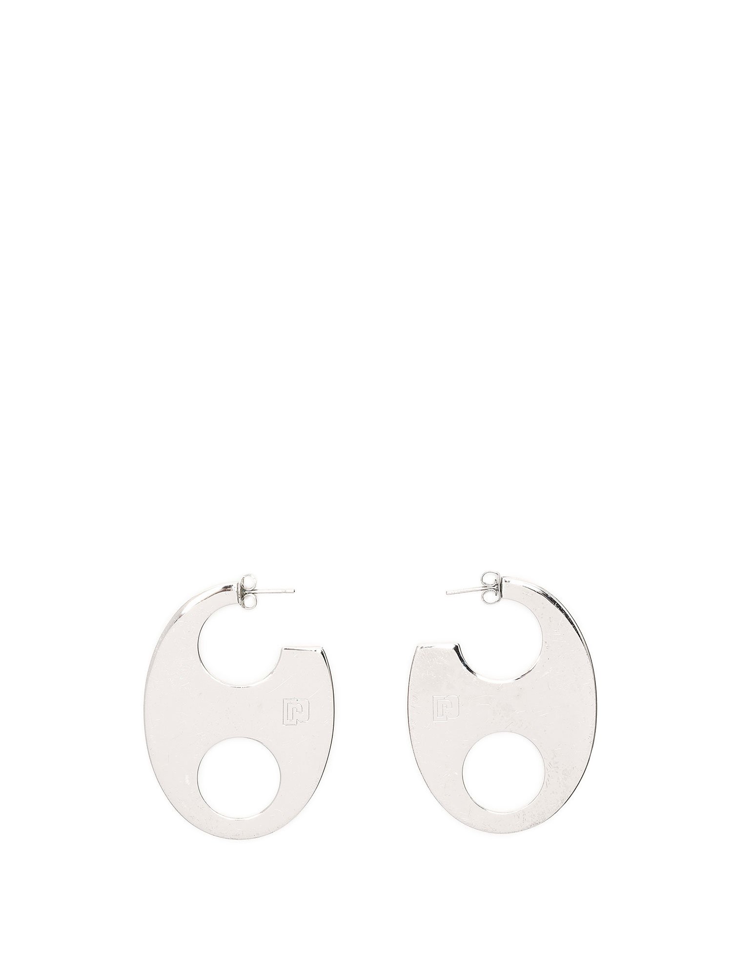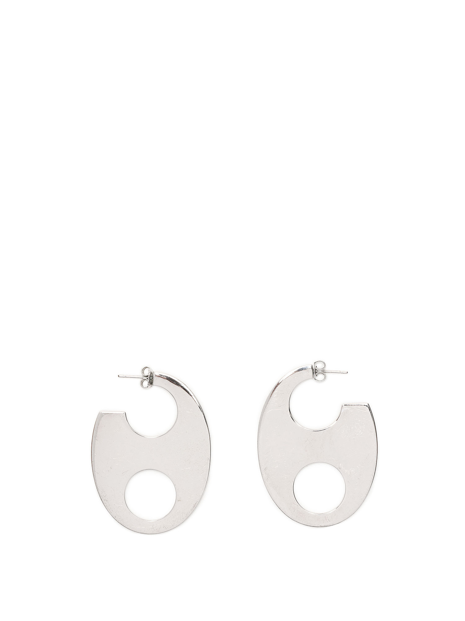 Boucles d'oreilles circulaires à finition argentée. En laiton. Livrées avec étui et boîte de marque.