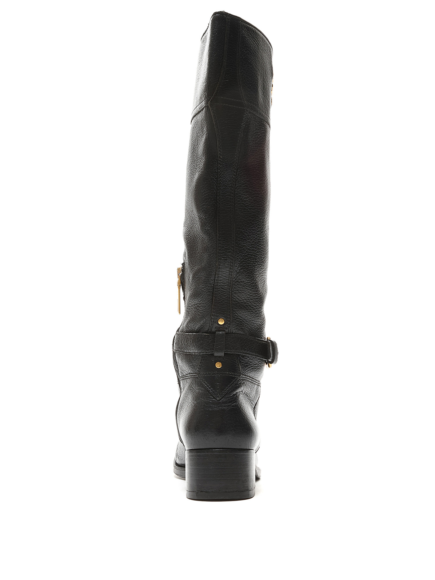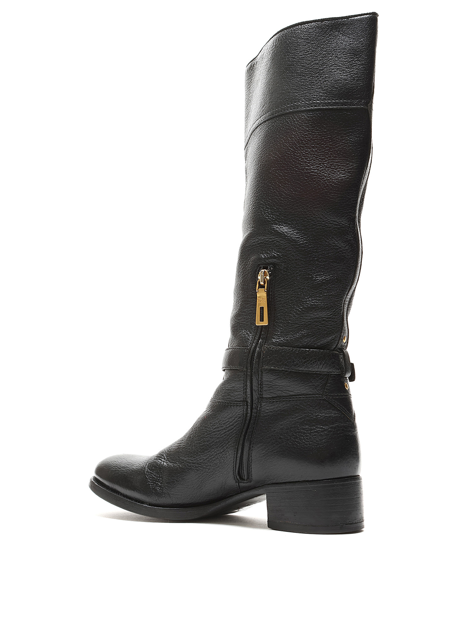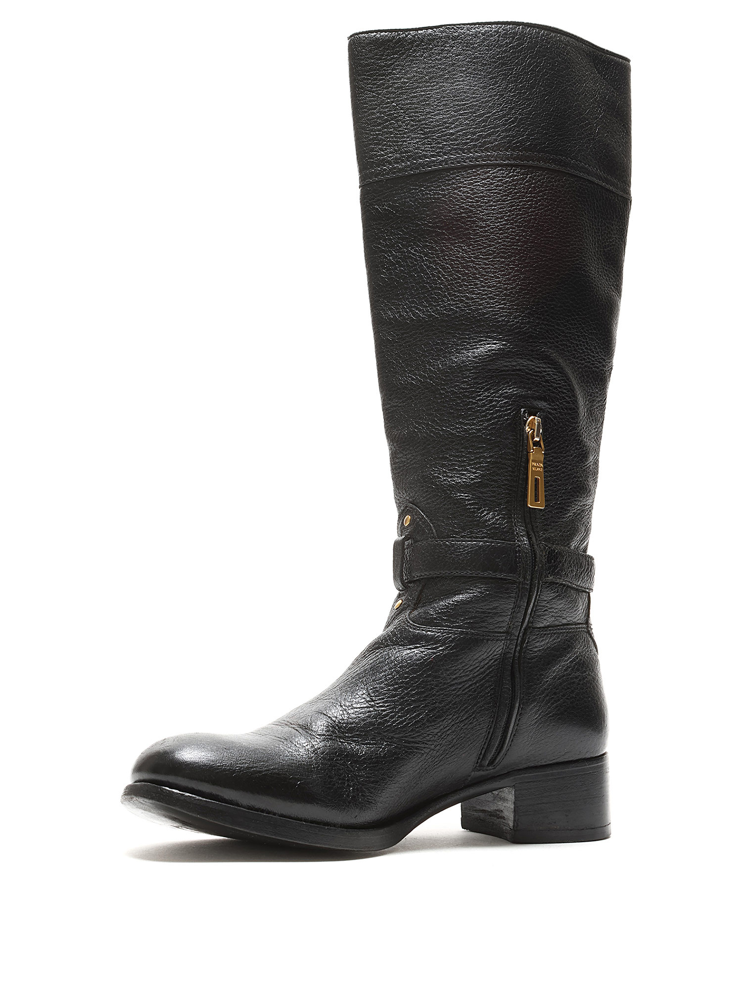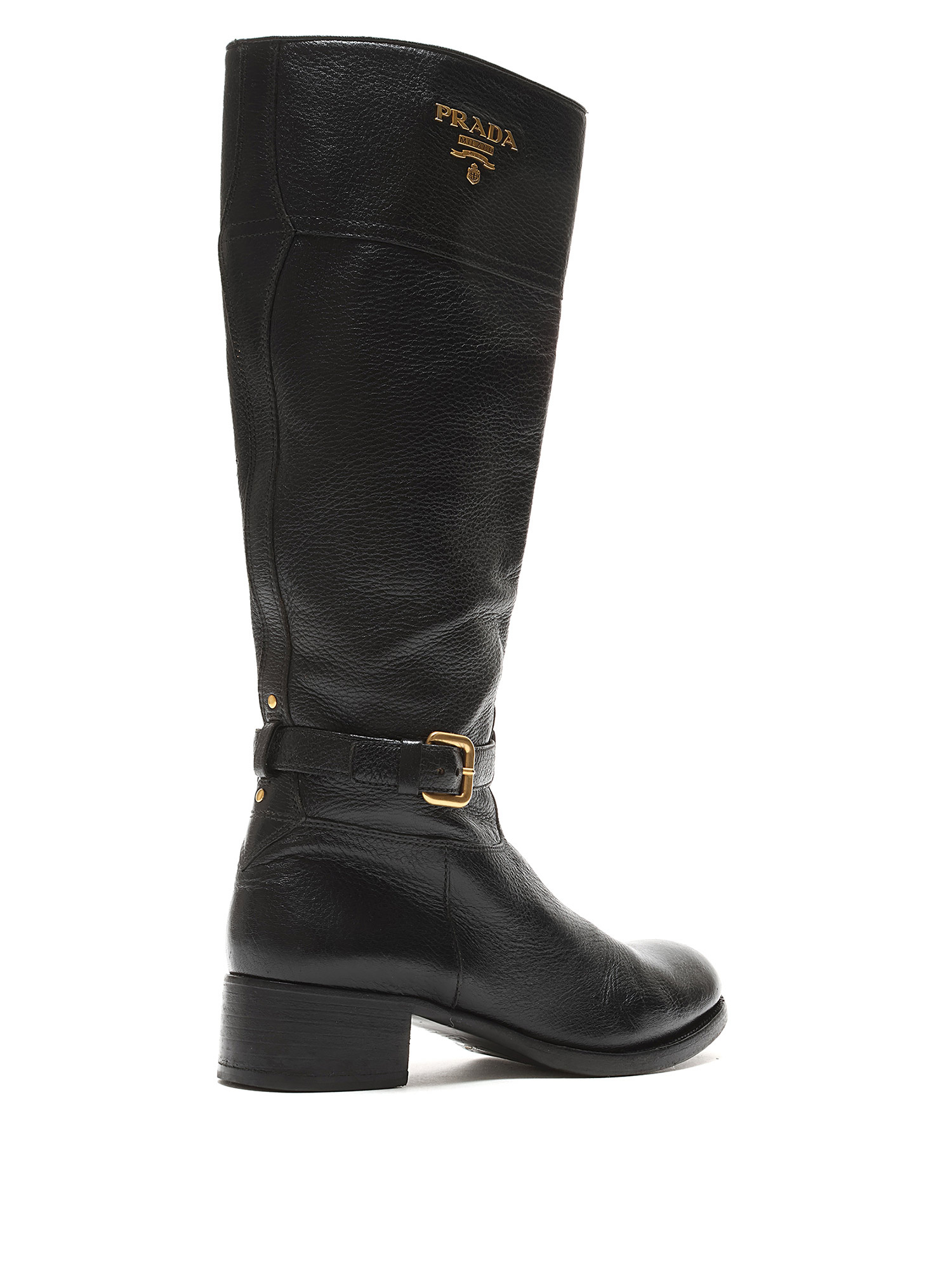 Bottes à la cheville en cuir grainé noir avec fermeture à boucle et bout rond. Semelle en cuir.