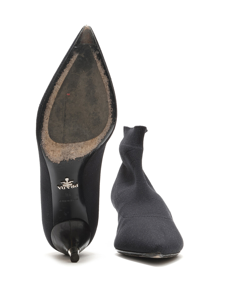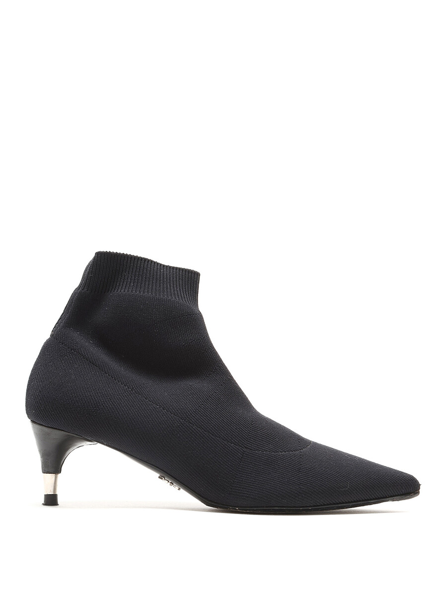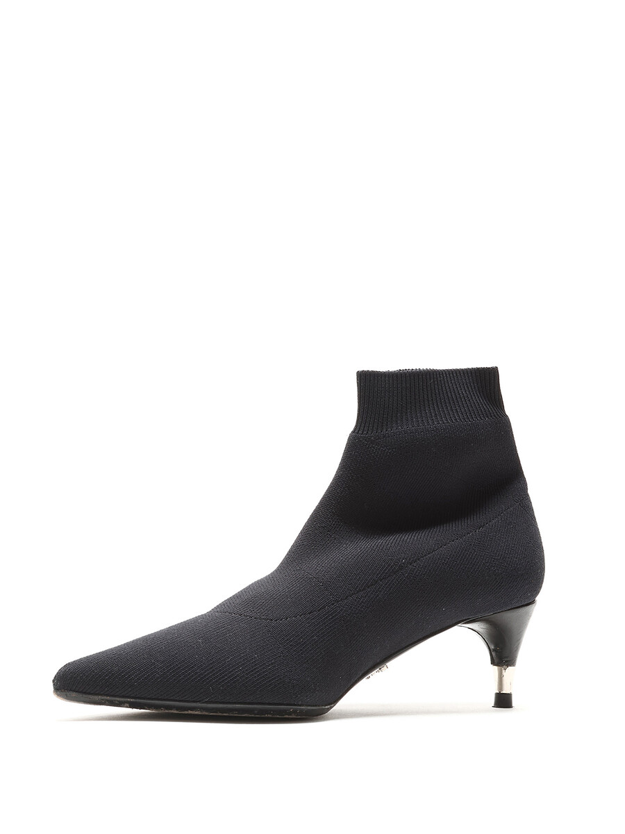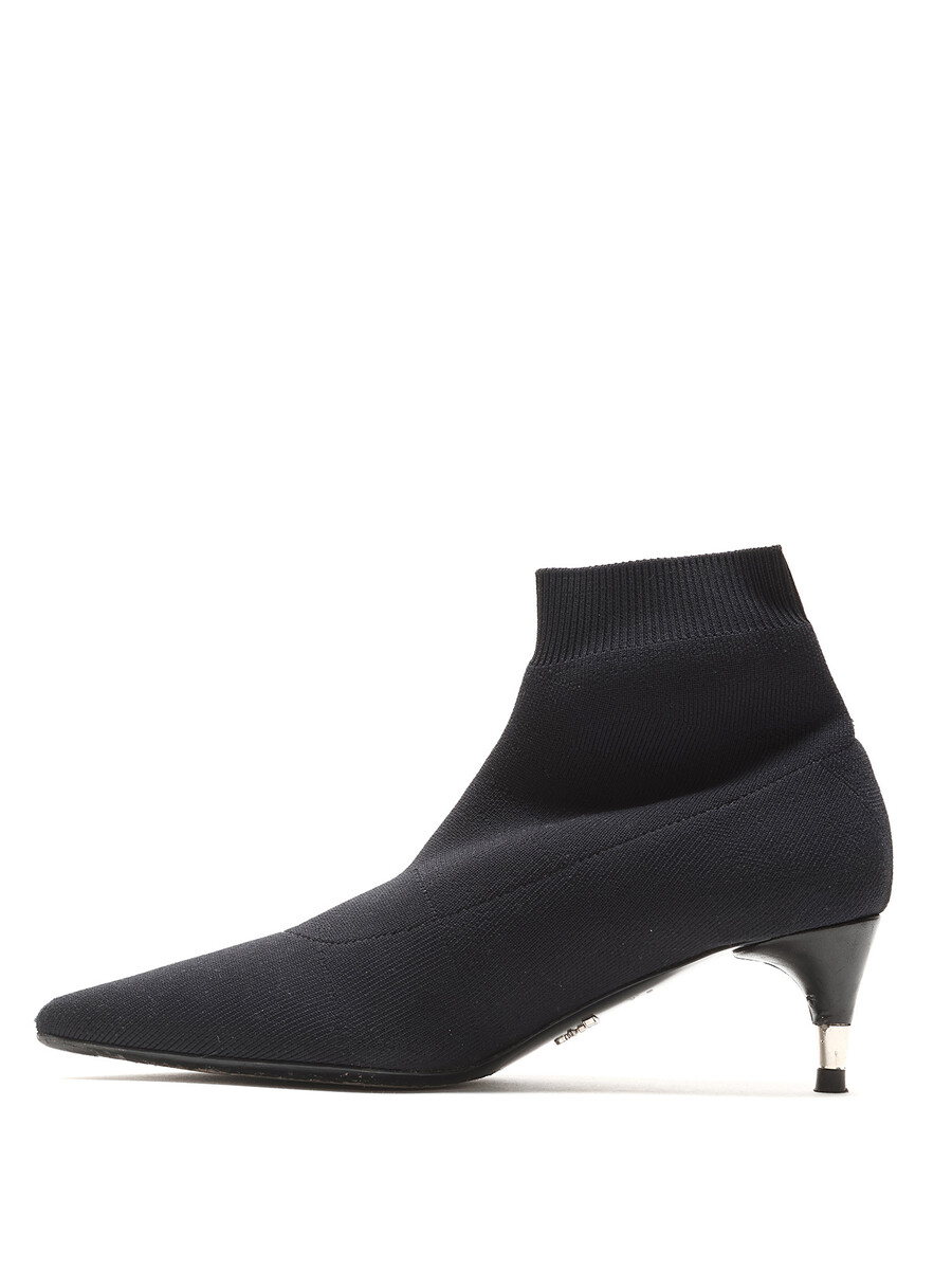 Bottes en maille extensible à la cheville avec un bout pointu élégant en noir classique. Vient avec boîte.