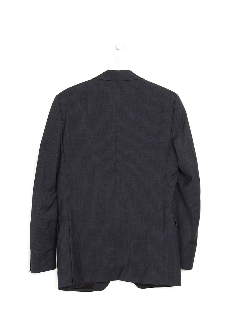 Veston en laine vierge gris. Revers crantés. Poches à rabats. Design à simple boutonnage. Coupe ajustée.