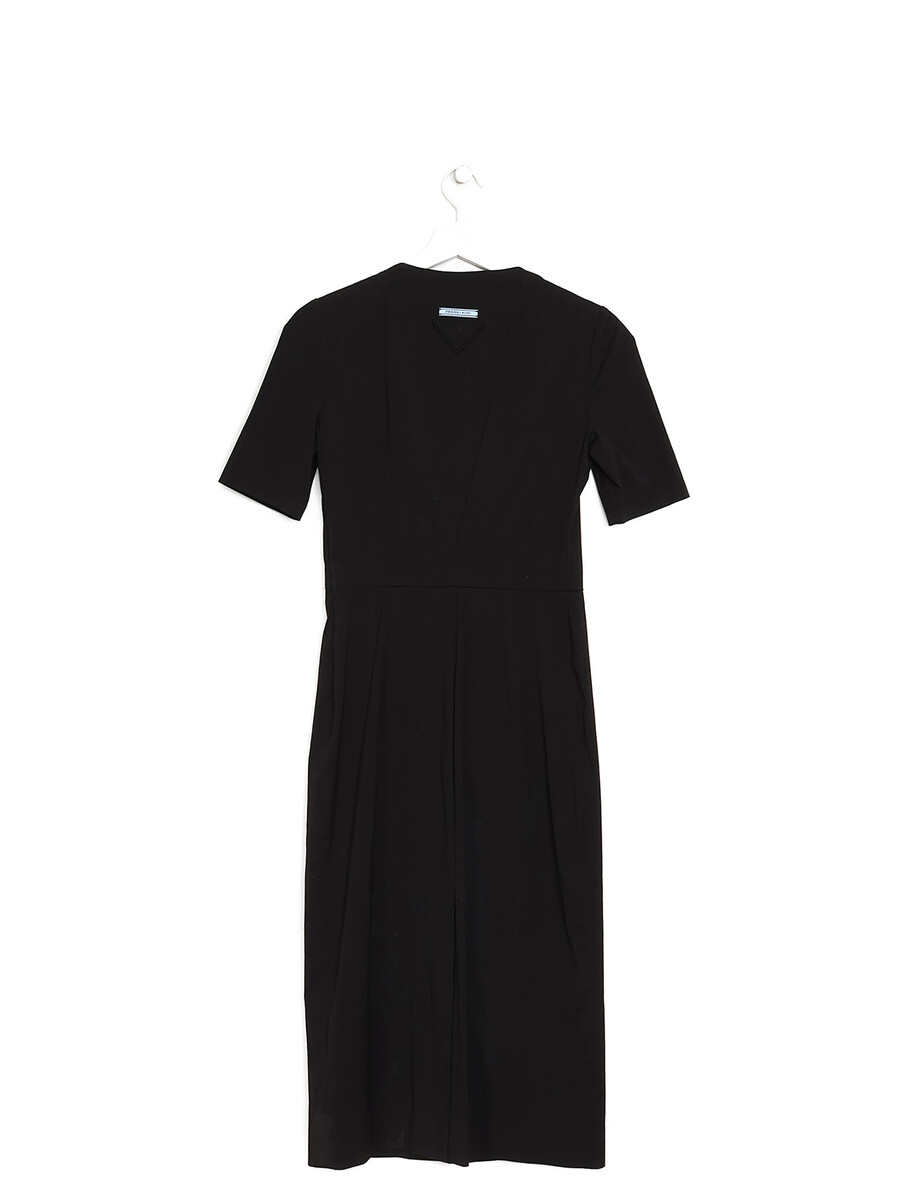 Robe mi-longue à manches courtes en noir avec logo monochrome au dos. Encolure ronde. Silhouette subtilement en A.