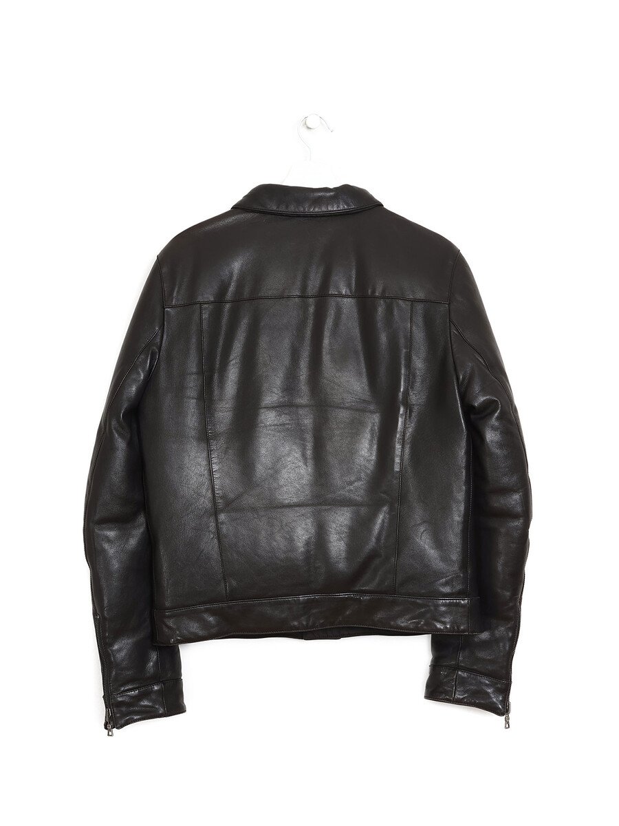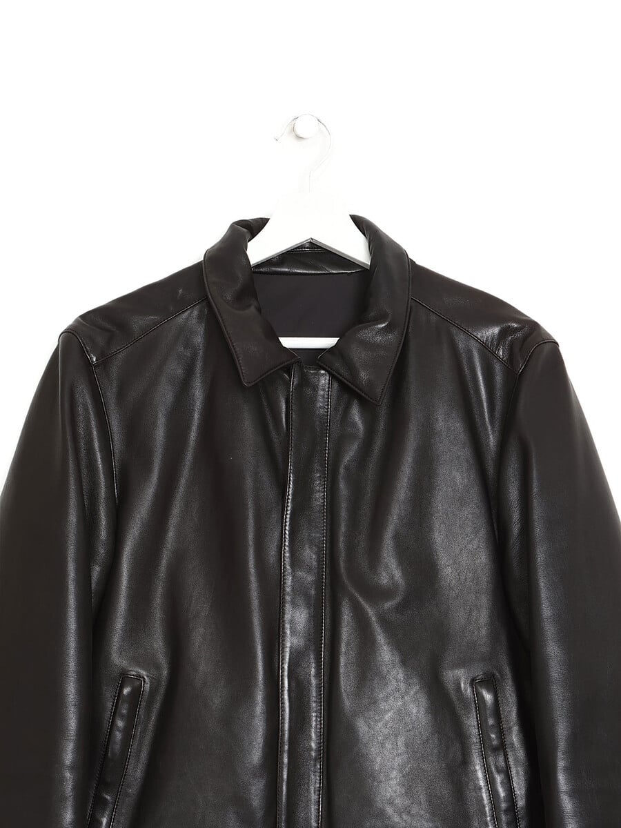 Veste réversible en cuir rembourrée de duvet de Prada. Elle présente une fermeture à glissière, un col de chemise et deux poches avant à boutons.