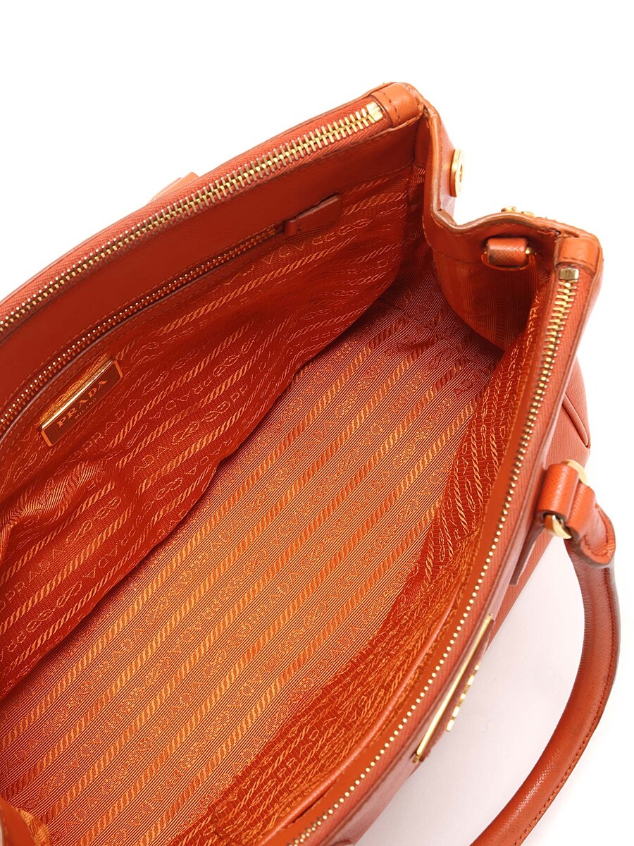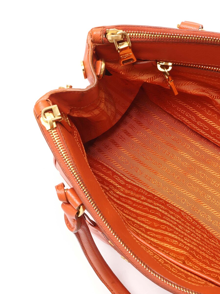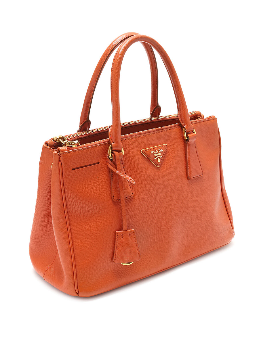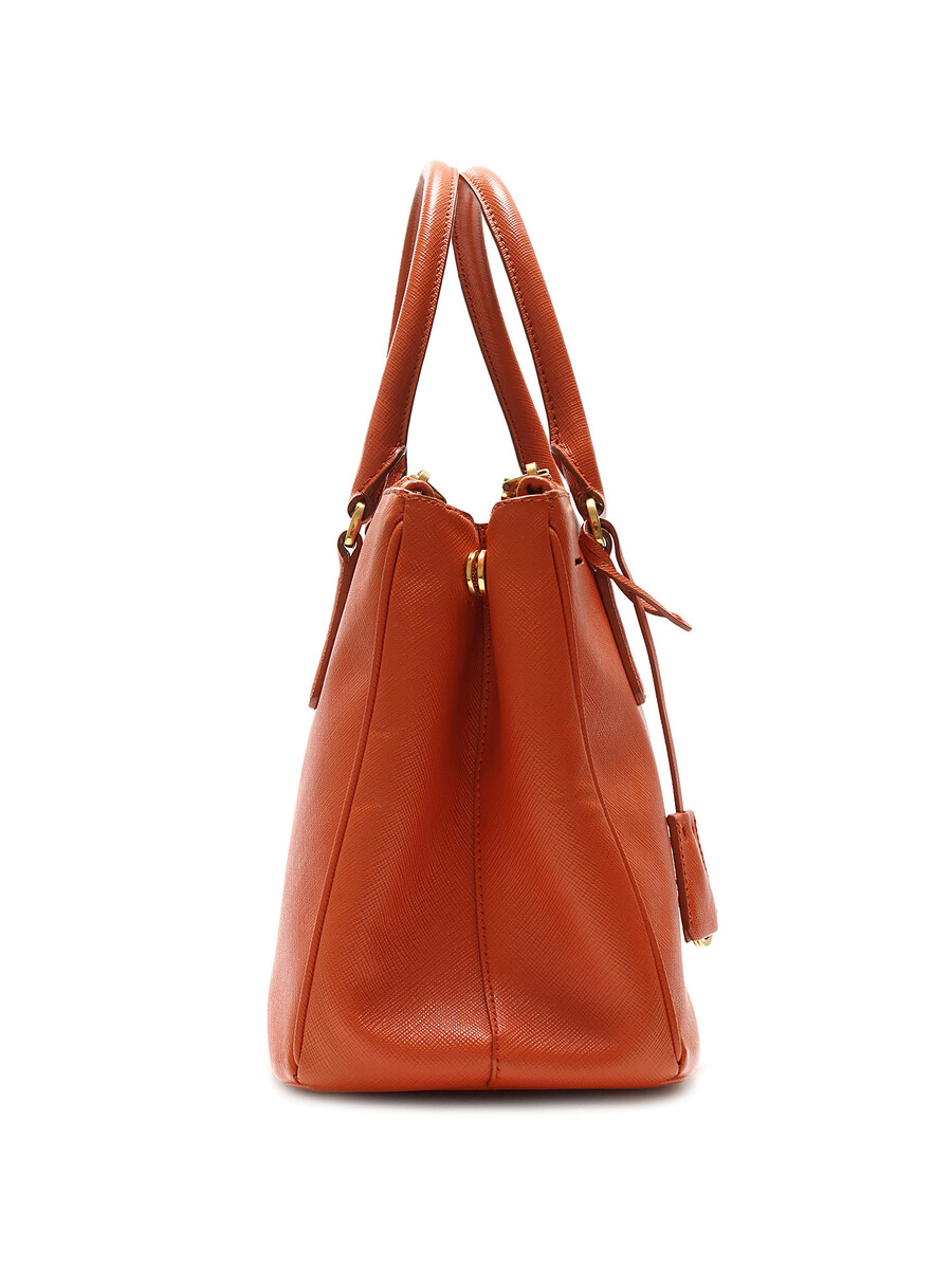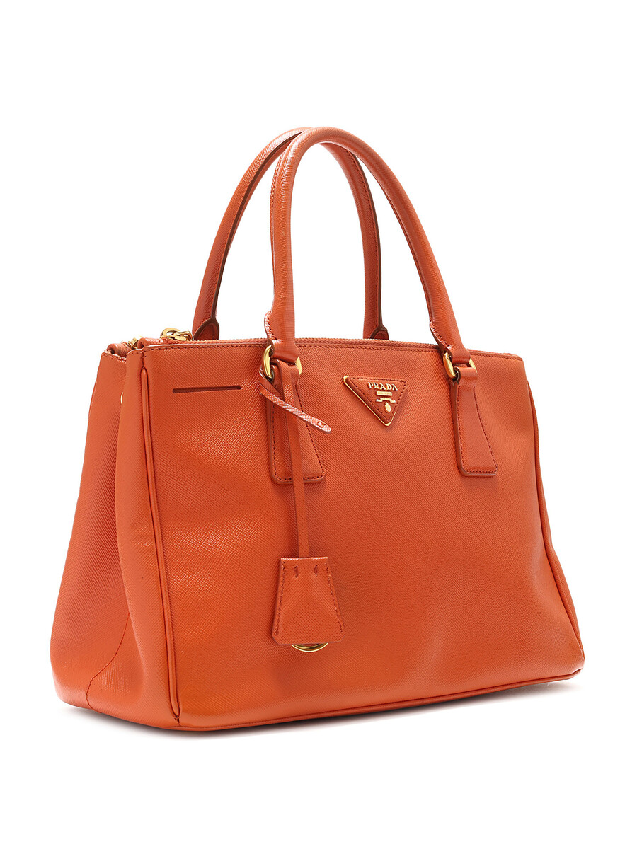 Sac fourre-tout en cuir saffiano couleur mandarine avec grain texturé. Quincaillerie dorée. Livré avec une carte d'authenticité.