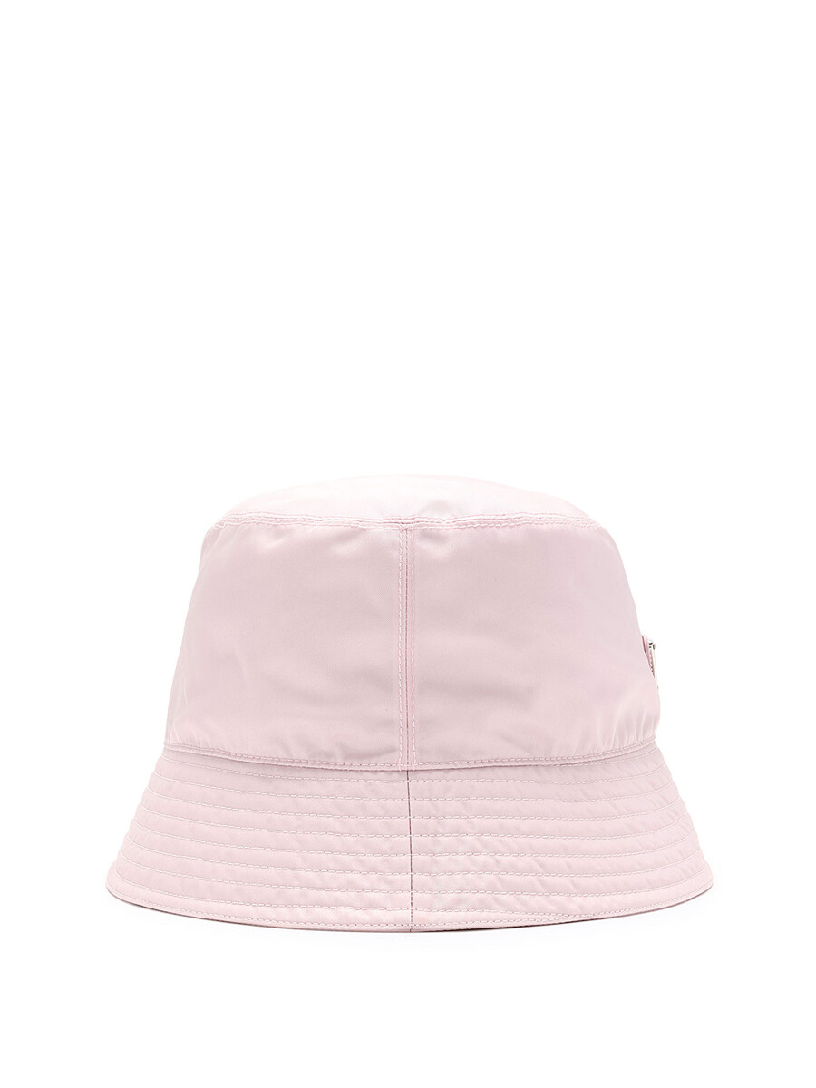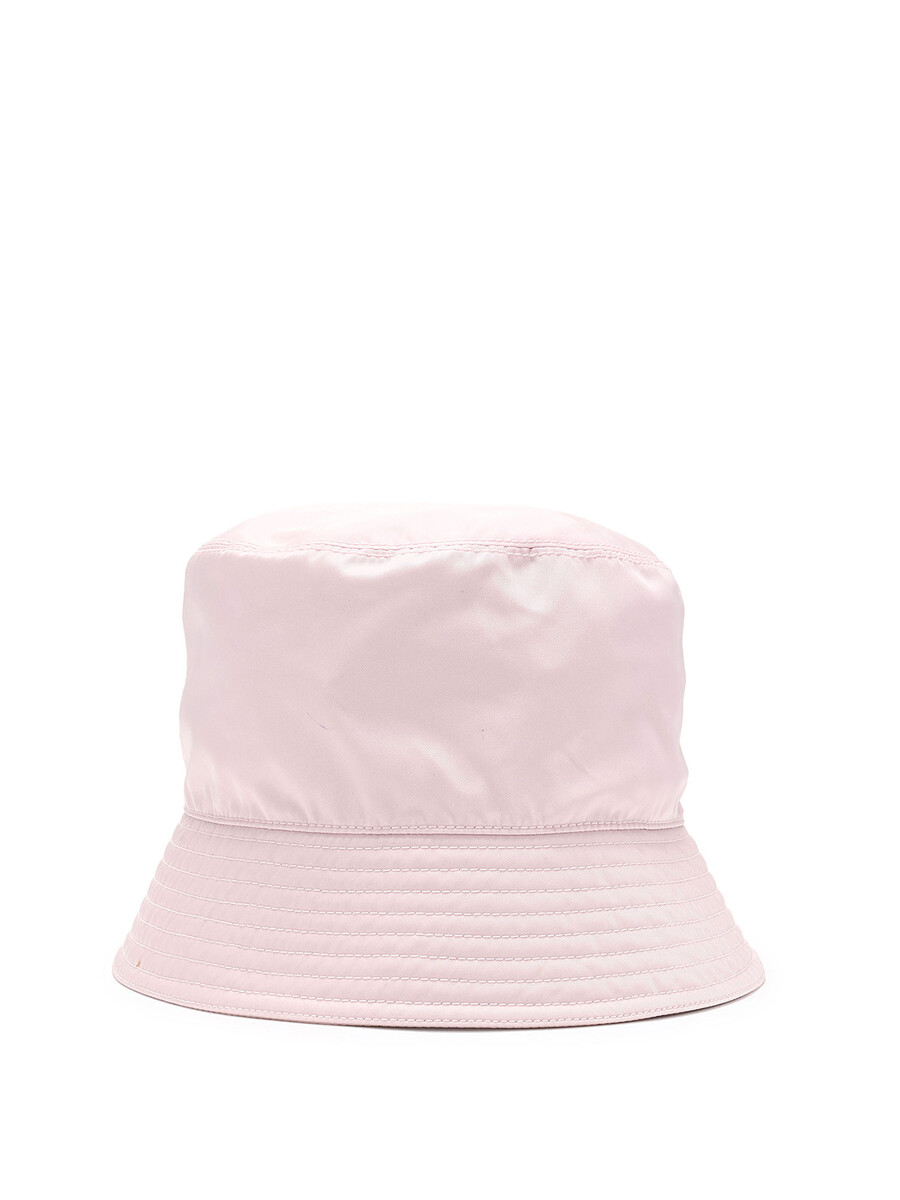 Chapeau bob rose avec coutures ton sur ton et écusson logo Prada à l'avant.