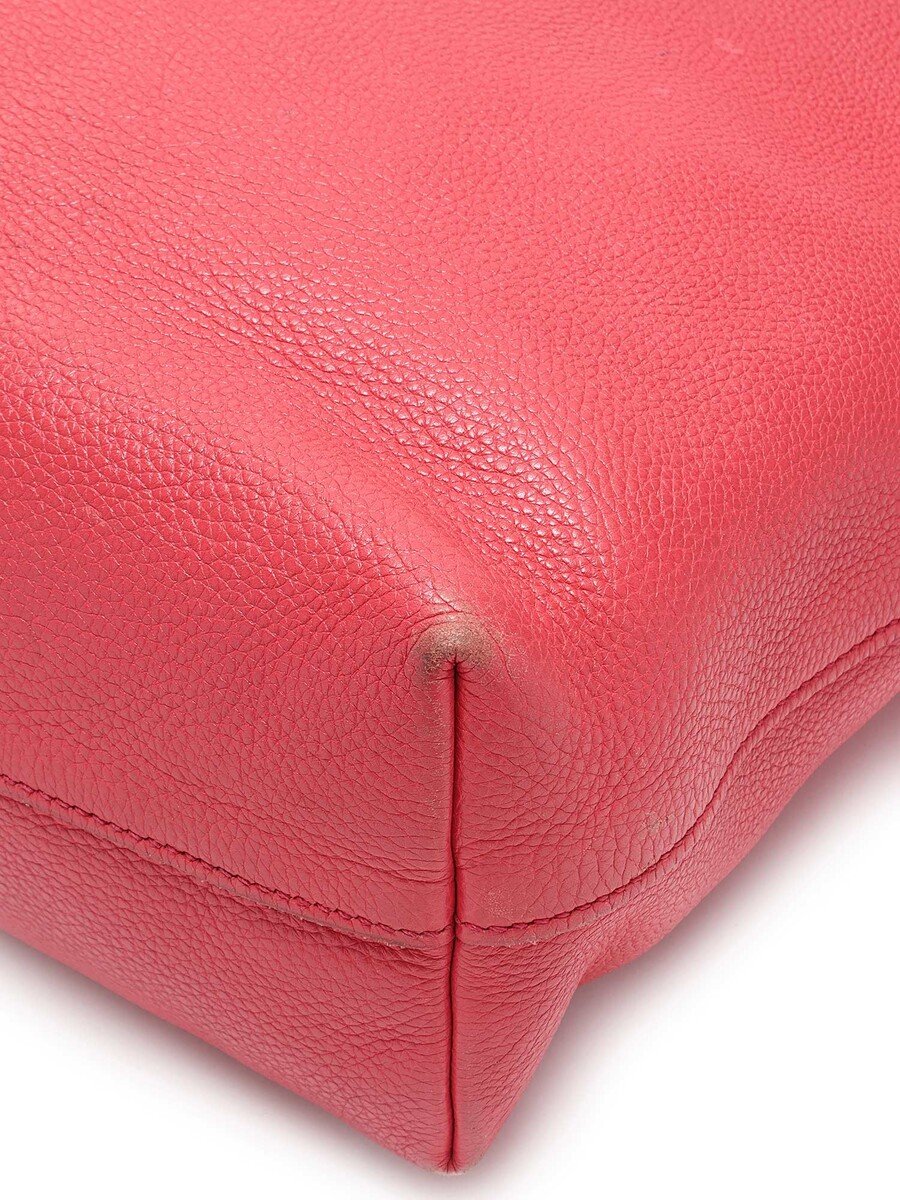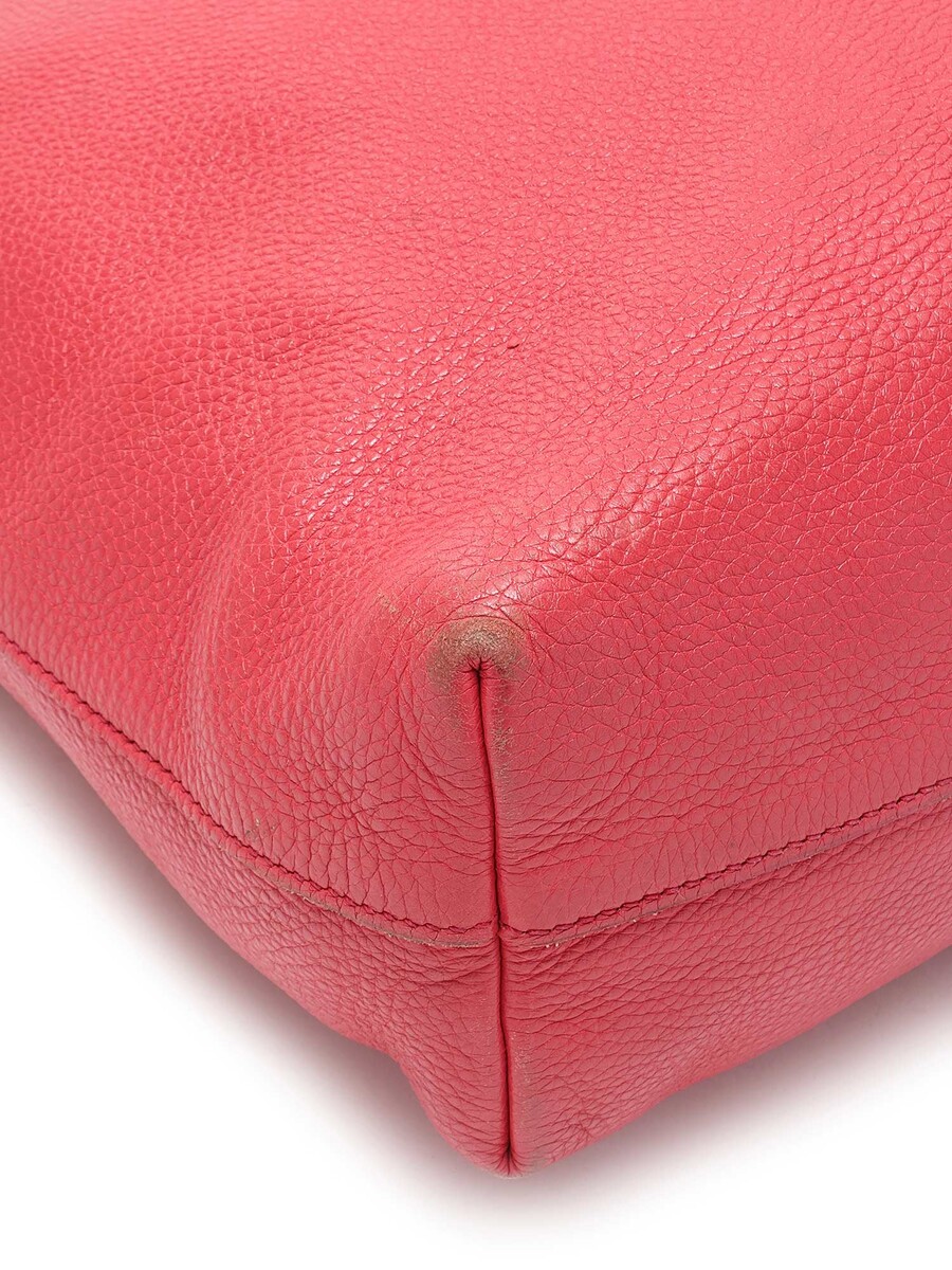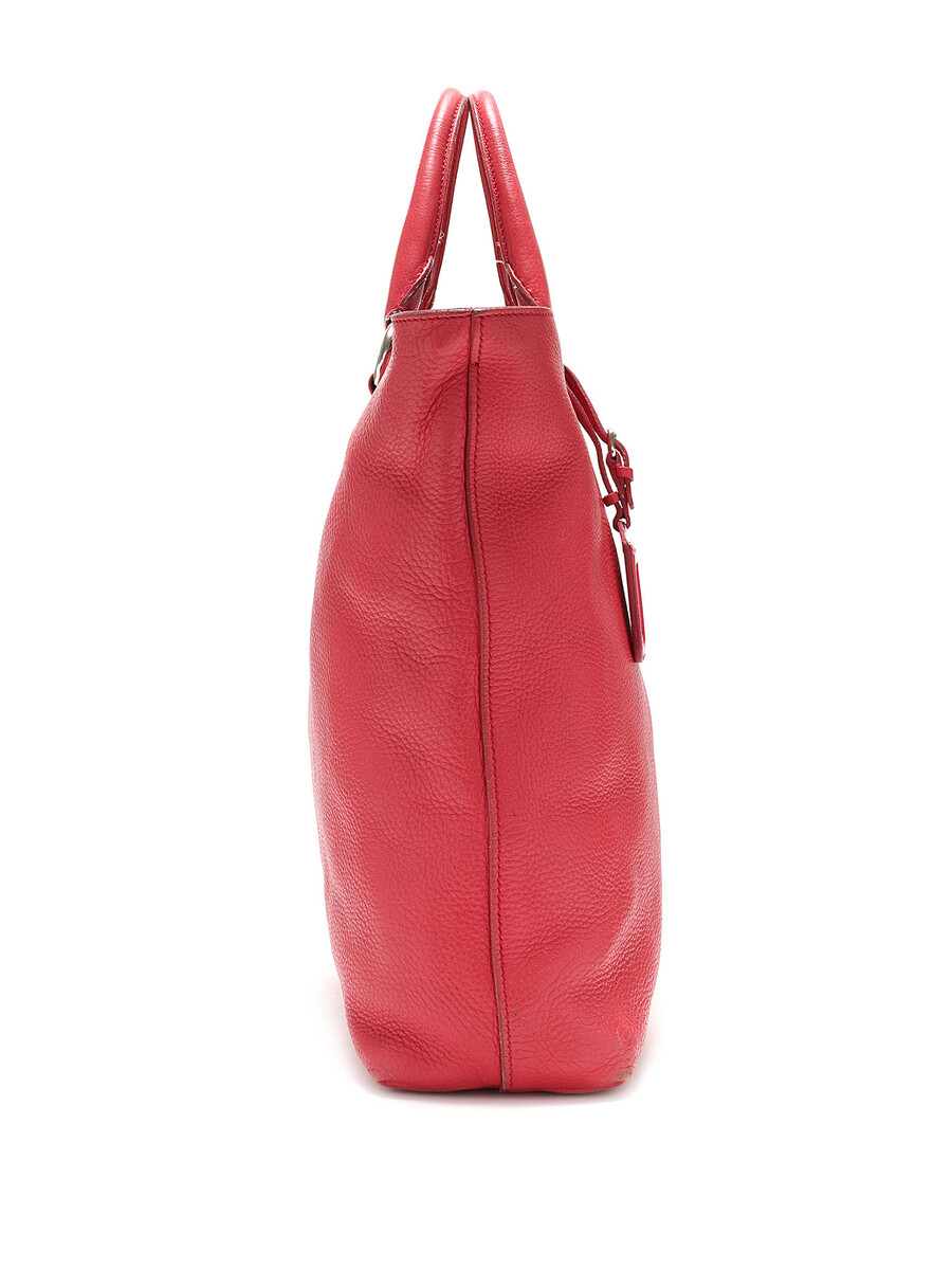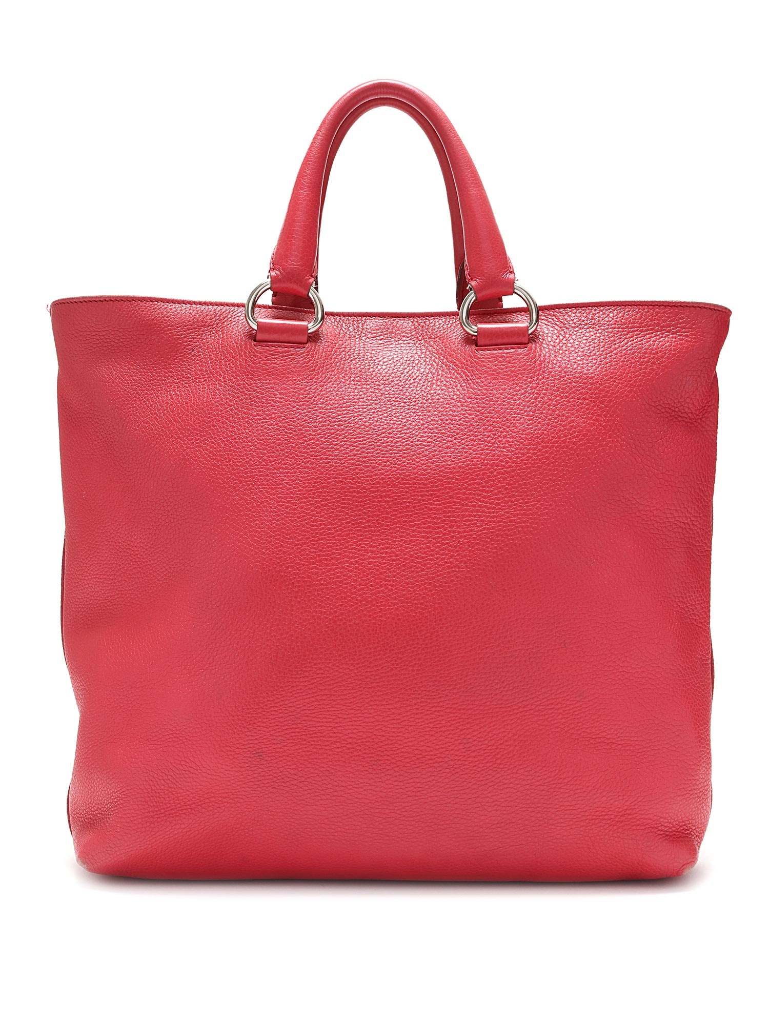 Sac cabas en cuir grainé rouge. Fermeture à glissière. Poignées doubles arrondies en cuir. Quincaillerie argentée. Avec dust bag.