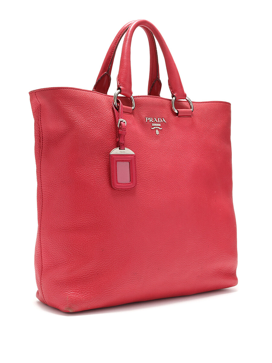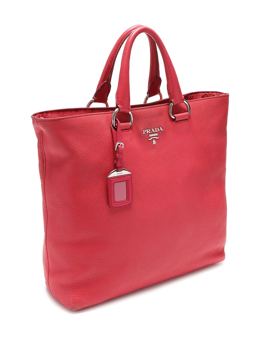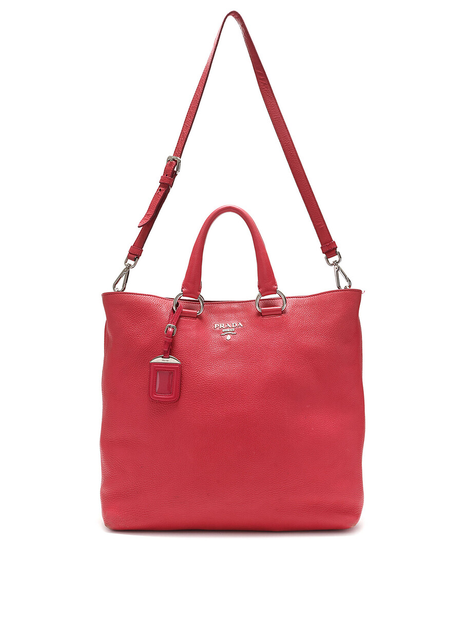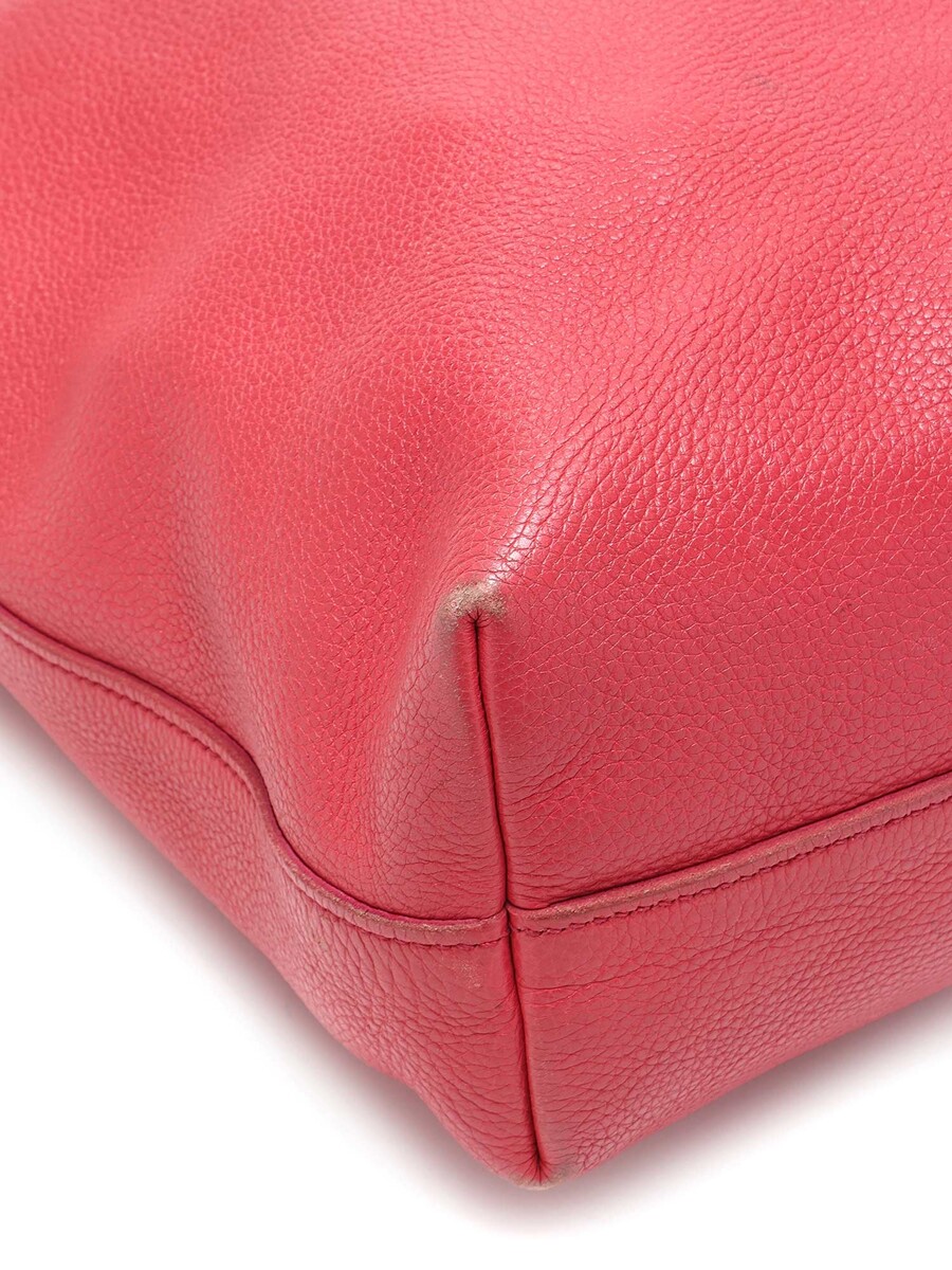 Sac cabas en cuir grainé rouge. Fermeture à glissière. Poignées doubles arrondies en cuir. Quincaillerie argentée. Avec dust bag.