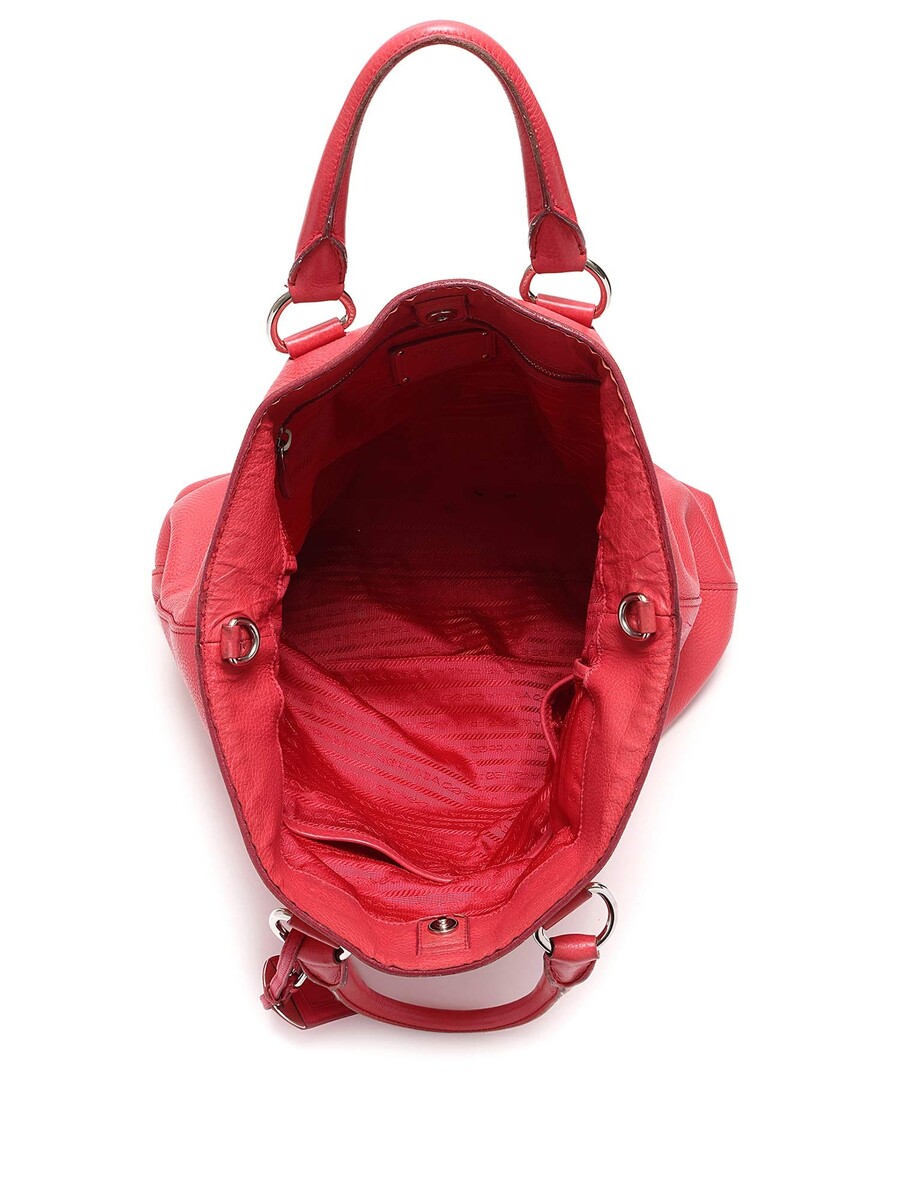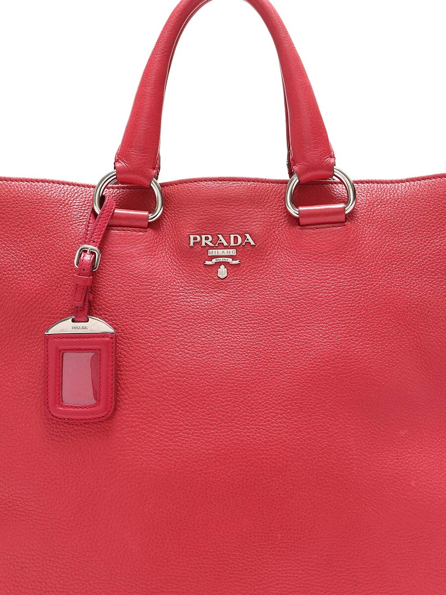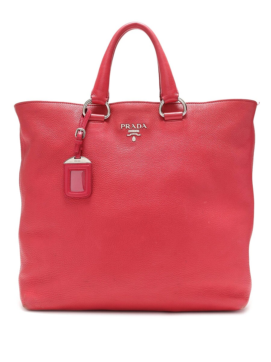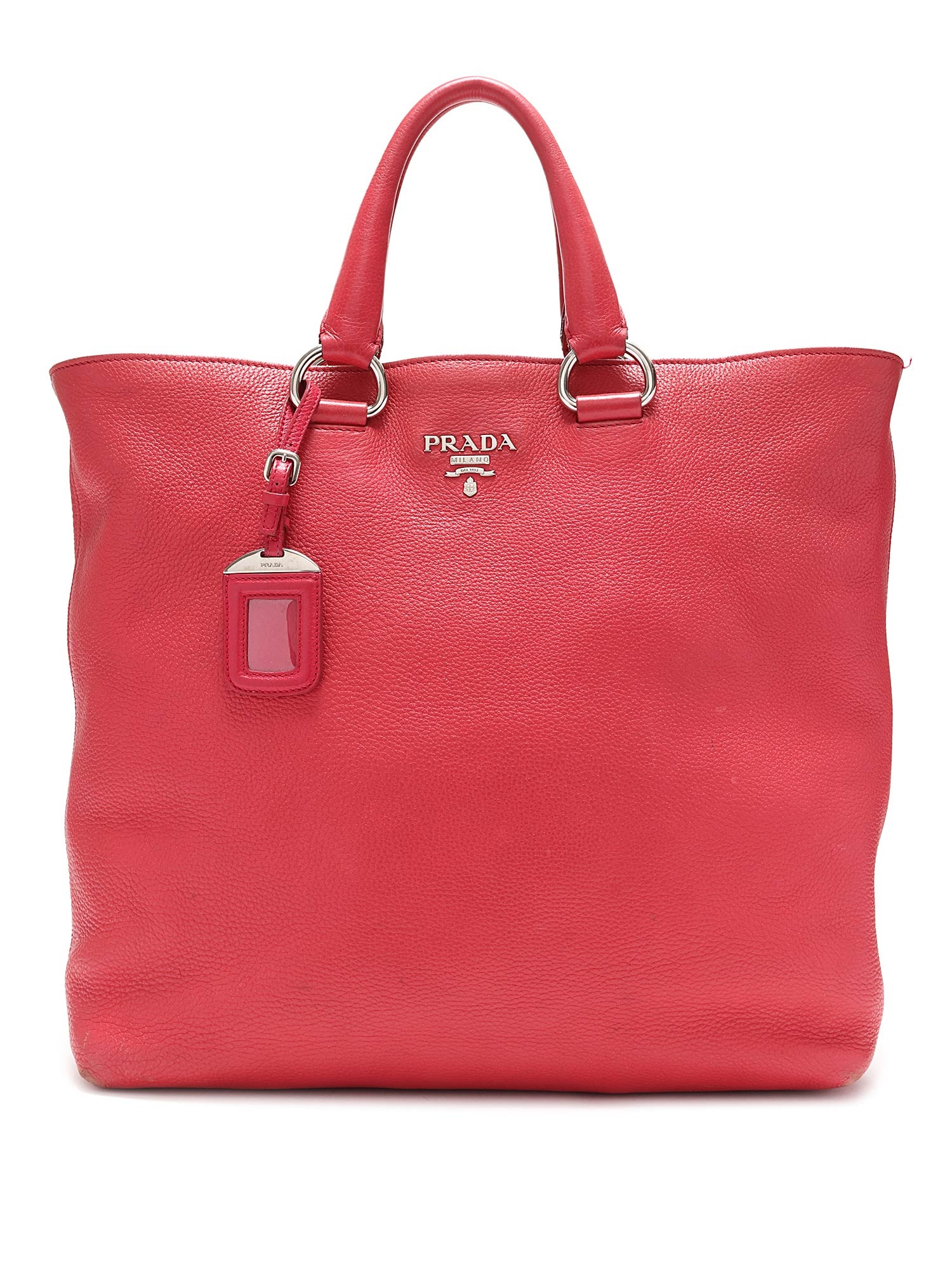 Sac cabas en cuir grainé rouge. Fermeture à glissière. Poignées doubles arrondies en cuir. Quincaillerie argentée. Avec dust bag.