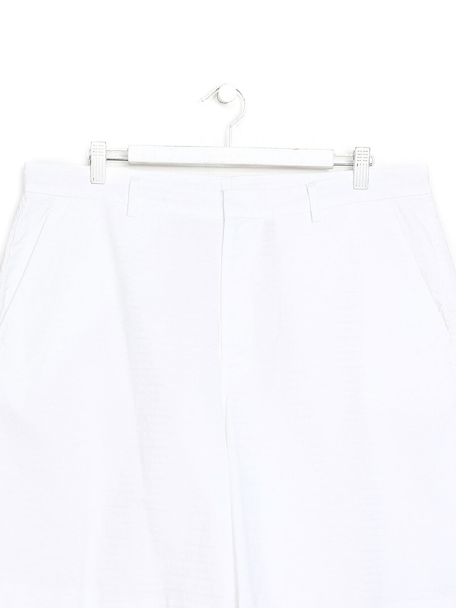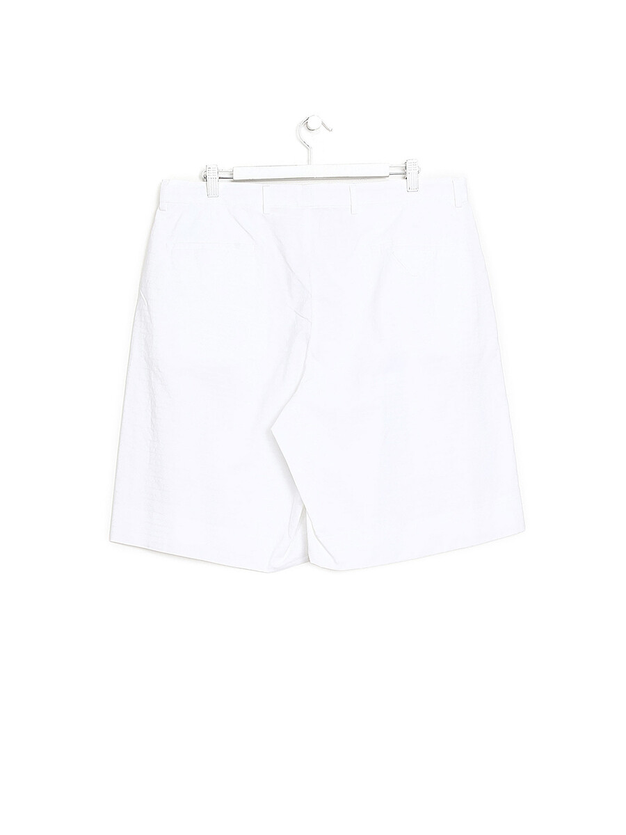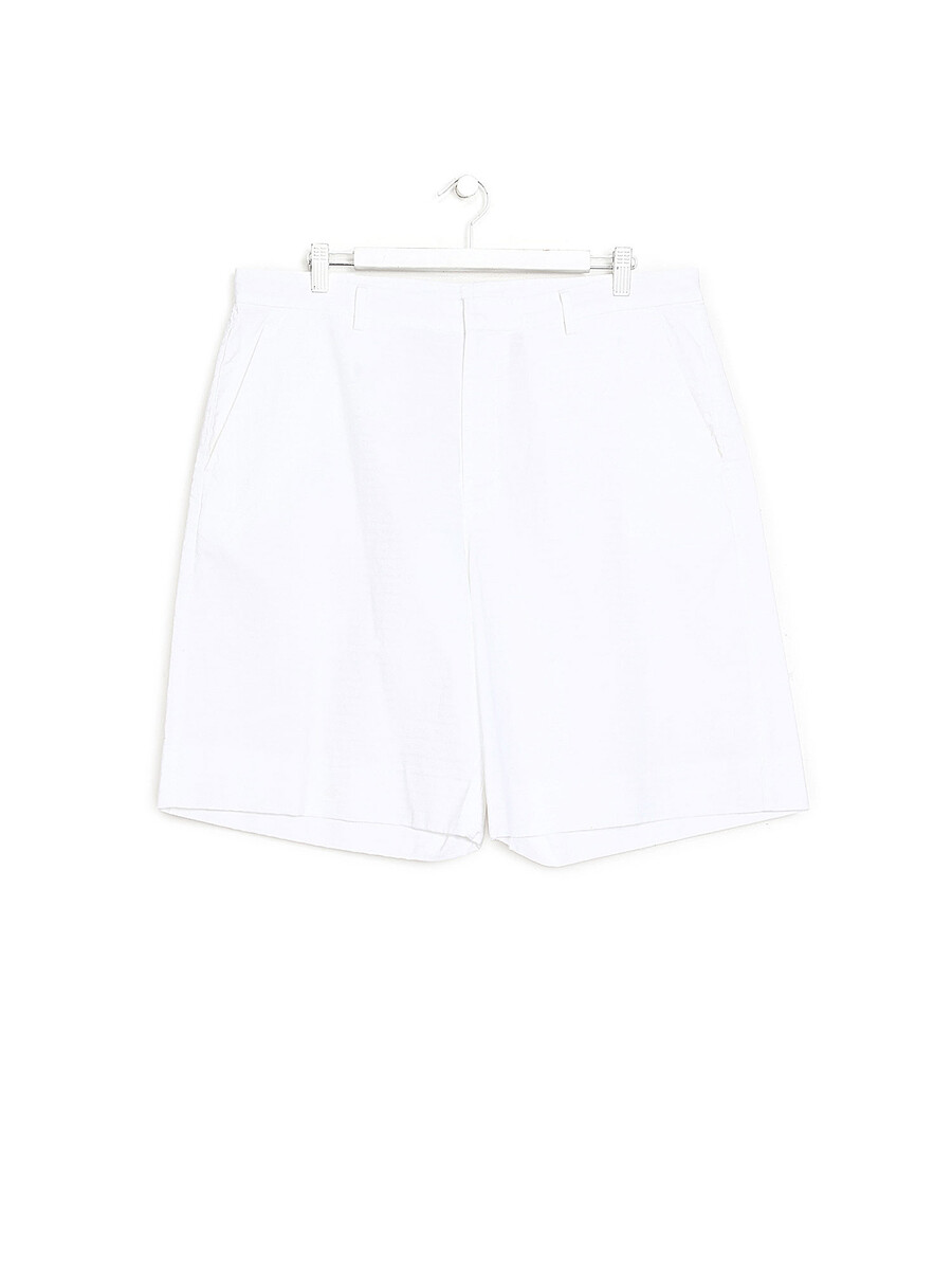 Shorts en coton blancs. Fermeture éclair frontale avec crochet et barre. Poches latérales.