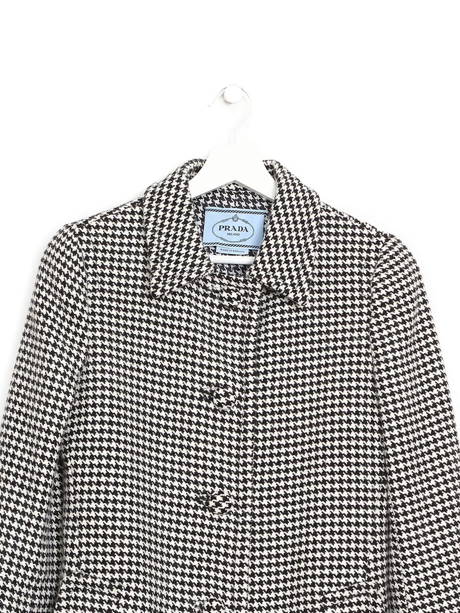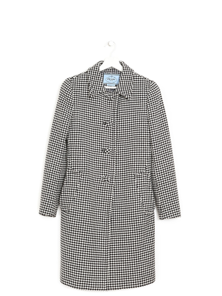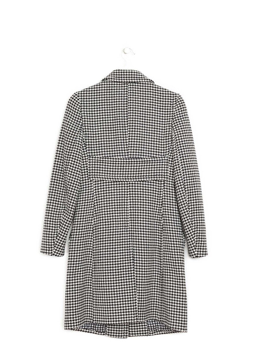 Manteau à manches longues avec motif pied-de-poule noir et blanc. Fermeture à boutons sur le devant. Col chemise. Poches à rabat. Fabriqué en laine mélangée luxueuse.