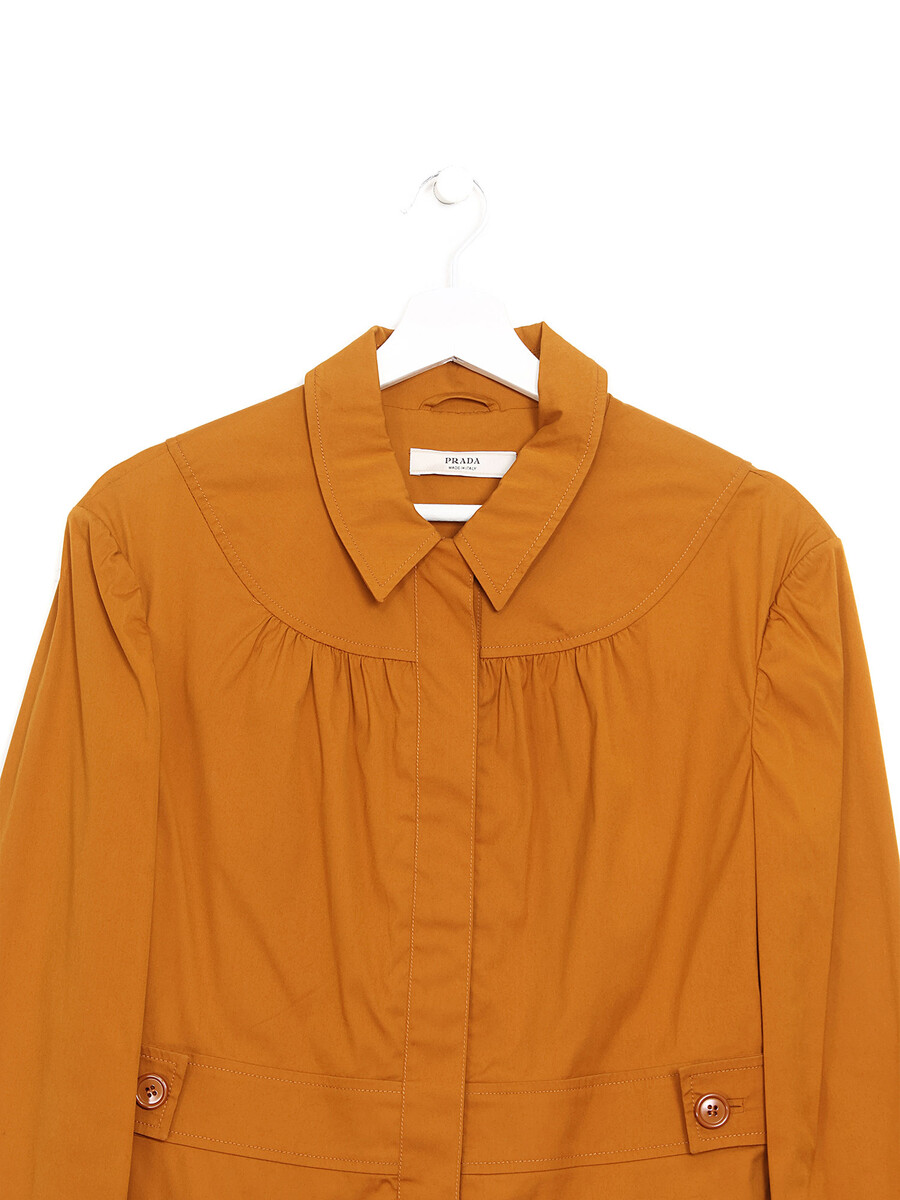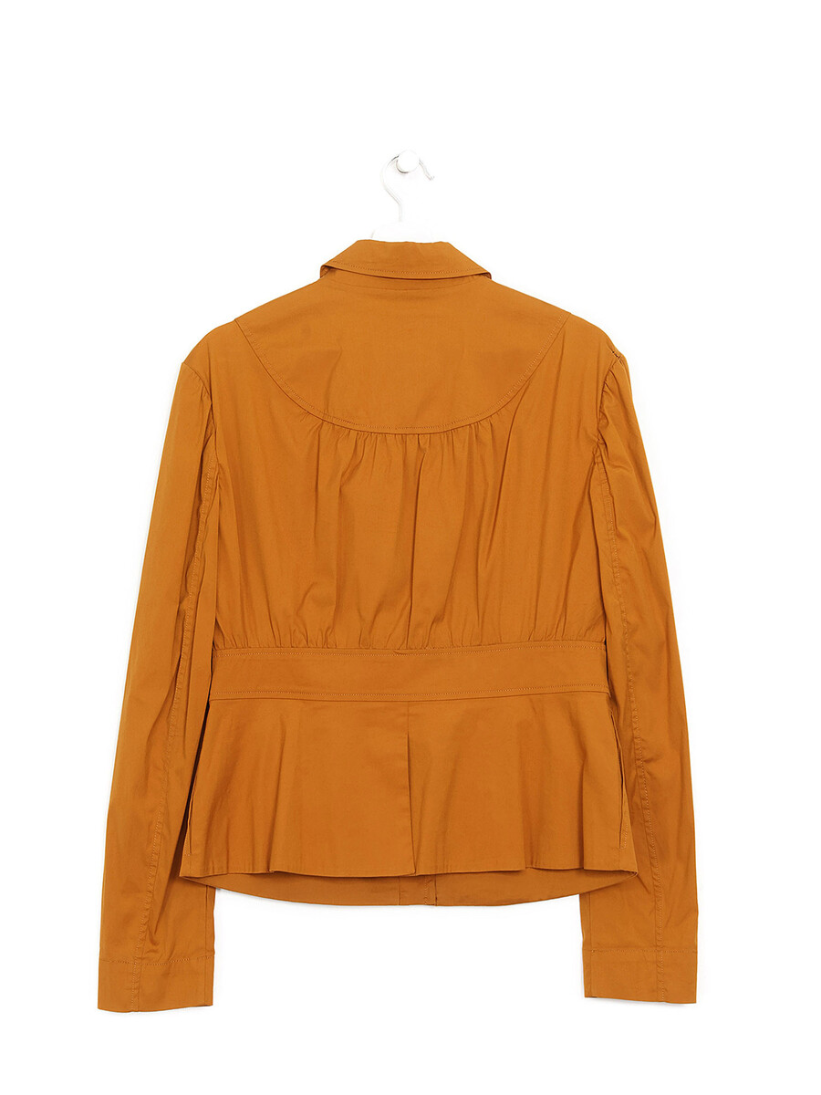 Haut orange à manches longues avec fermeture à glissière et col chemise.