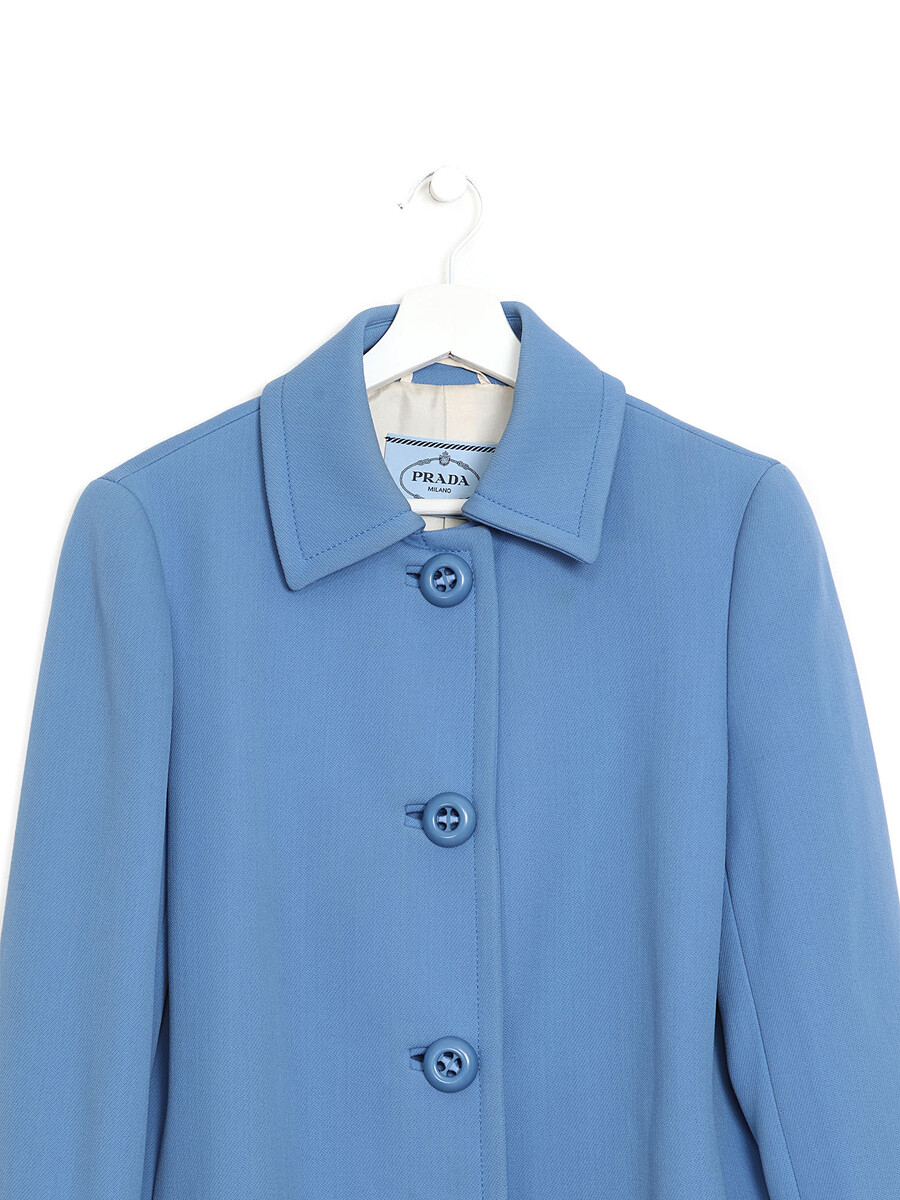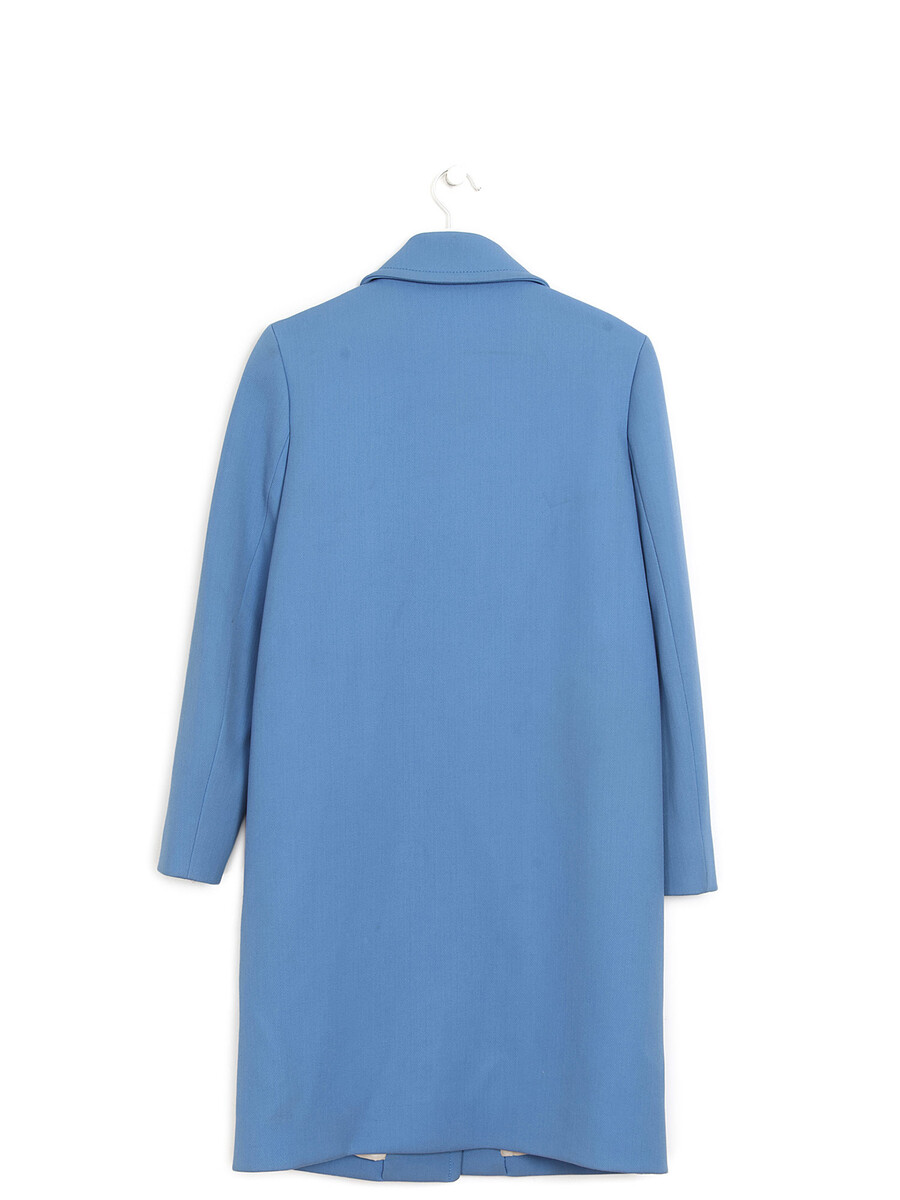Veste à manches longues bleue avec fermeture à boutons. Col chemise. Poches passepoilées.