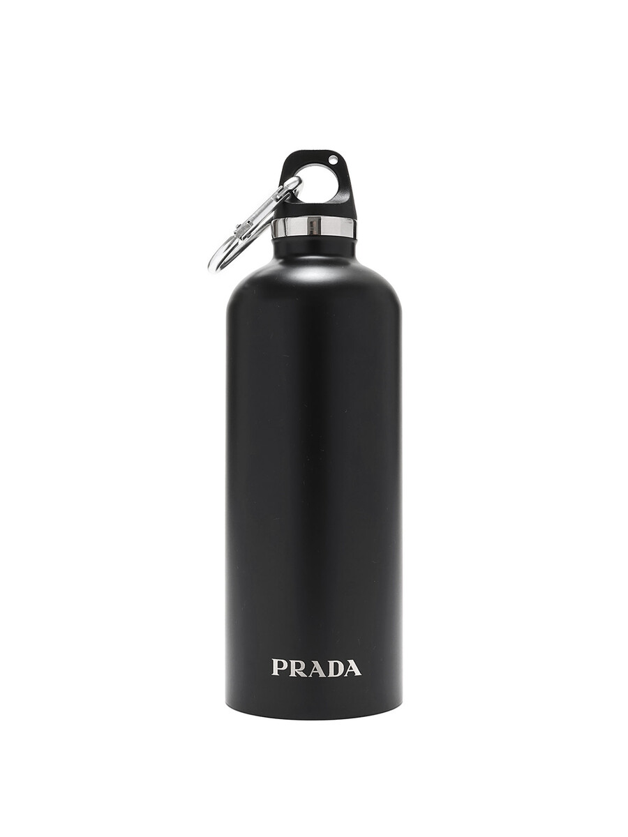 Bouteille en métal noir mat avec motif à logo. Avec boîte.
