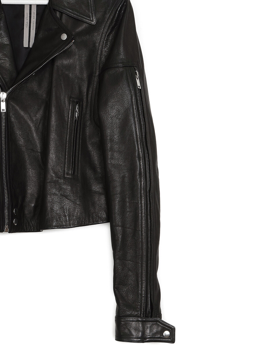 Veste de motard en cuir grainé noir Fermeture éclair asymétrique. Col à revers avec boutons-pression. Poches à zip.