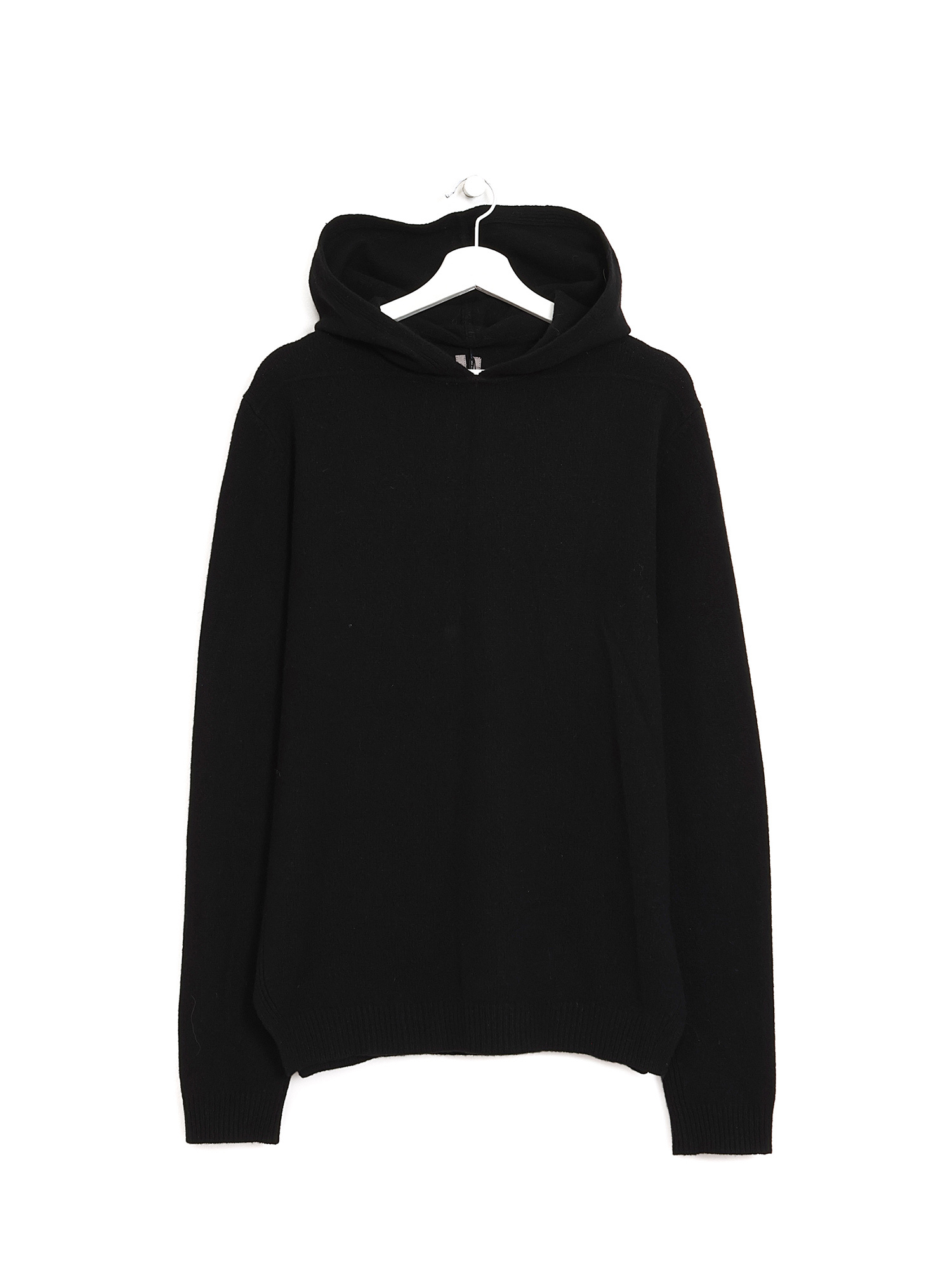 Hoodie à manches longues en cachemire noir. Coupe décontractée avec capuche à cordon de serrage. Poignets et ourlet côtelés. Texture douce et luxueuse.