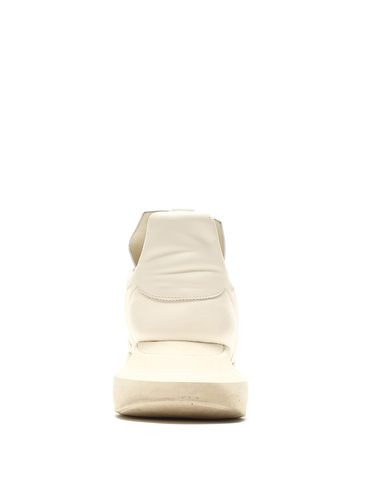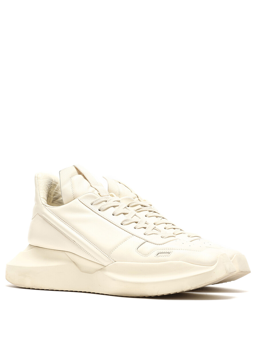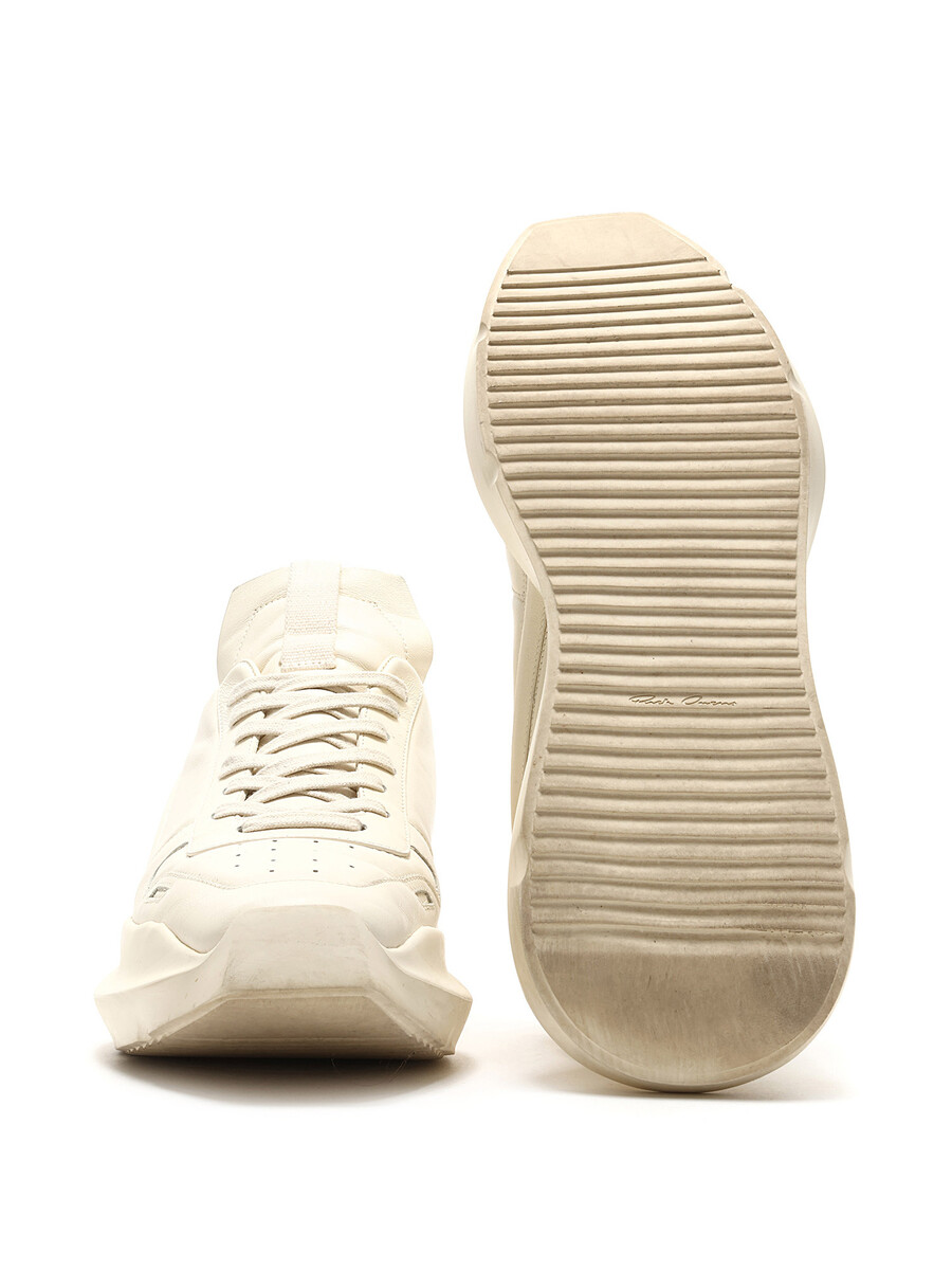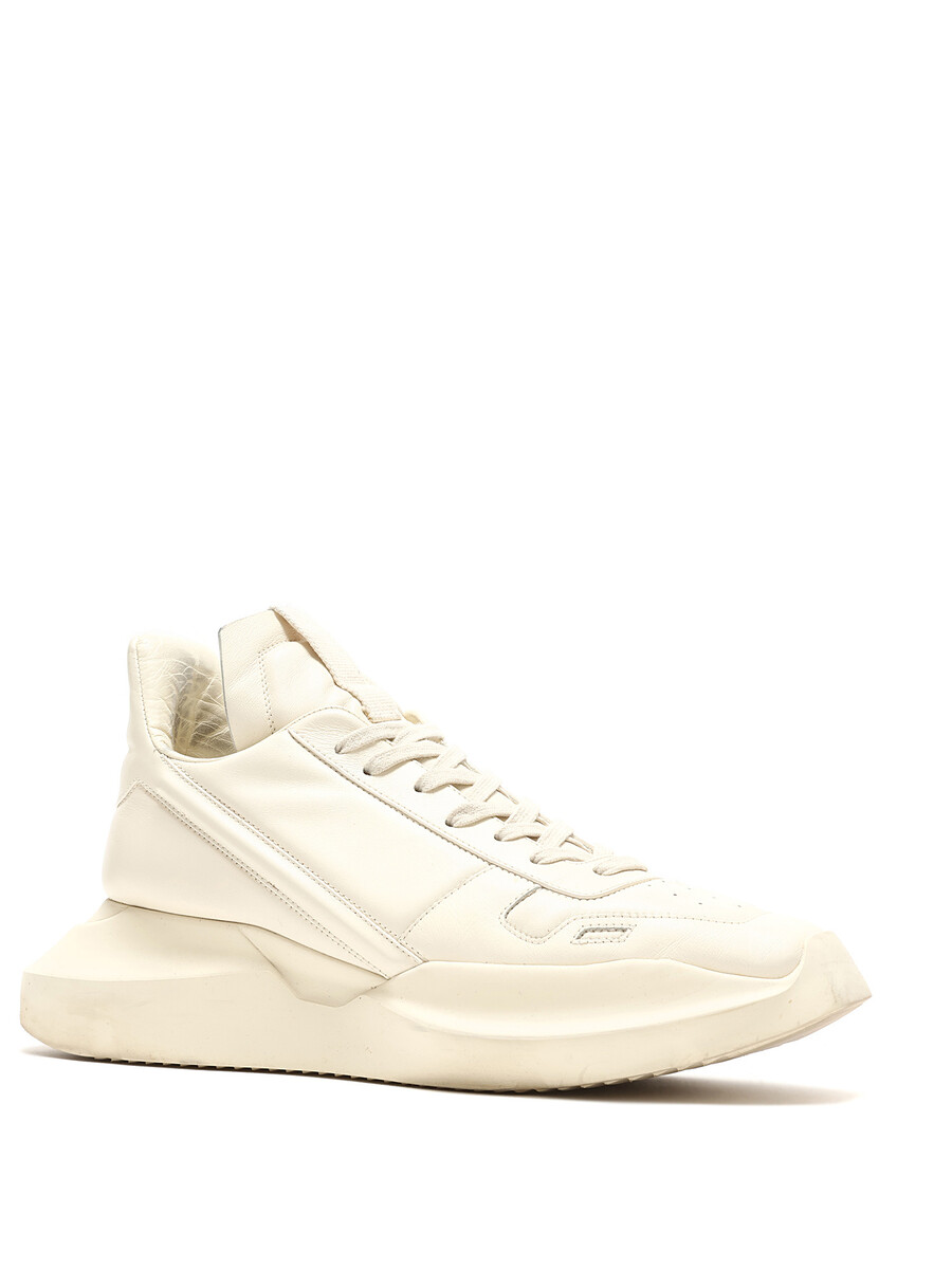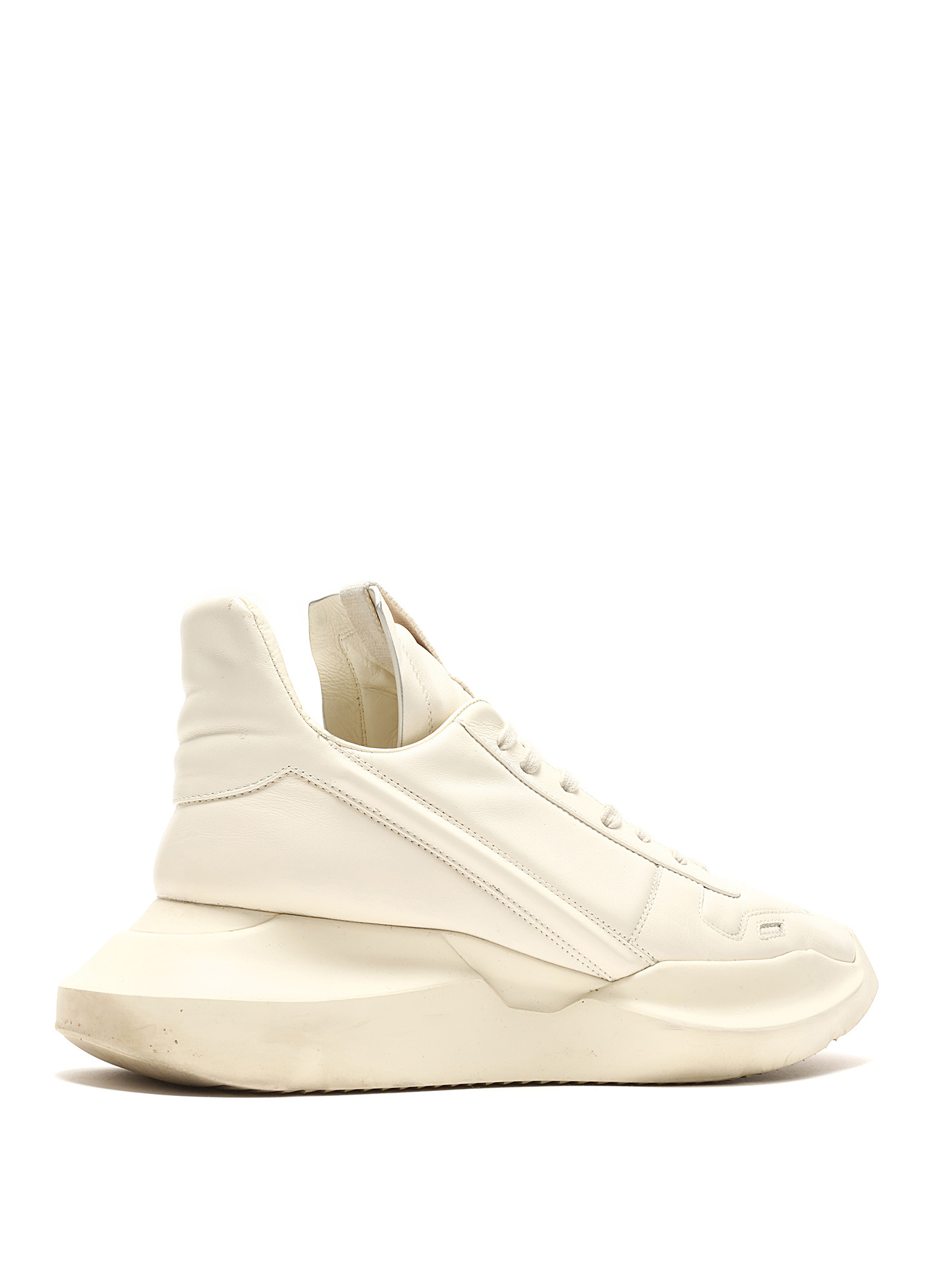 Sneakers montantes en cuir blanc avec un design perforé. Fermeture à lacets, bout rond et semelle en caoutchouc.