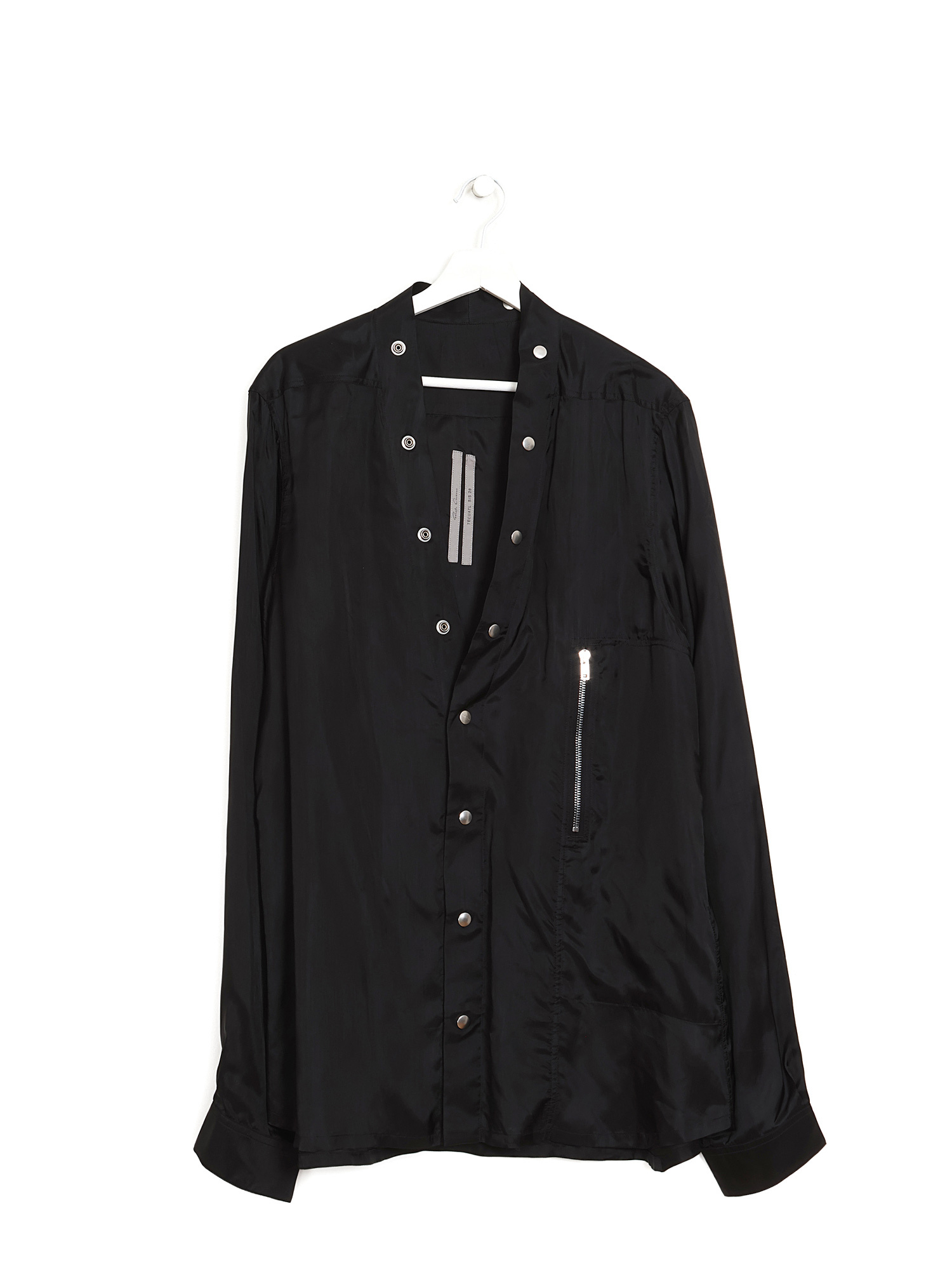 Chemise à manches longues en tissu transparent noir. Fermeture boutonnée à l'avant. Silhouette légère et fluide.