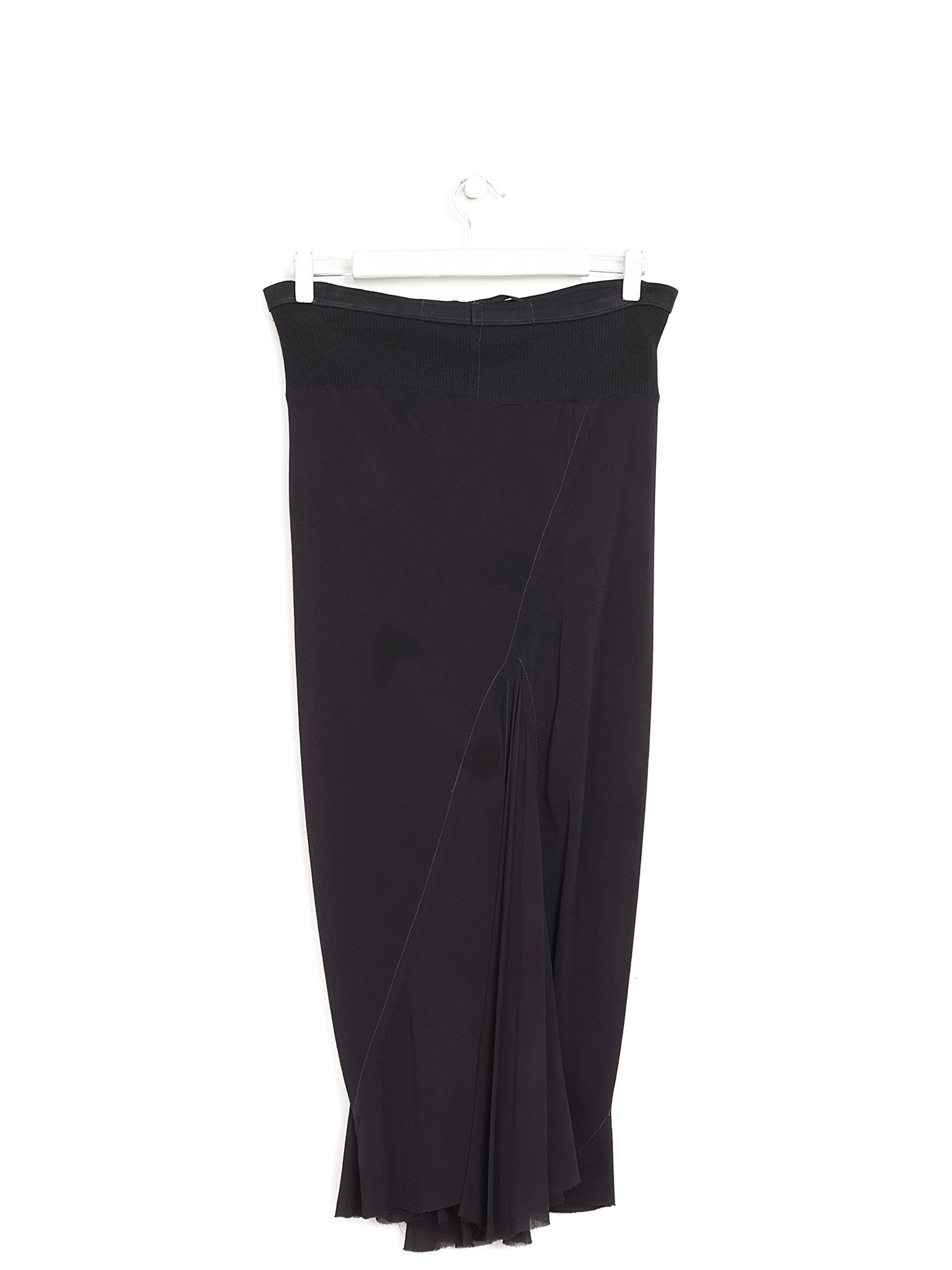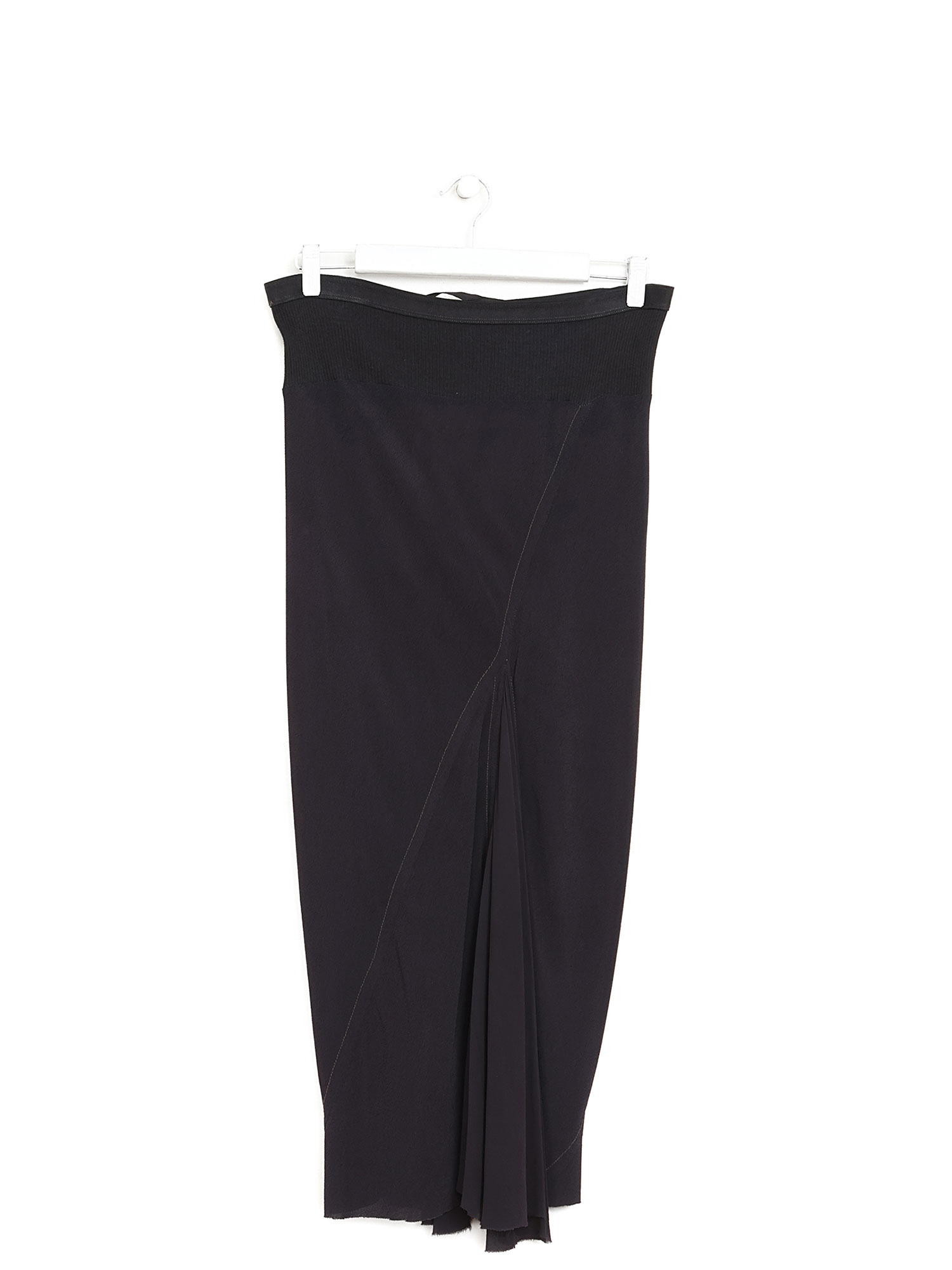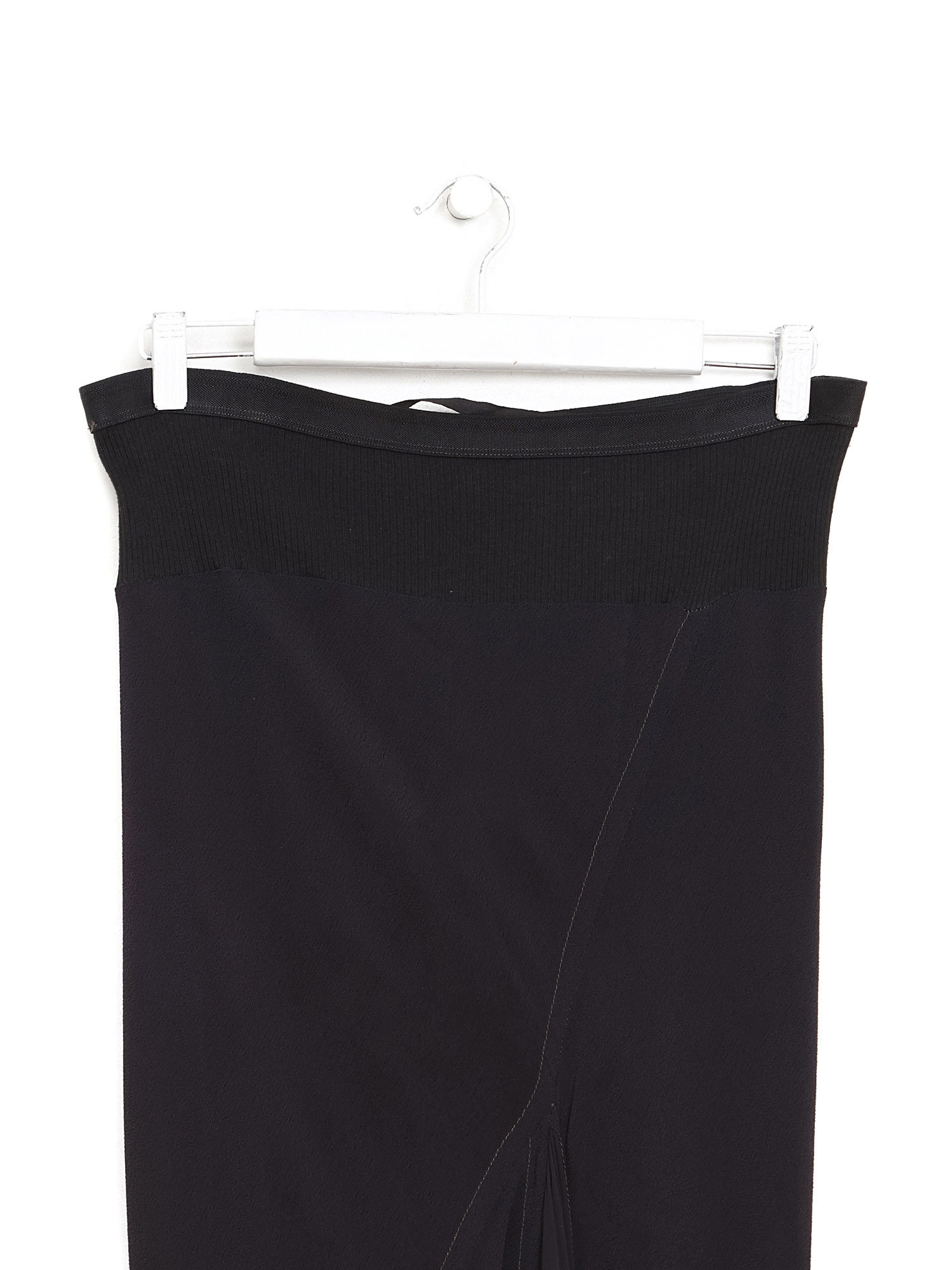 Jupe midi à fronces en noir. Taille élastique.