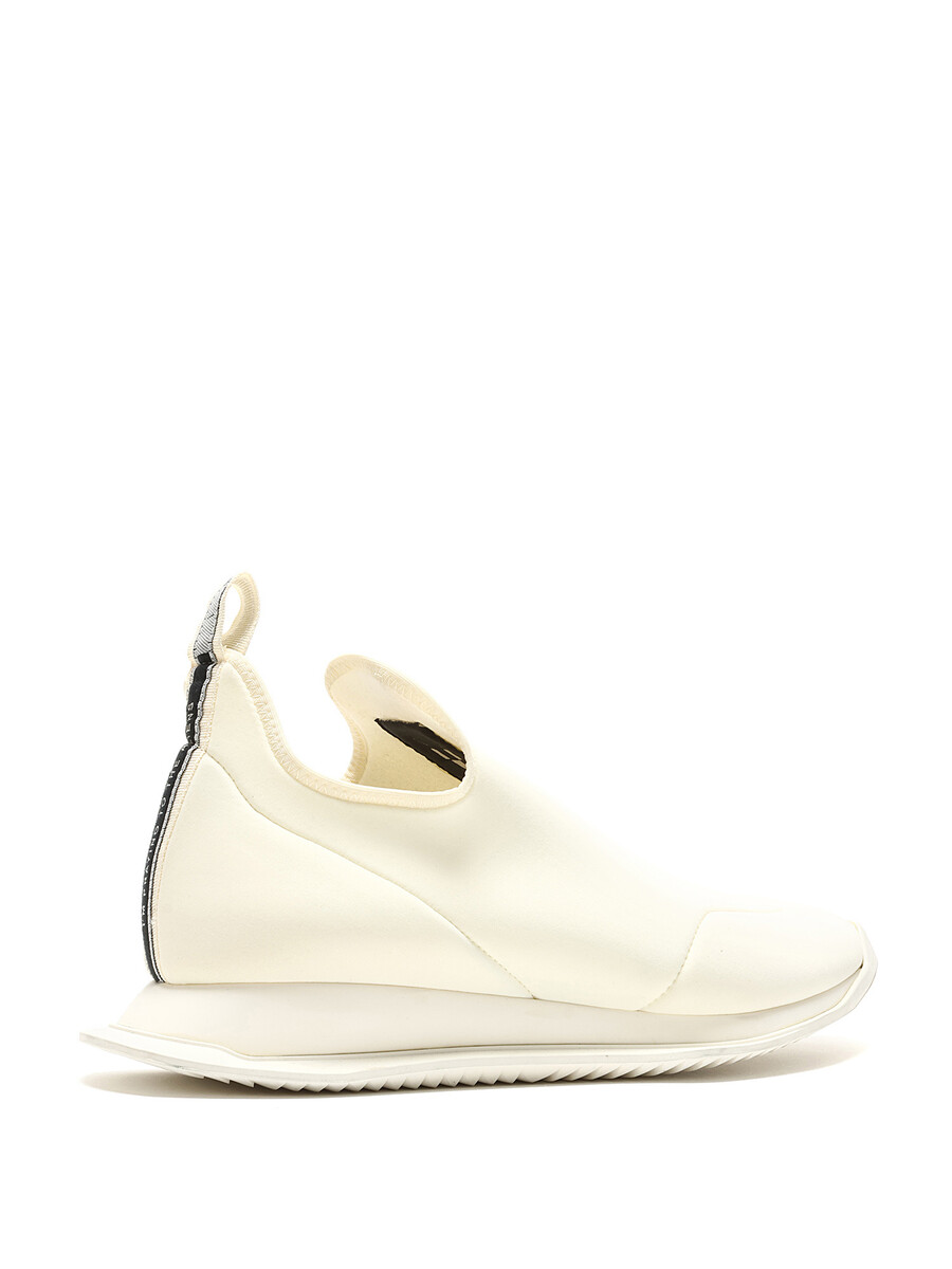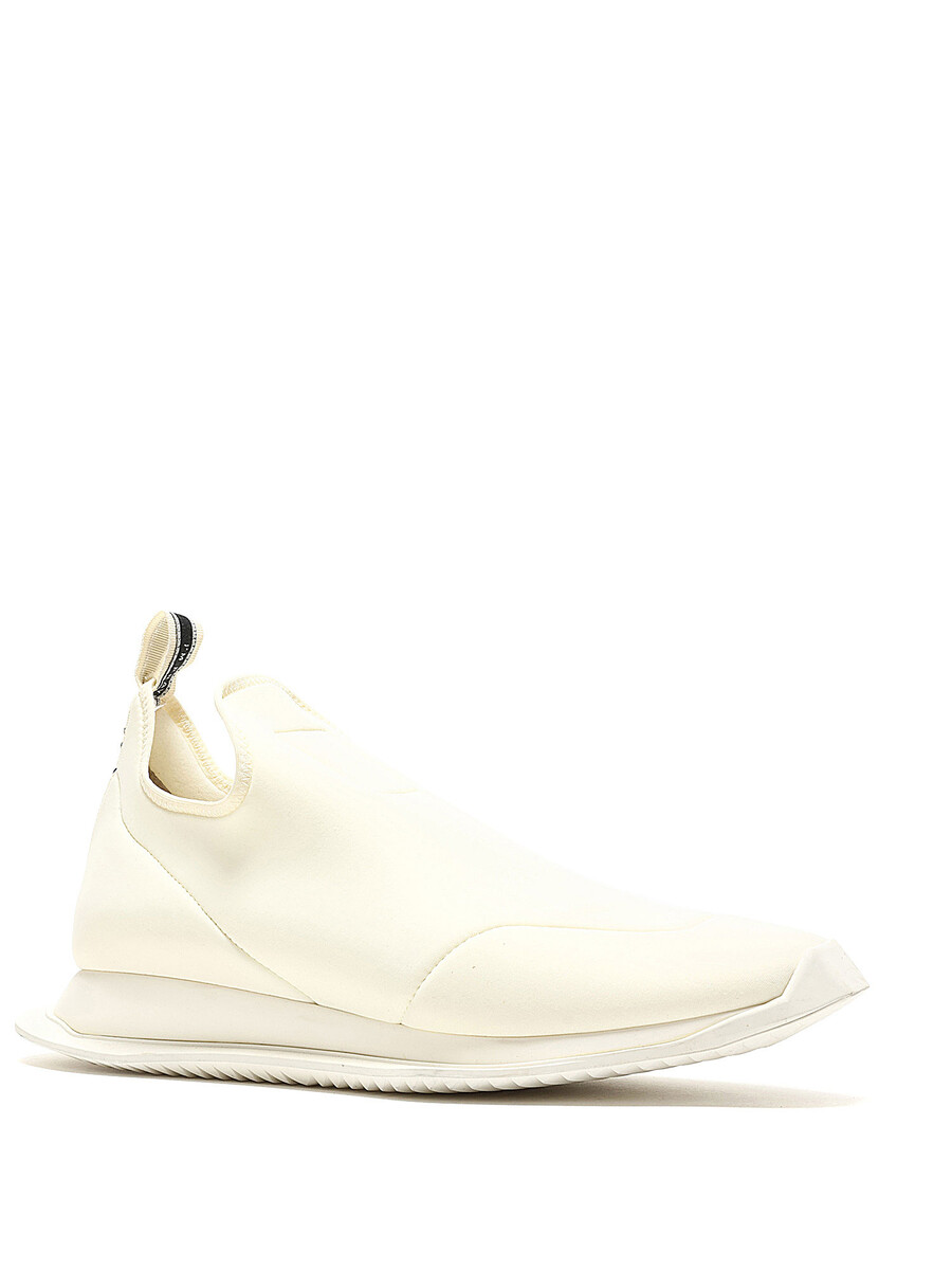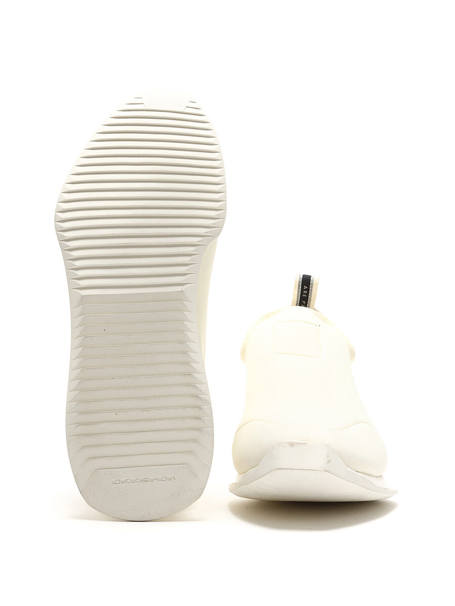 Baskets en cuir blanches immaculées à enfiler. Bout rond fermé. Semelle plate en caoutchouc.