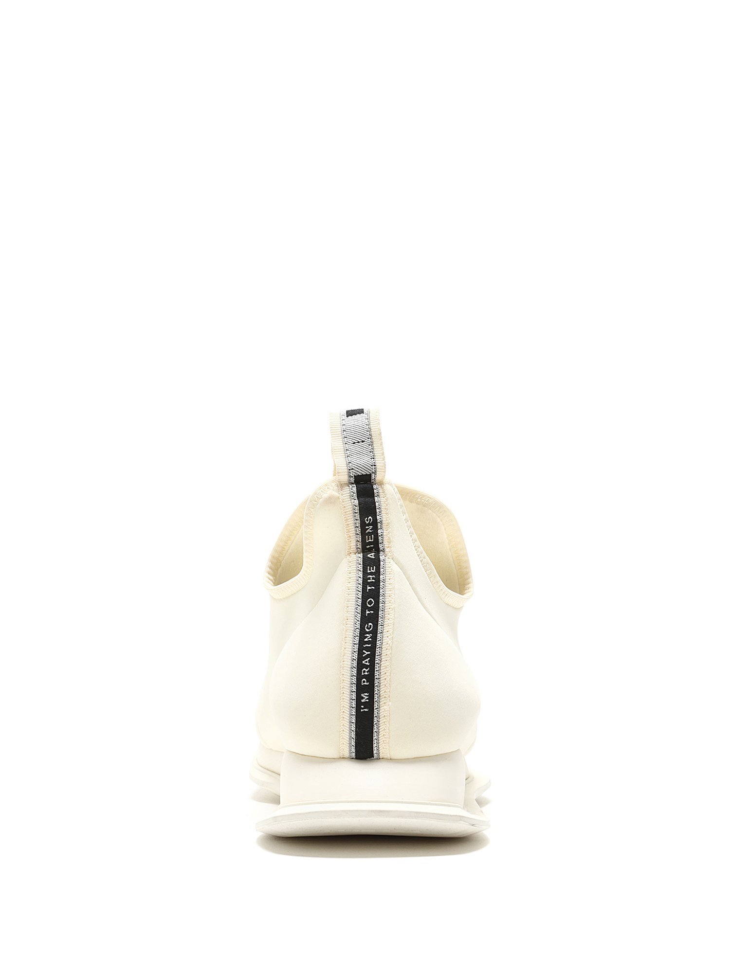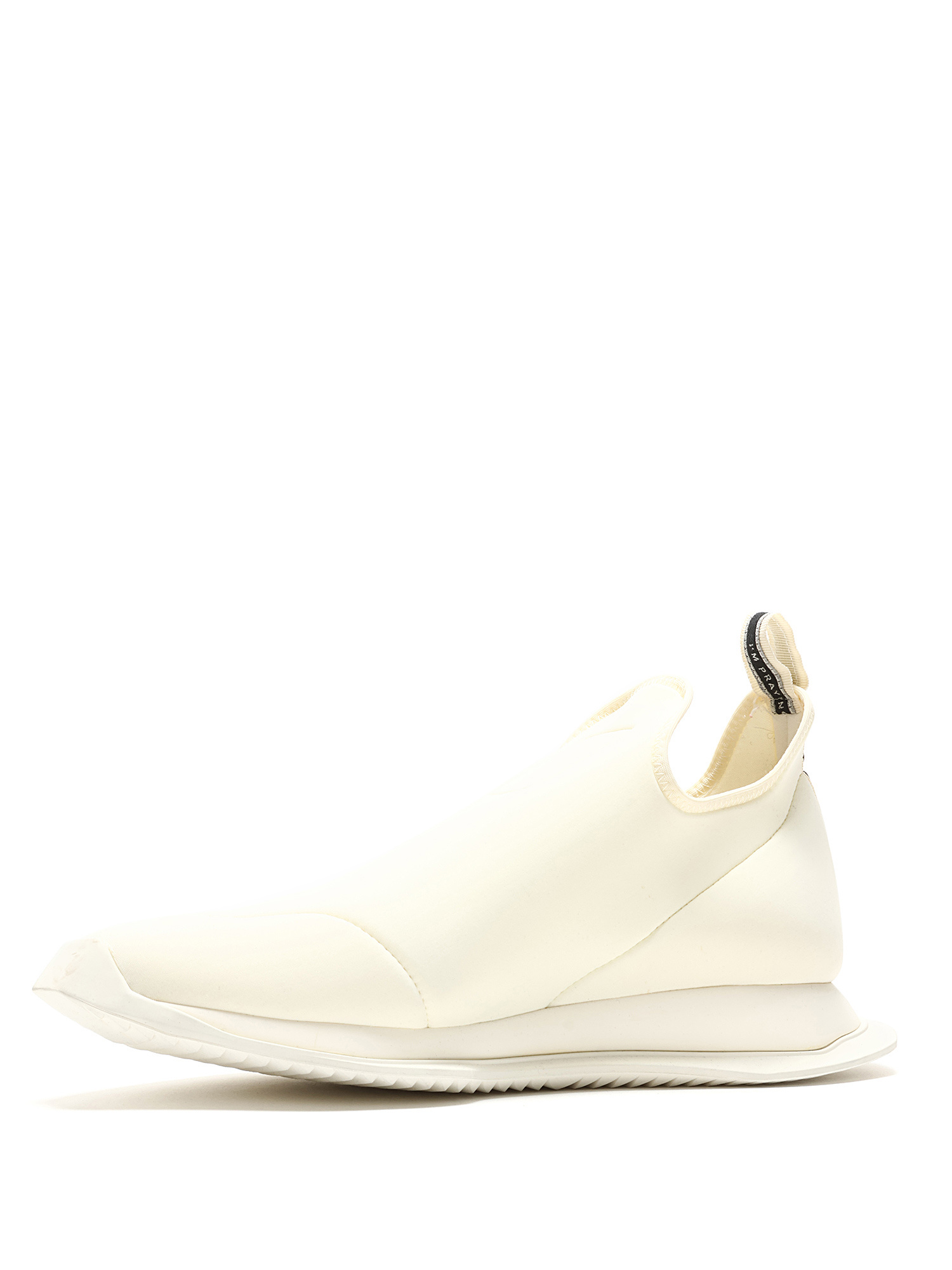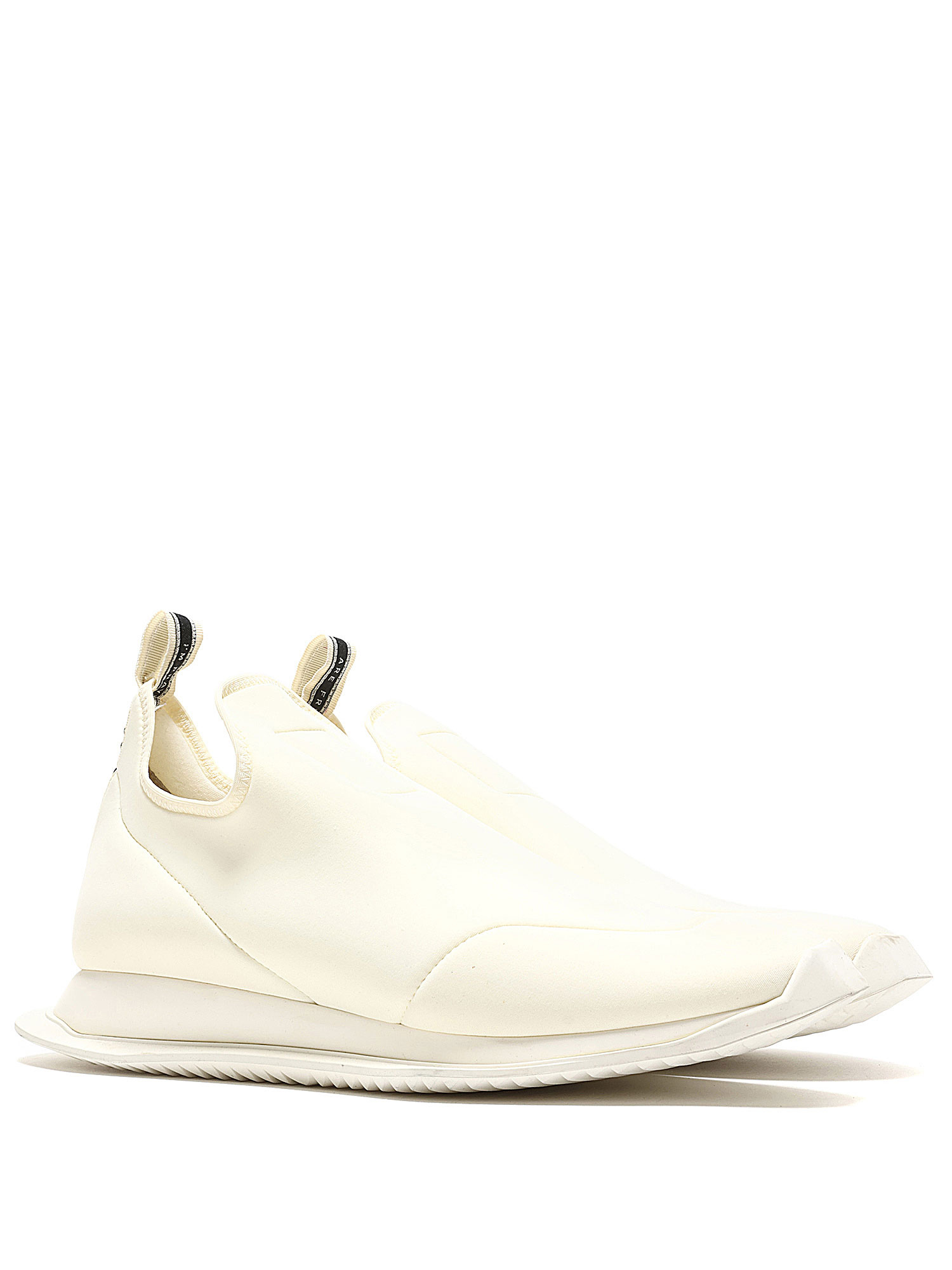 Baskets en cuir blanches immaculées à enfiler. Bout rond fermé. Semelle plate en caoutchouc.