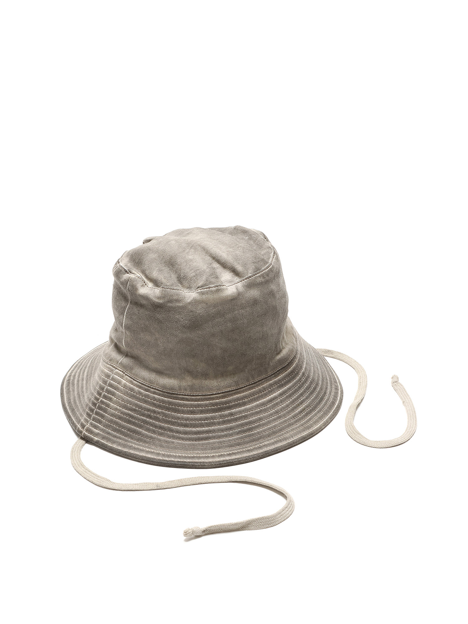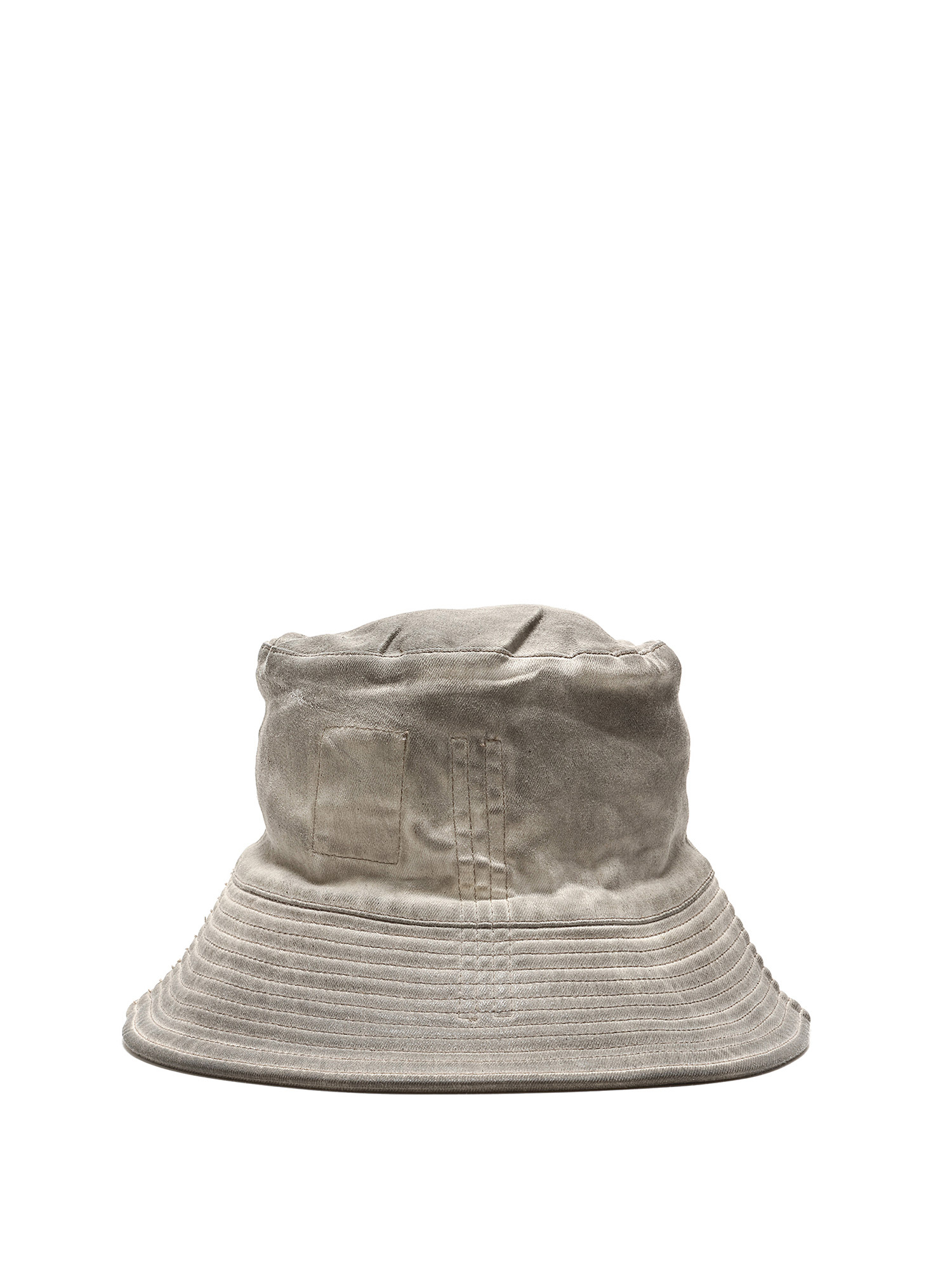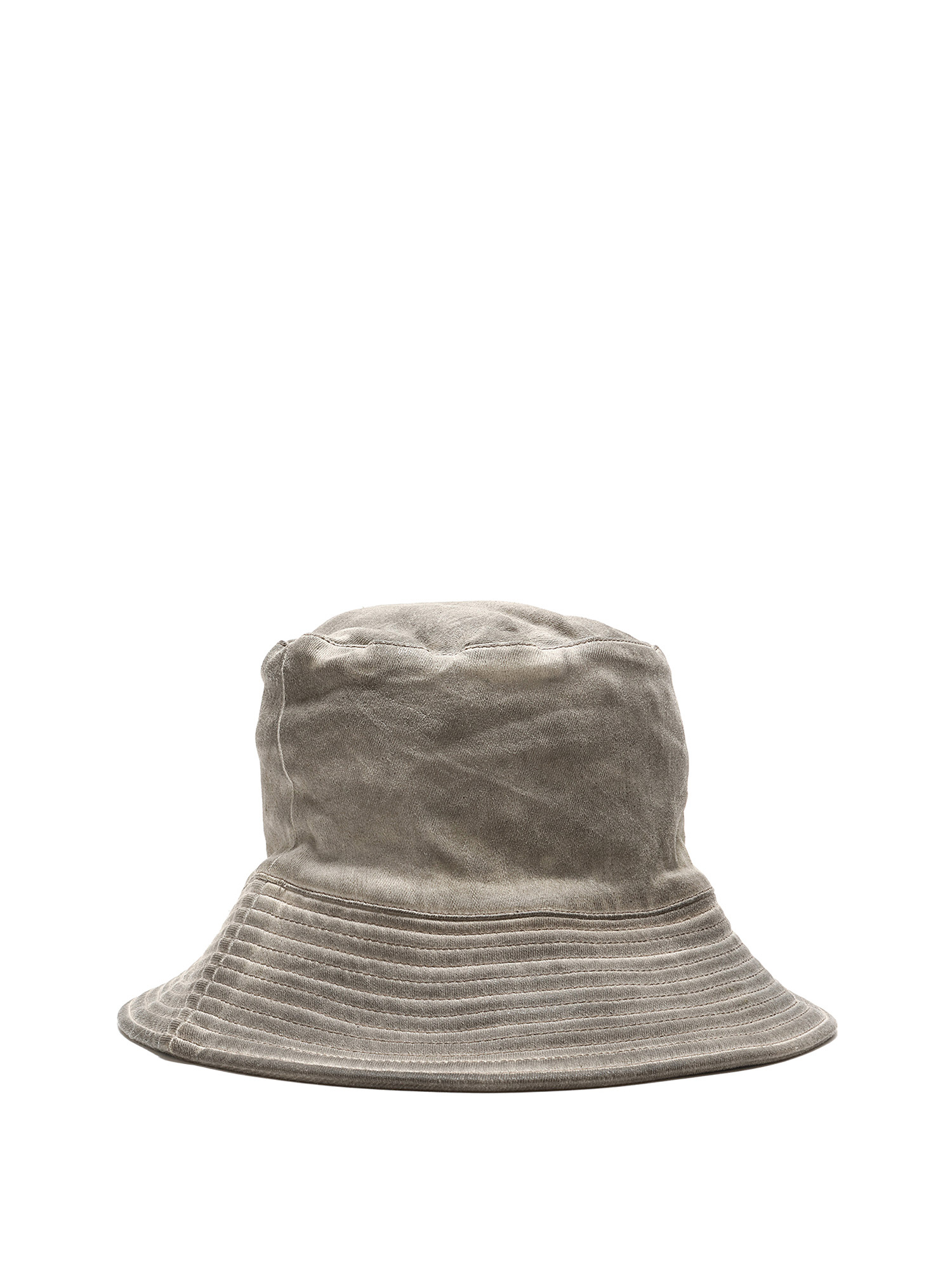 Chapeau bob à finition cirée en gris. Présente un bord structuré et un détail de couture signature.