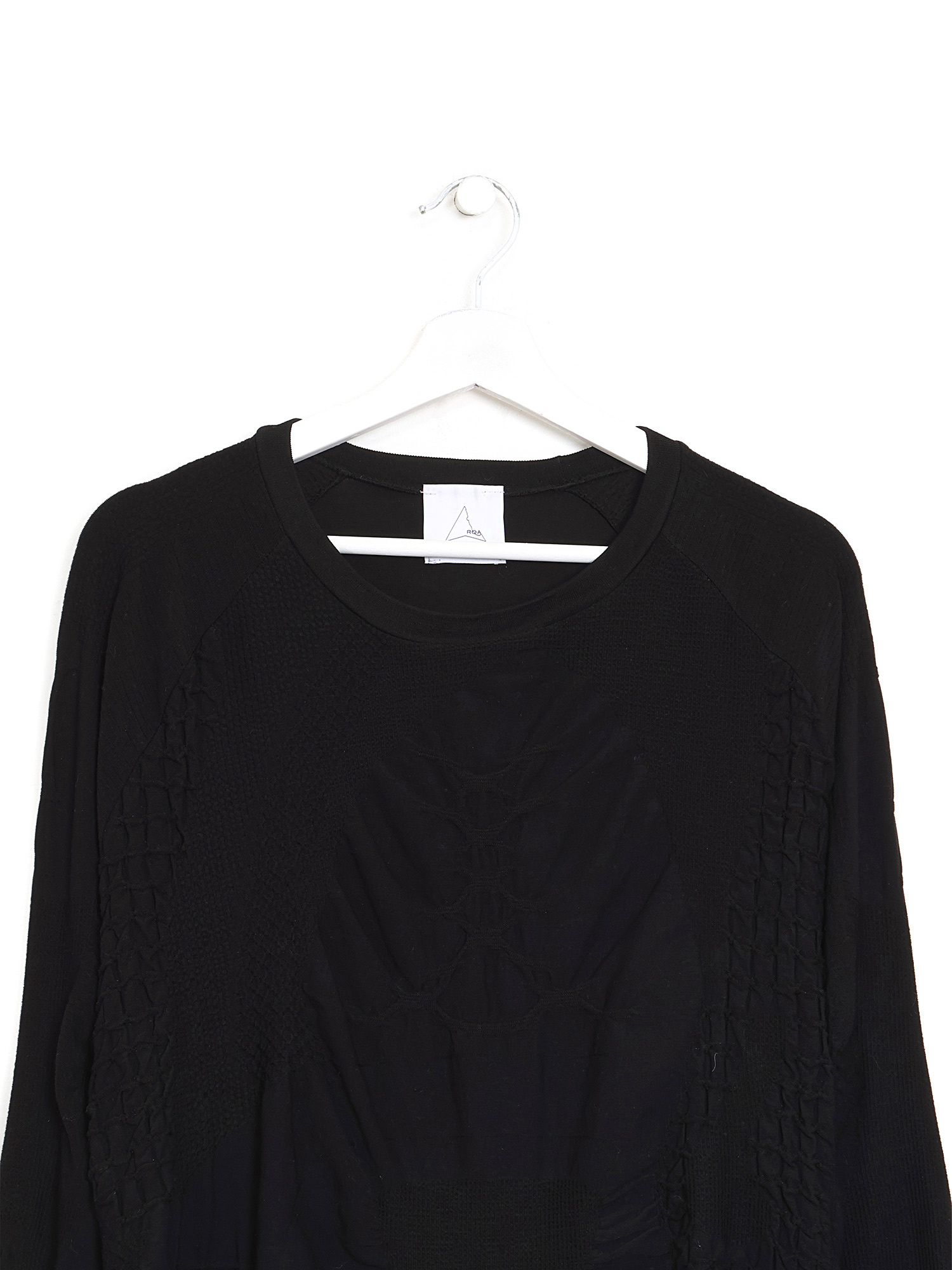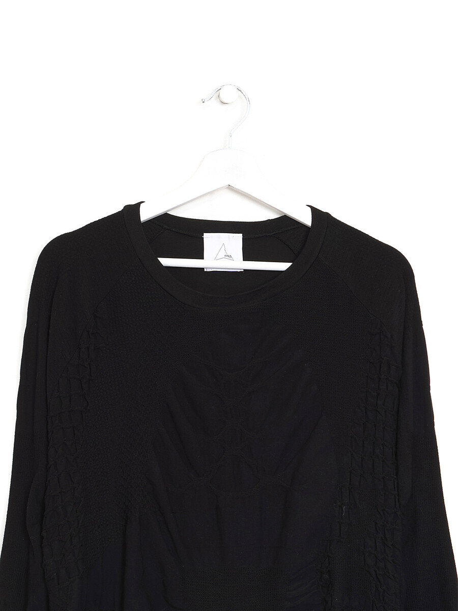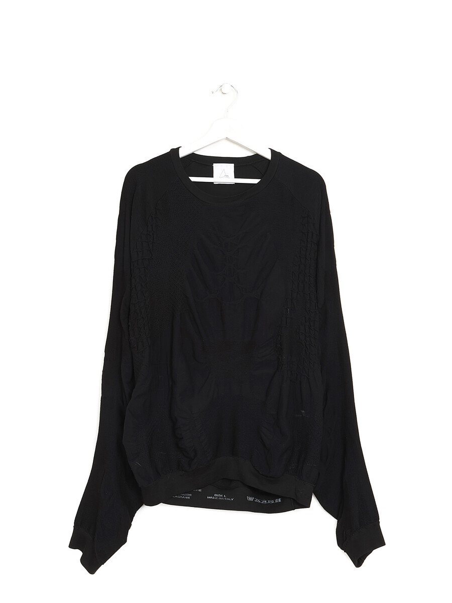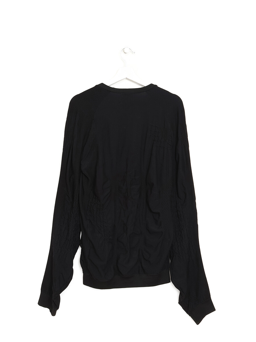 T-shirt de sport noir à manches longues sans couture avec détails froncés. Encolure ronde.