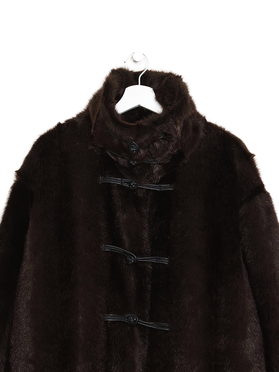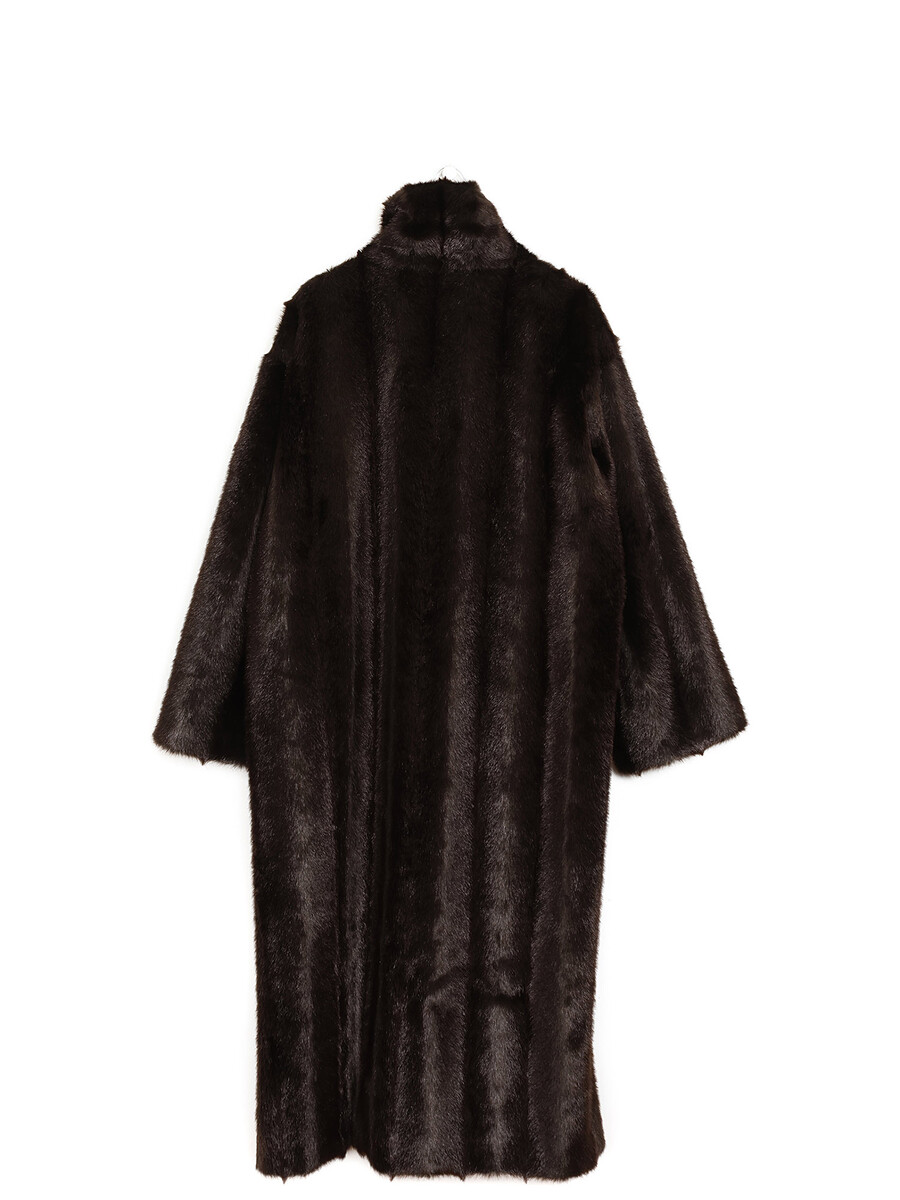 Manteau en fausse fourrure à manches longues avec une texture douce et une fermeture ouverte à l'avant. Conçu pour une coupe décontractée, créant une silhouette luxueuse.