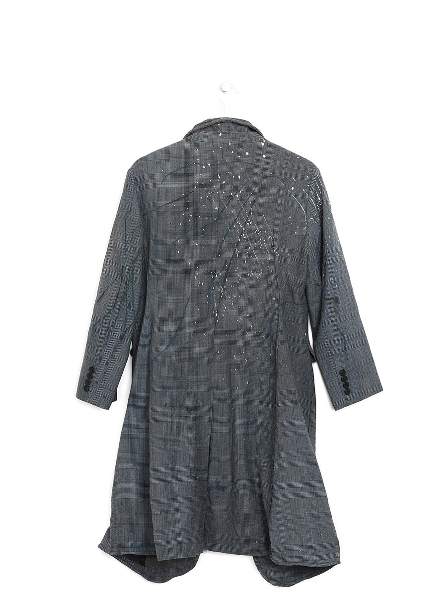 Manteau en laine avec taches de peinture, col chemise. Poches latérales. Confortable et décontracté.