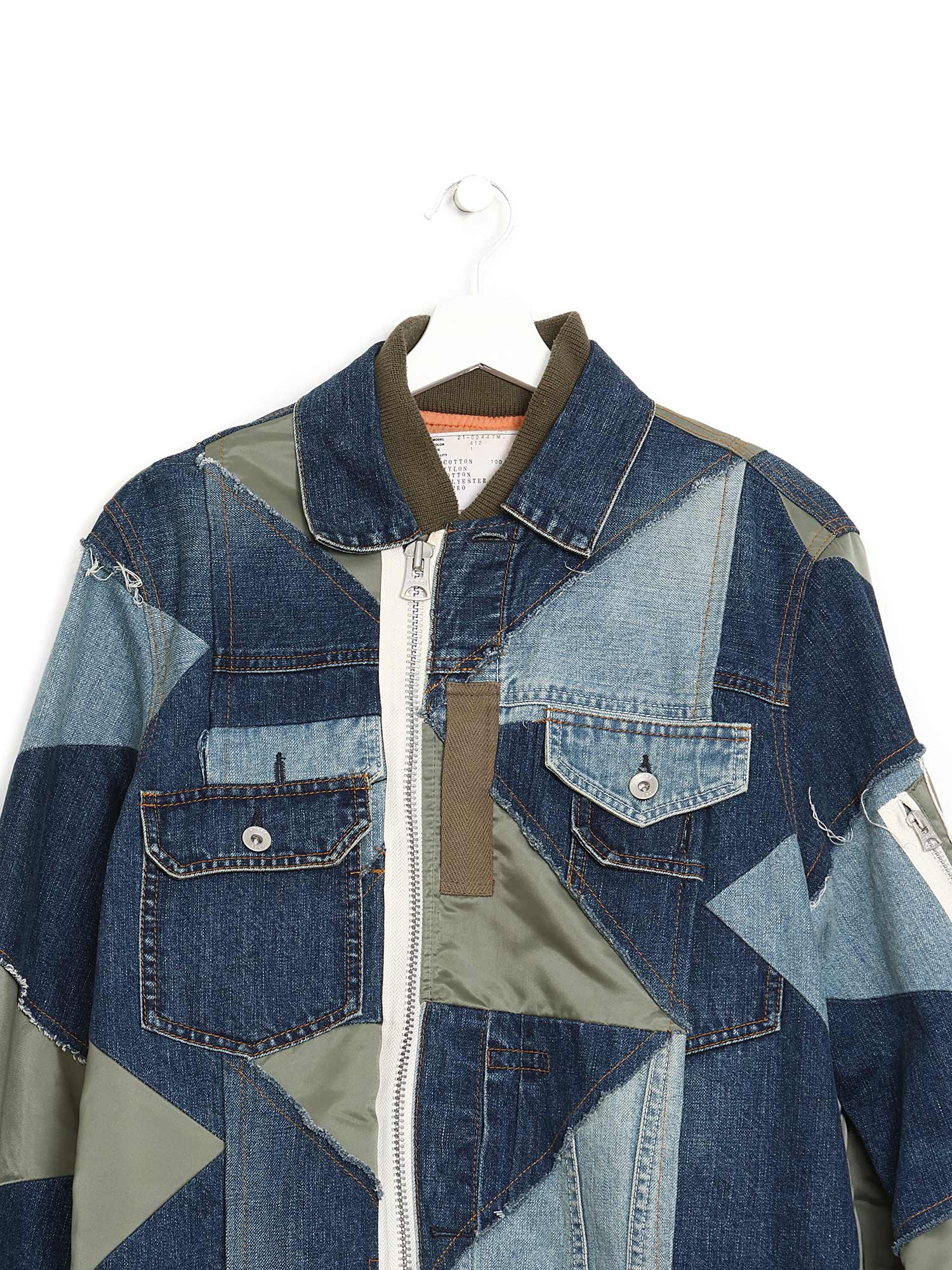 Manteau à manches longues à motif géométrique. Fermeture à glissière sur le devant. Col de chemise. Poches plaquées sur le devant.