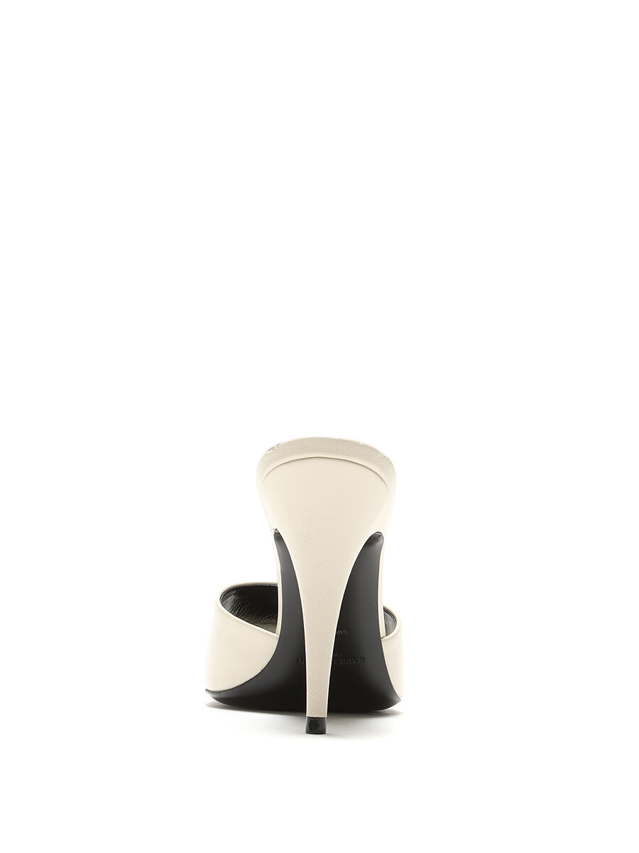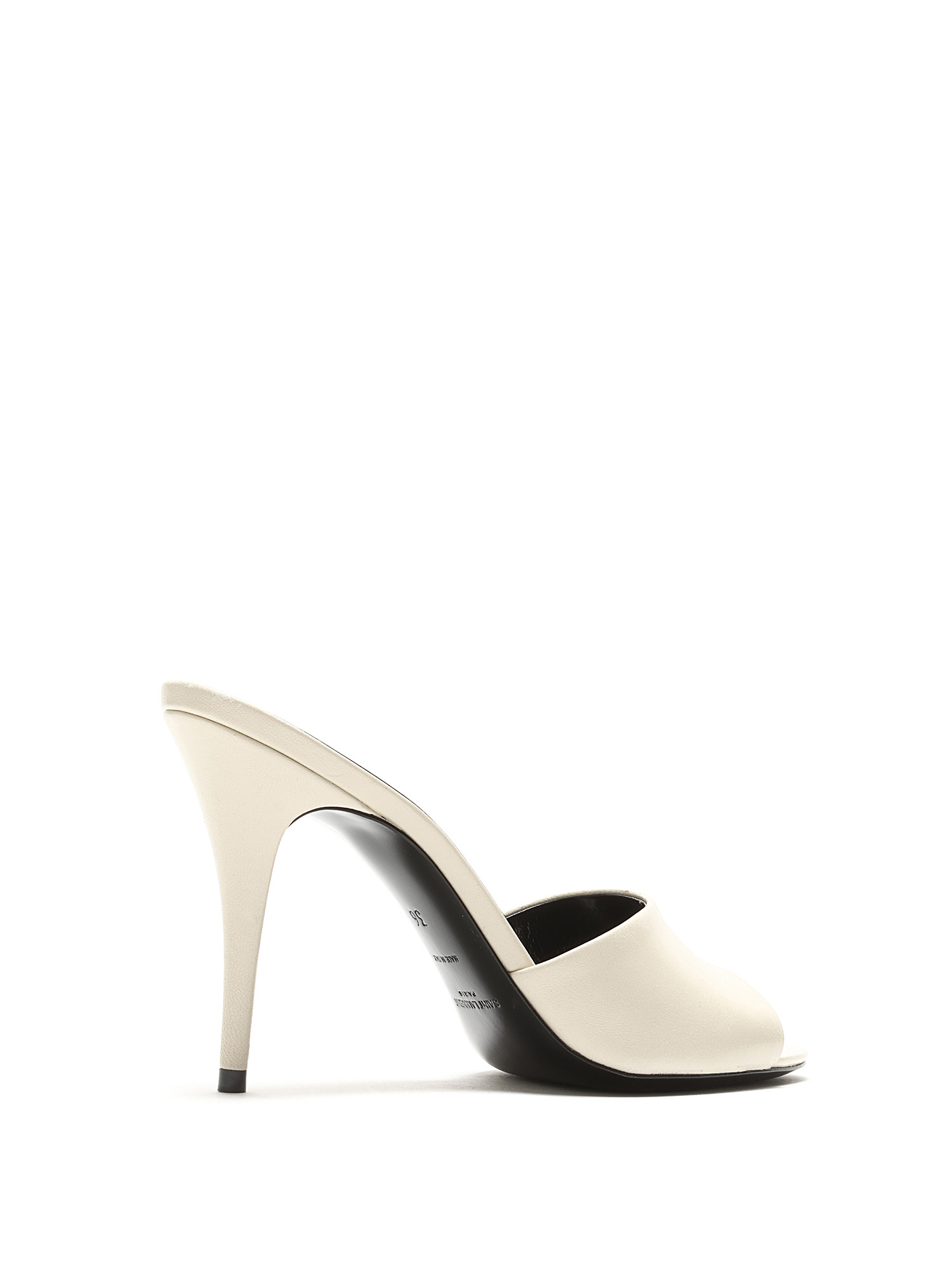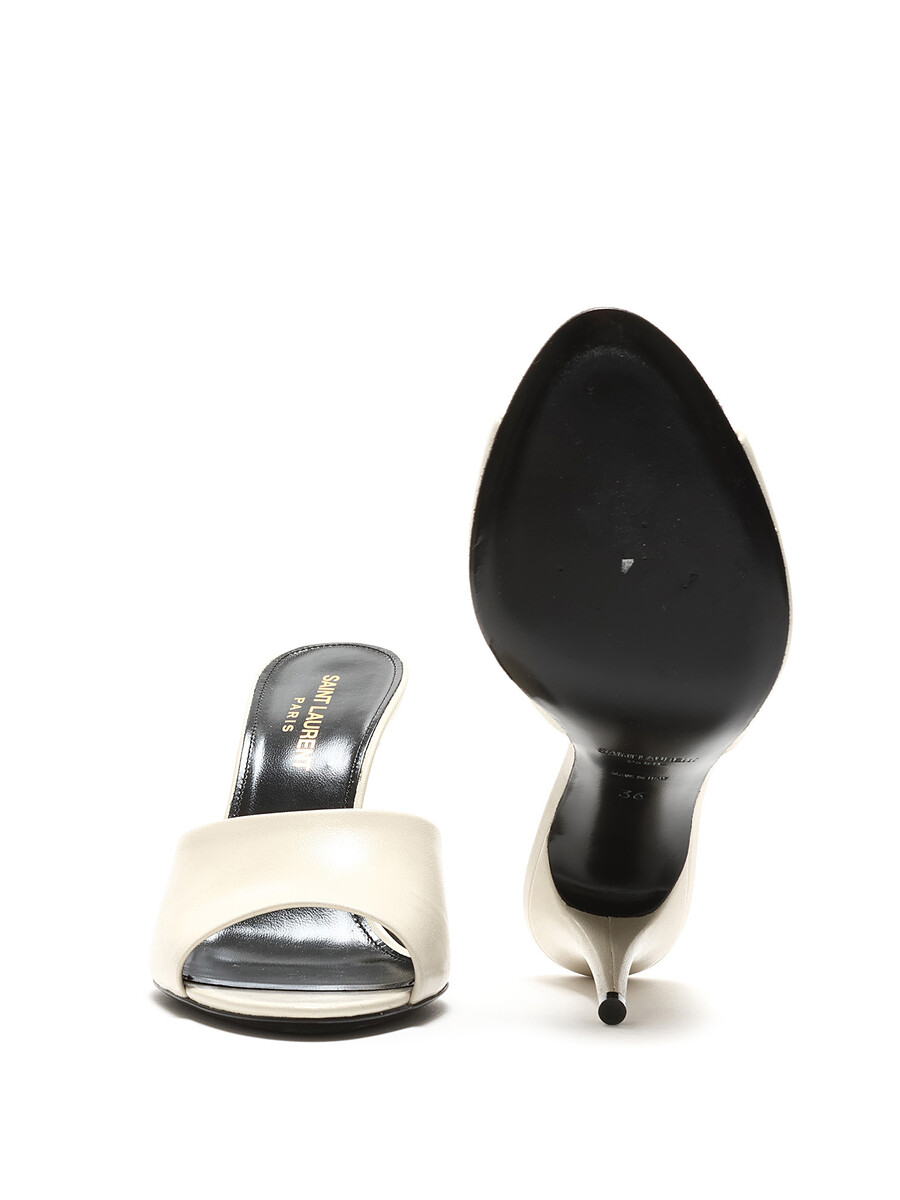 Sandales à talon en cuir blanc crème. Style à enfiler avec talon stiletto. Bout ouvert. Silhouette épurée. Livrées avec dust bag.
