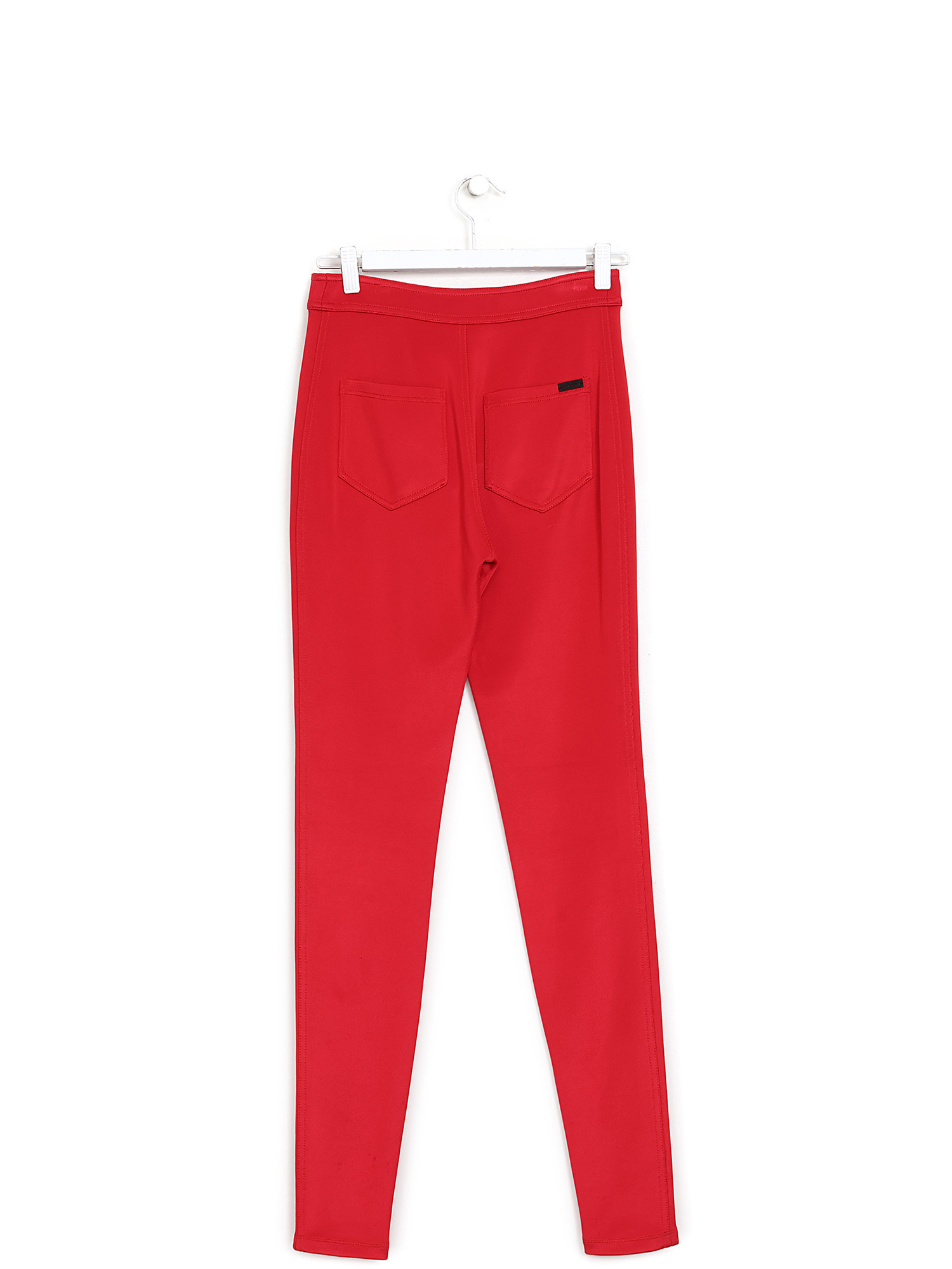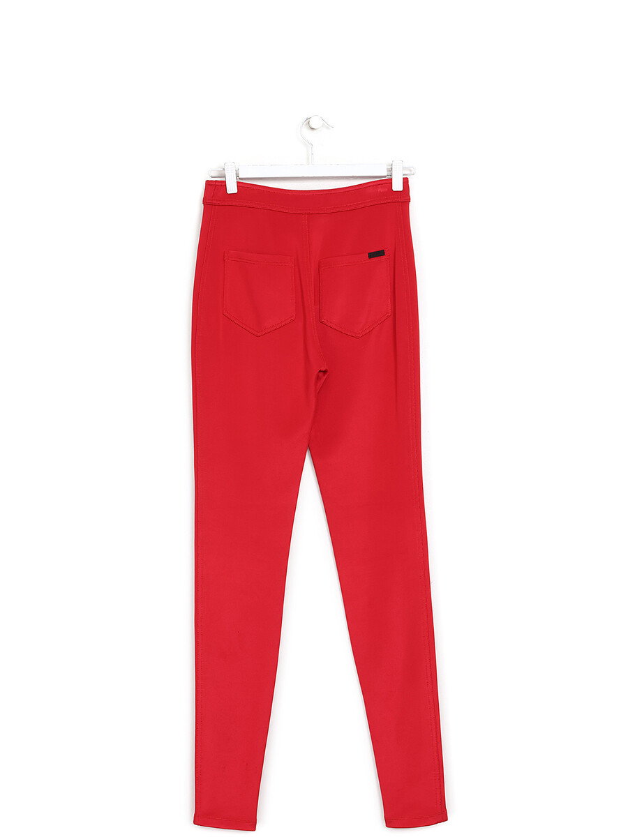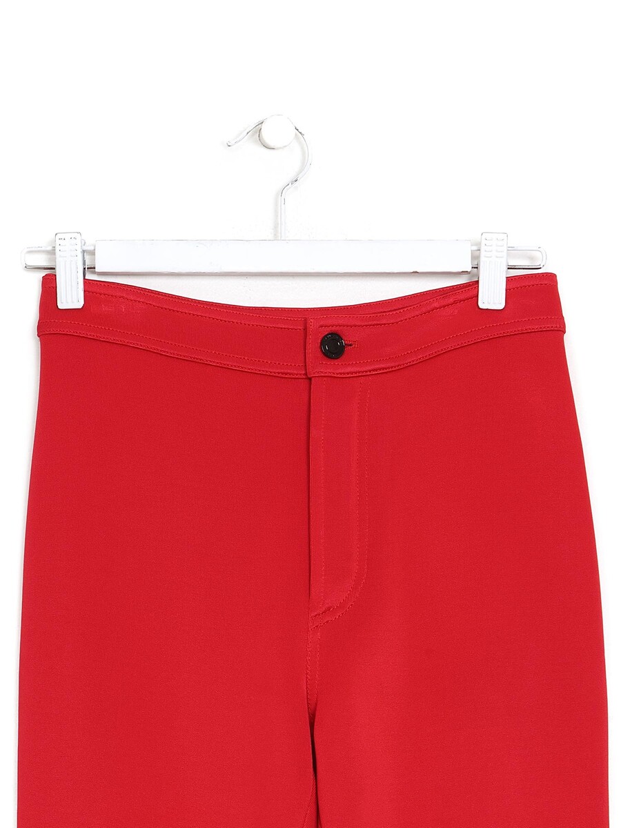 Pantalon slim fit extensible en rouge éclatant. Fermeture à bouton. Silhouette élégante et ajustée.