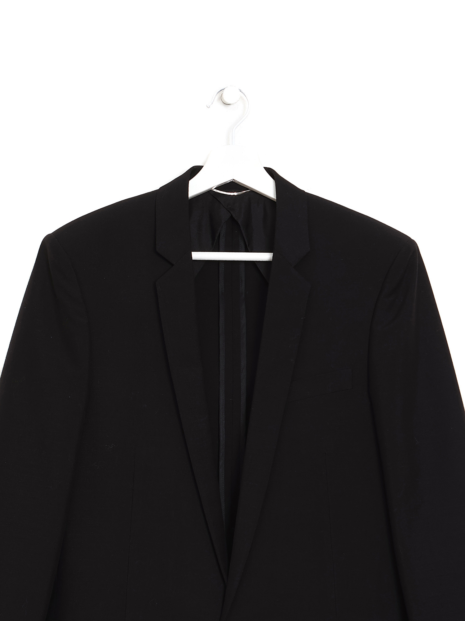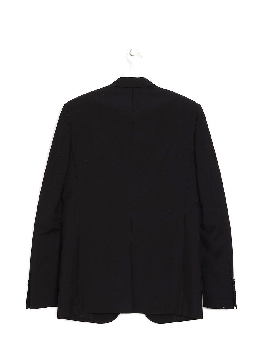 Blazer en laine noir avec fermeture à boutons noirs. Col à revers cranté. Trois poches.